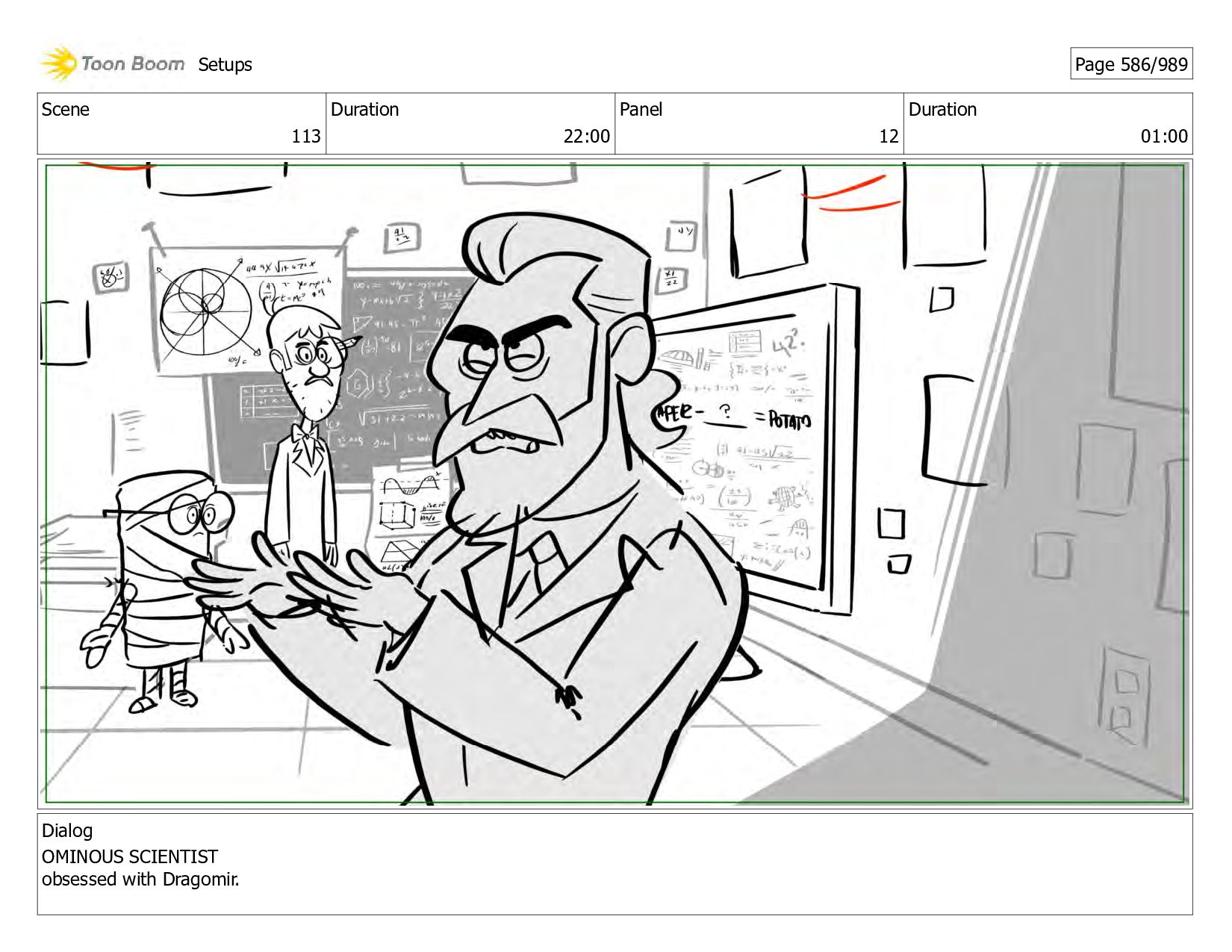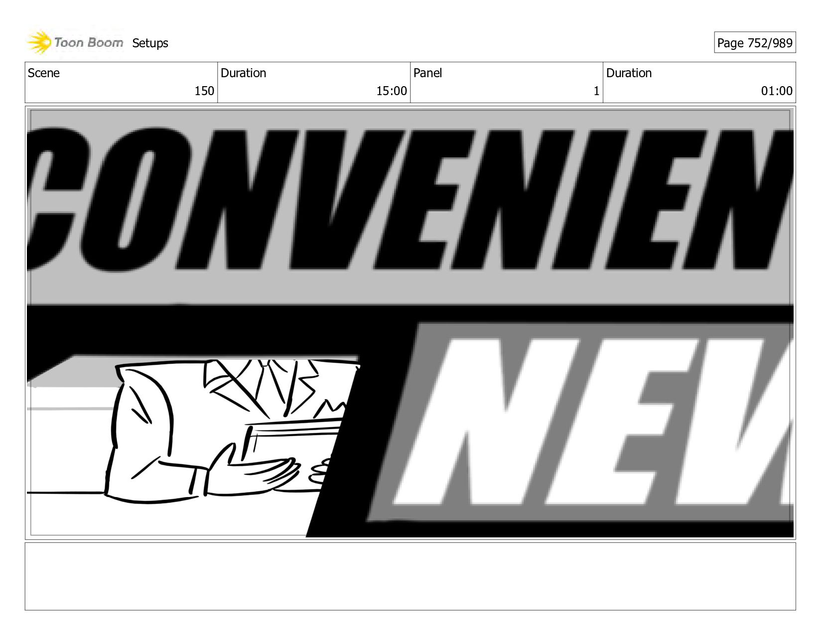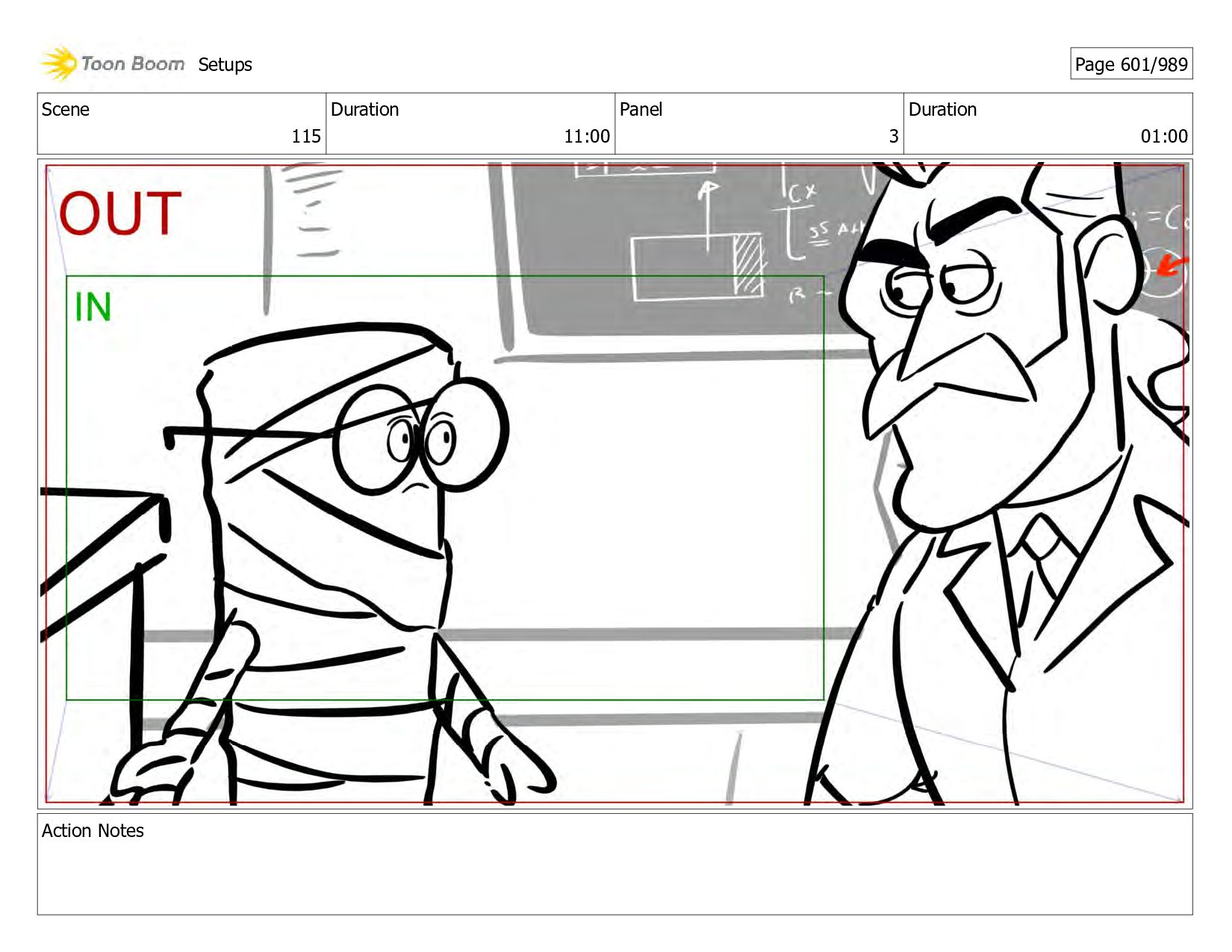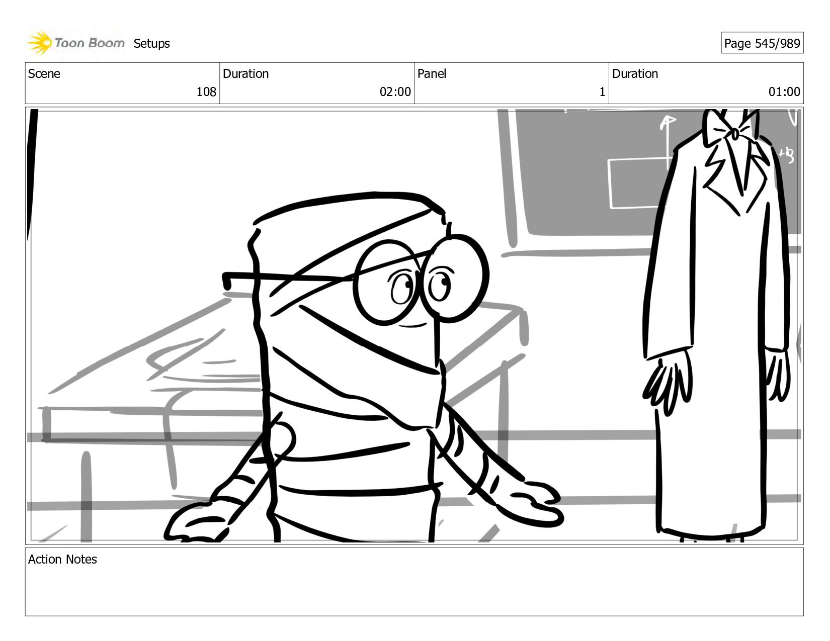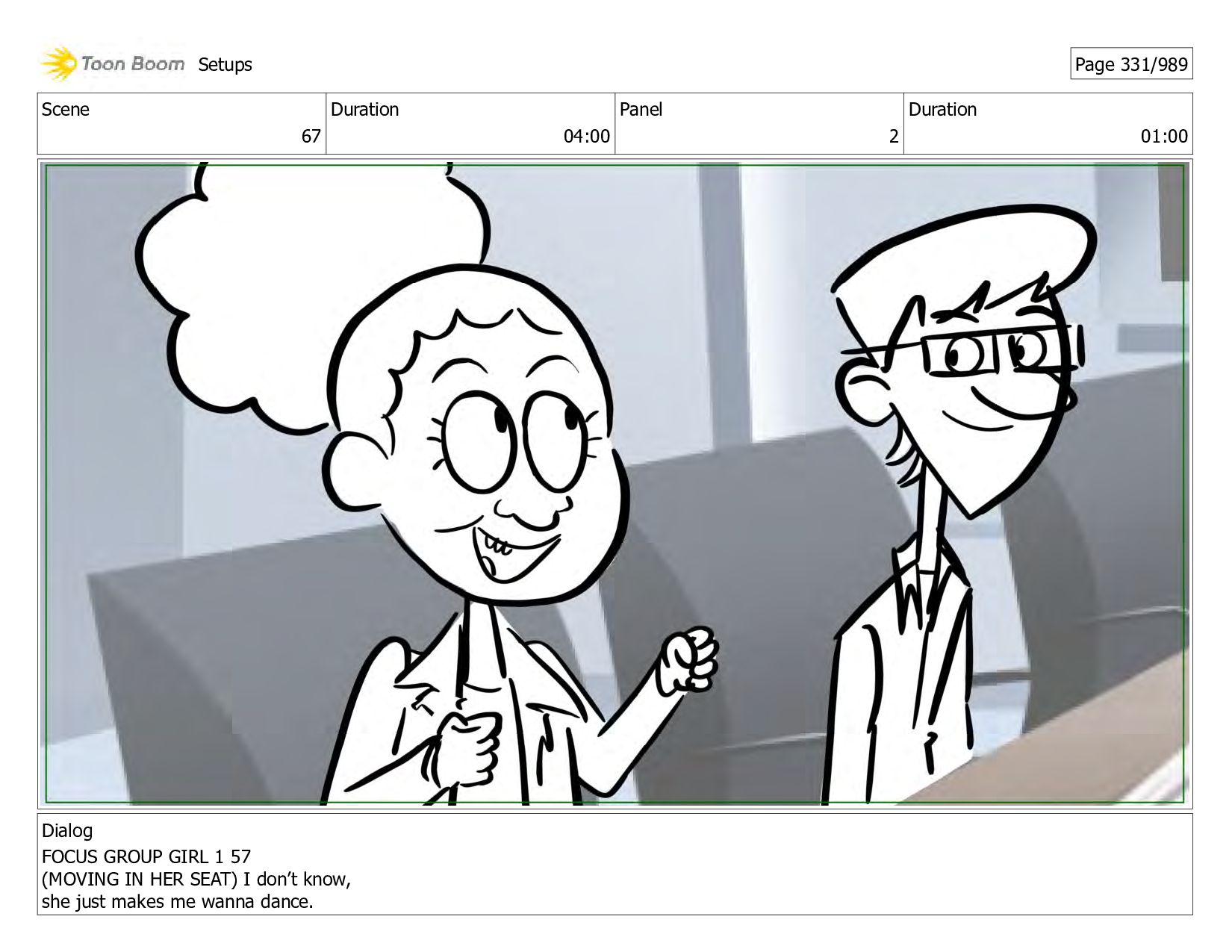 Scene 189 Duration 03:00 Panel 1 Duration 01:00 Setups Page