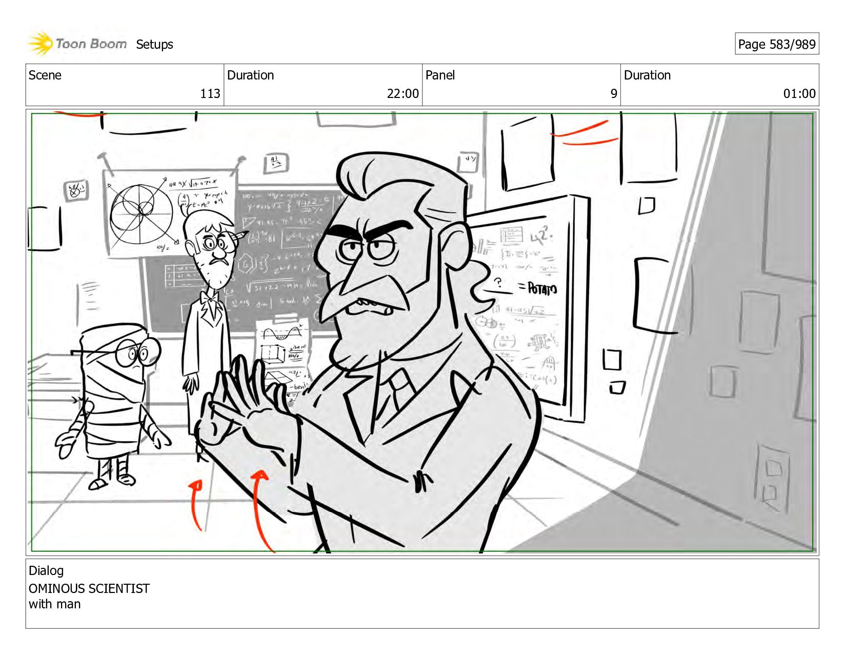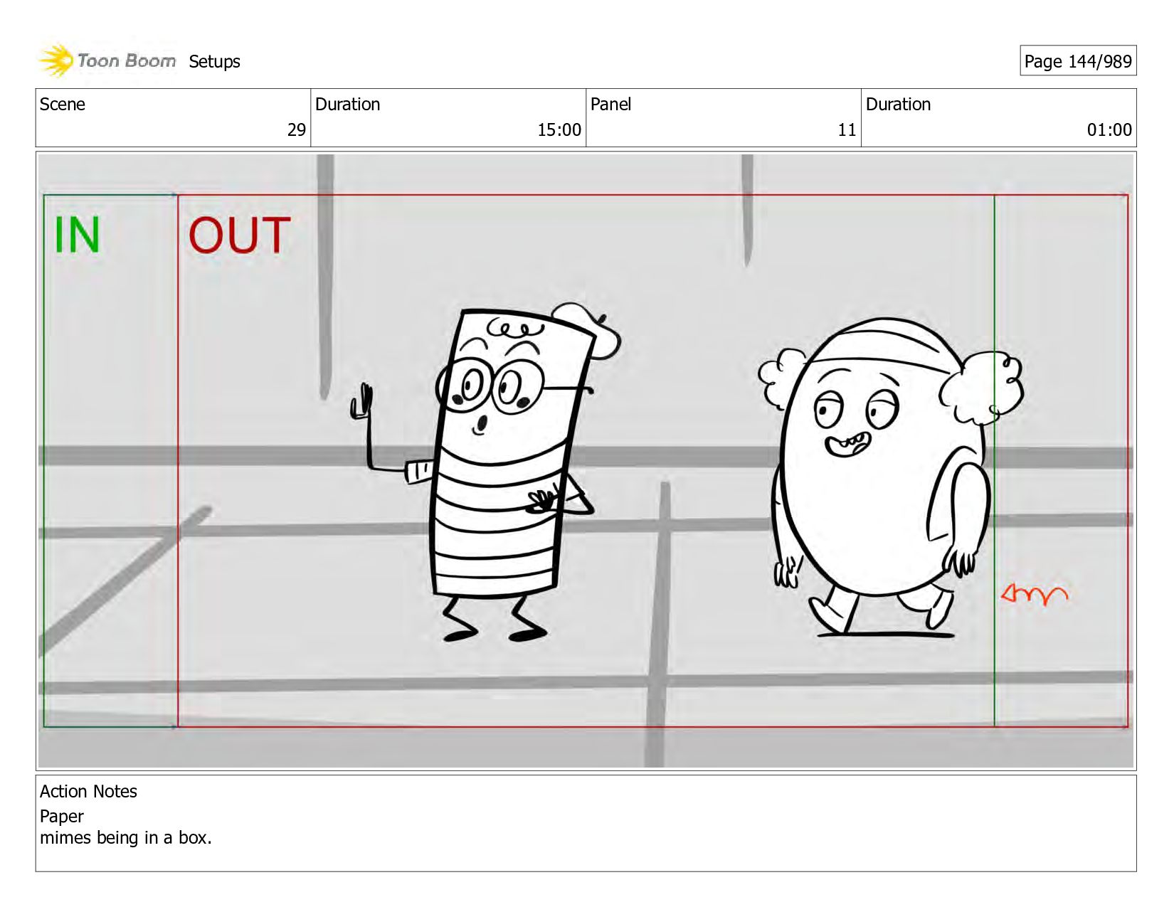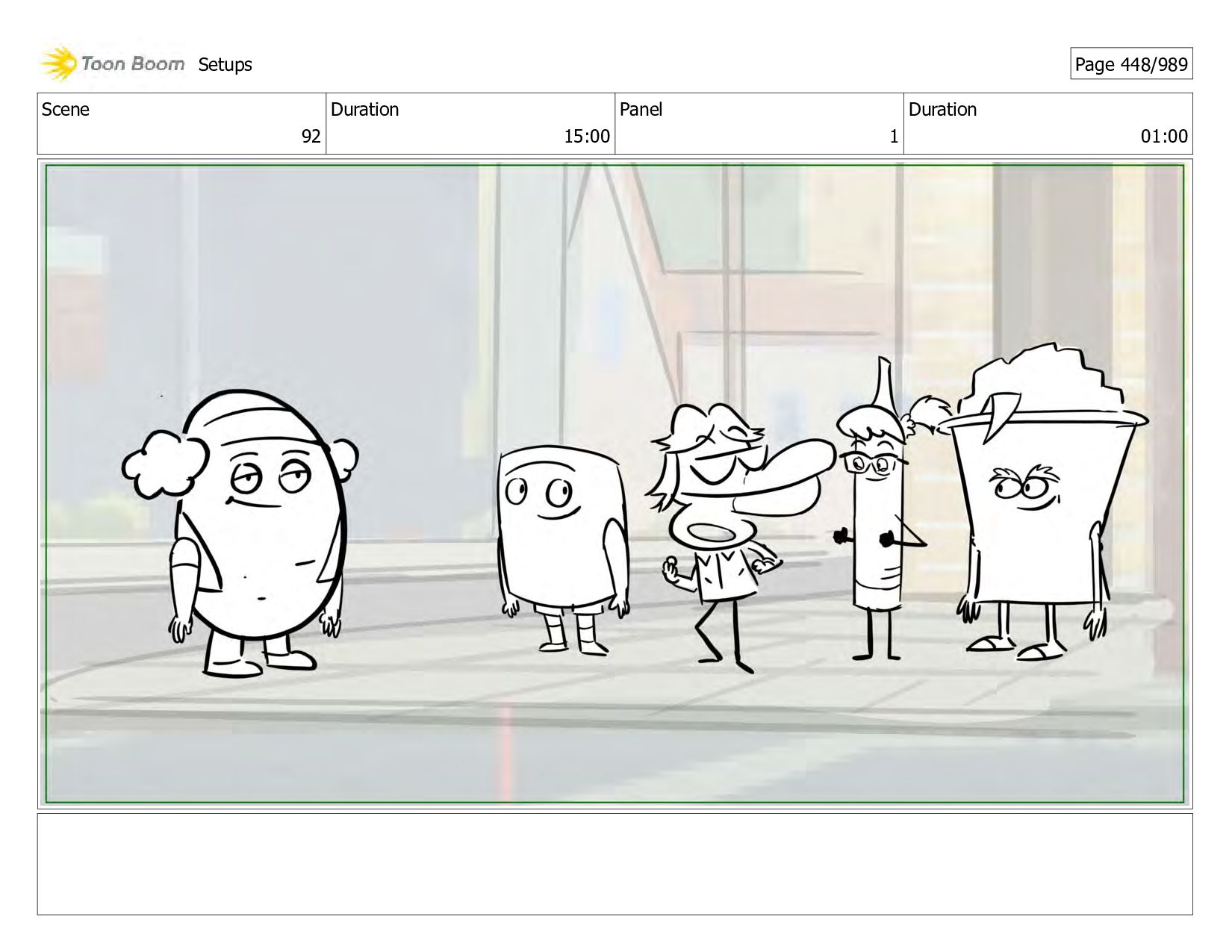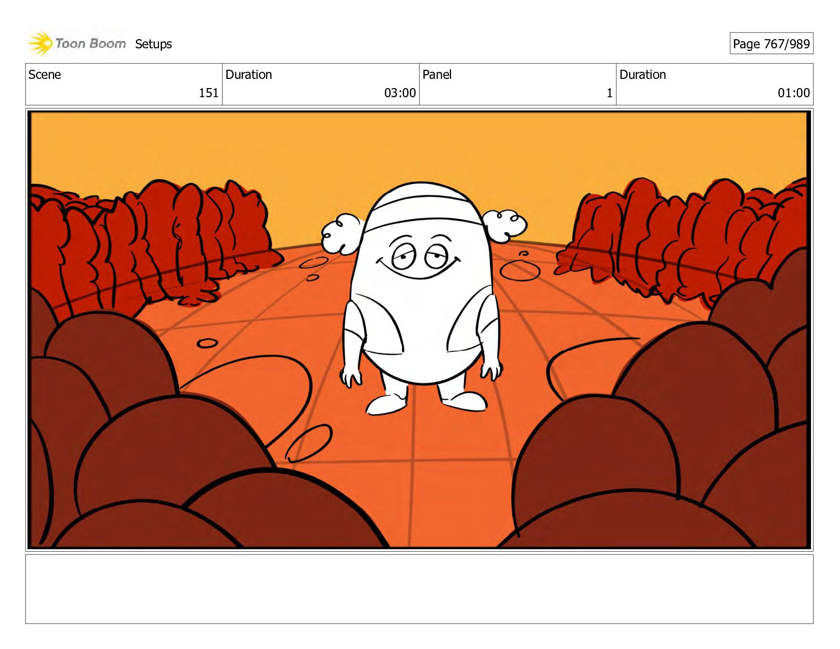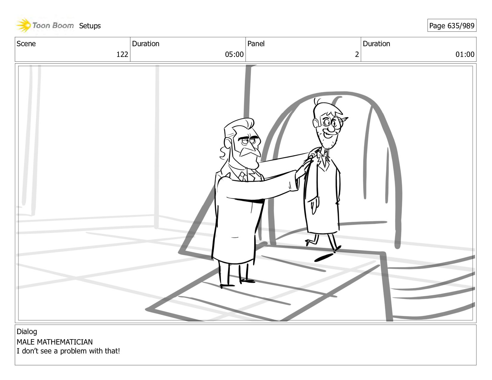 Scene 189 Duration 03:00 Panel 1 Duration 01:00 Setups Page