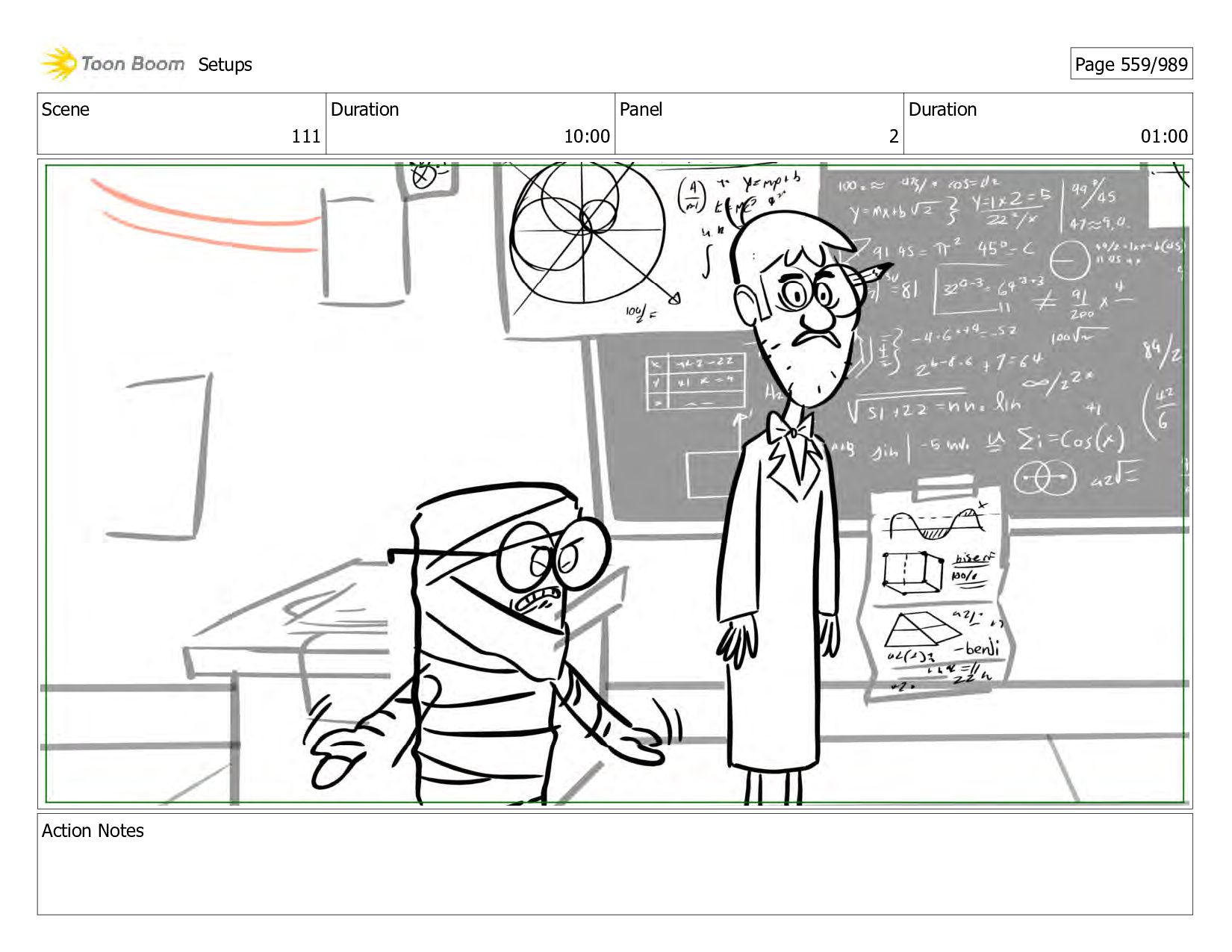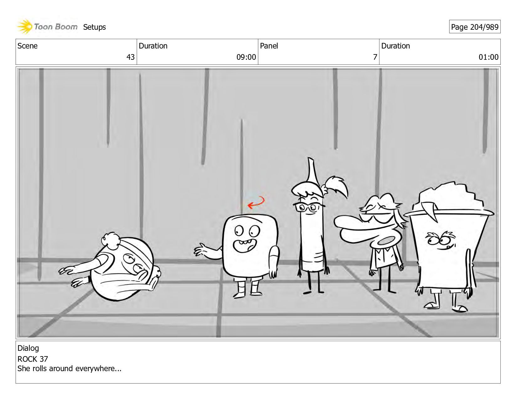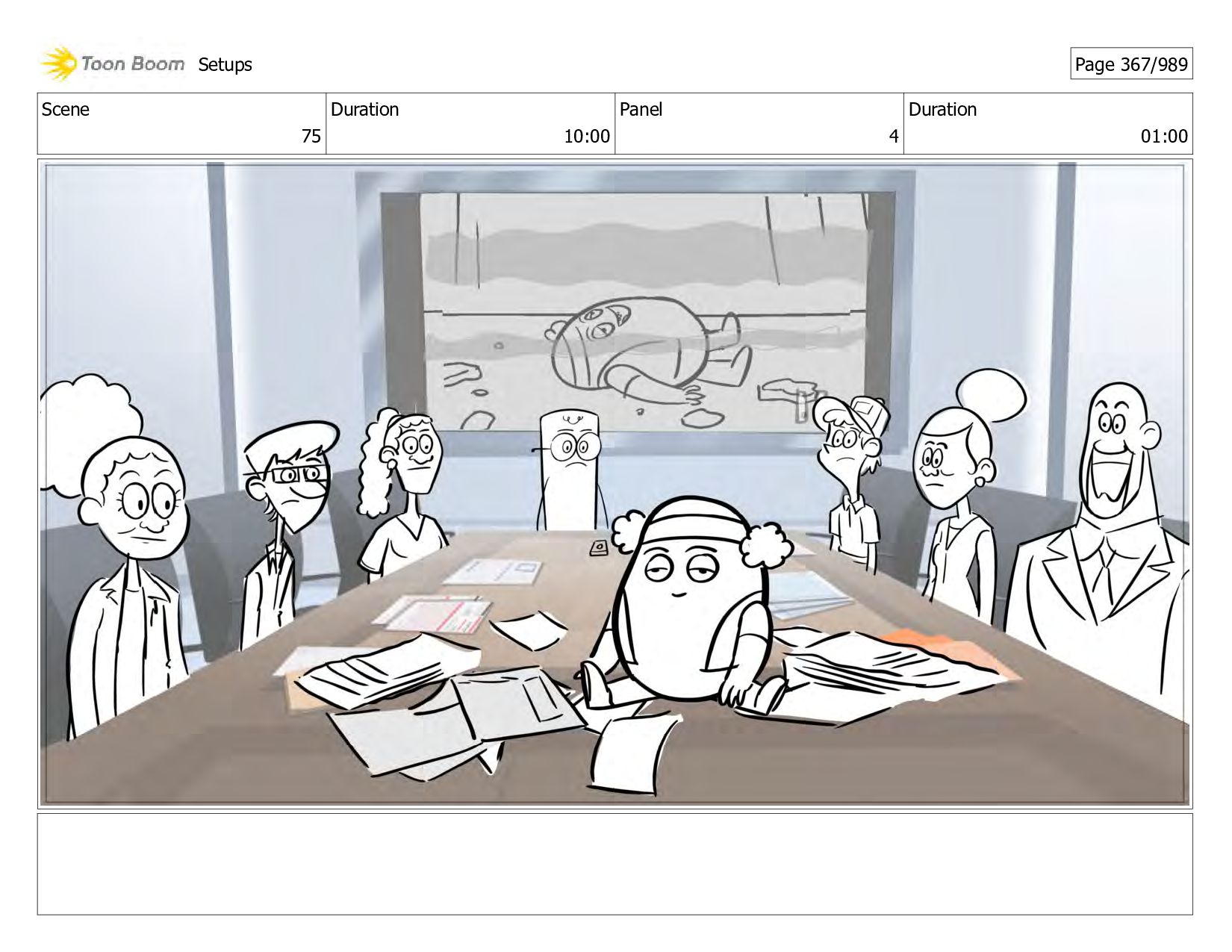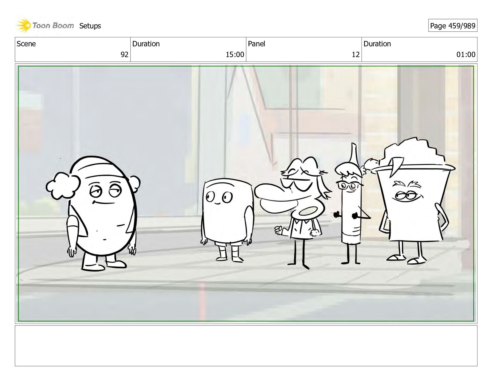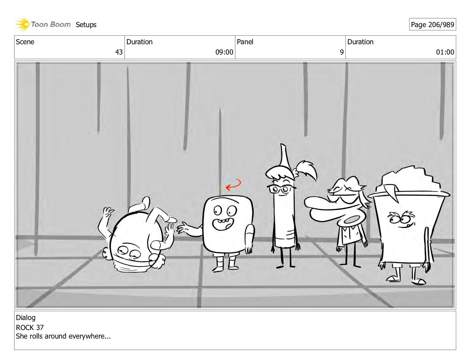 Scene 189 Duration 03:00 Panel 1 Duration 01:00 Setups Page