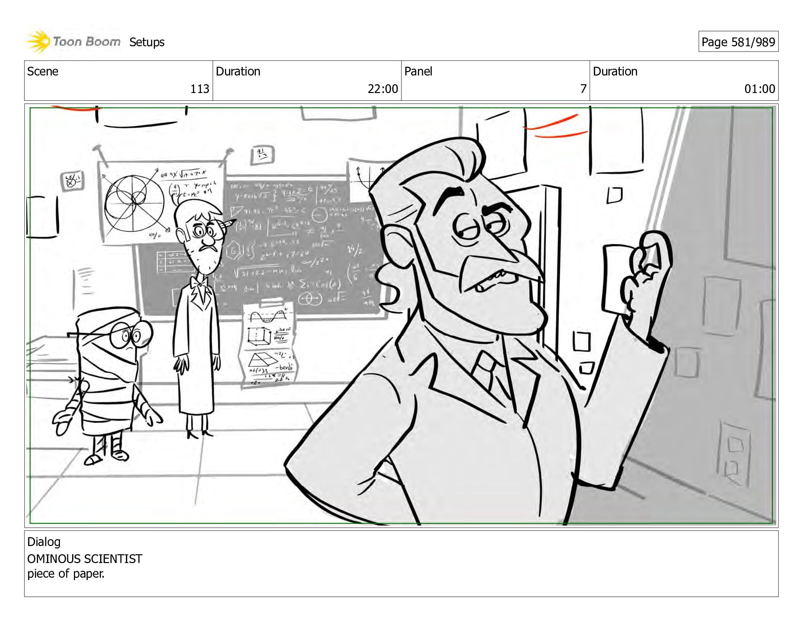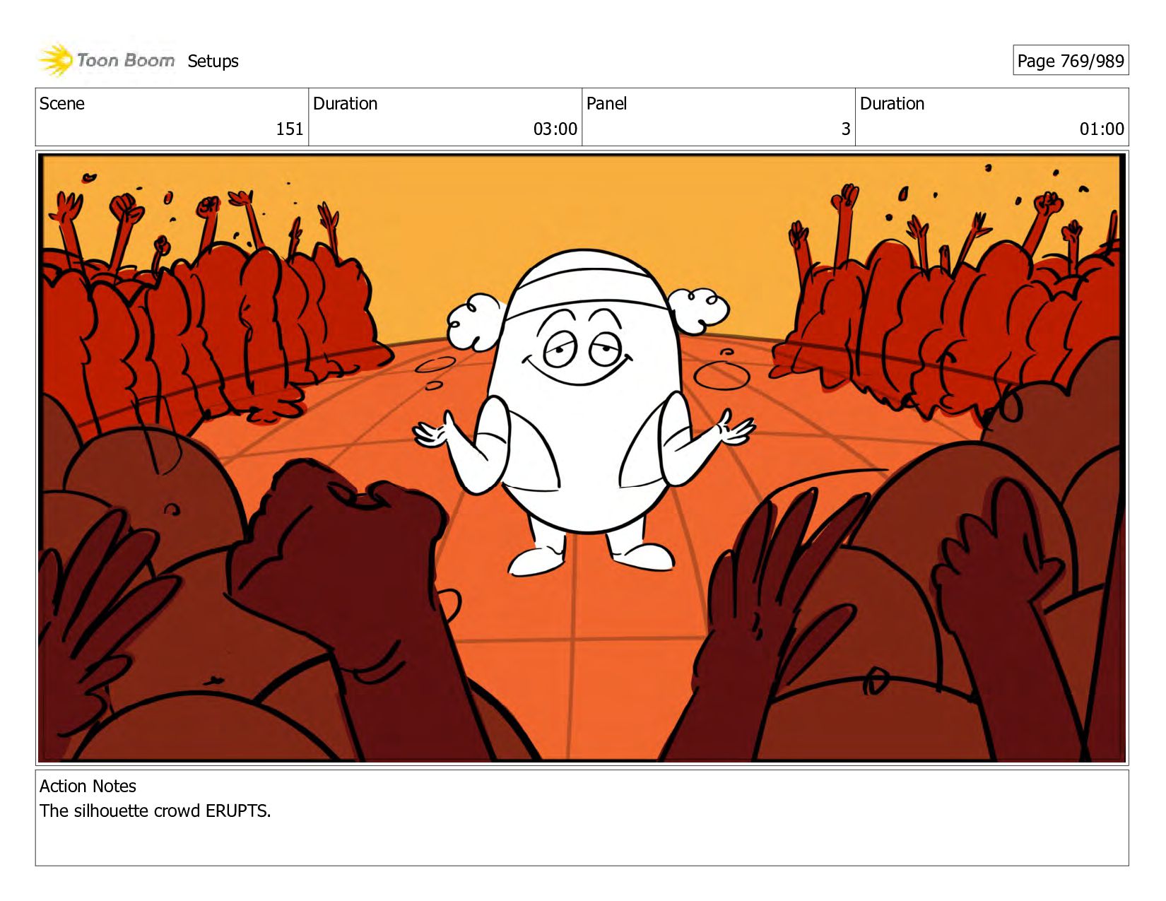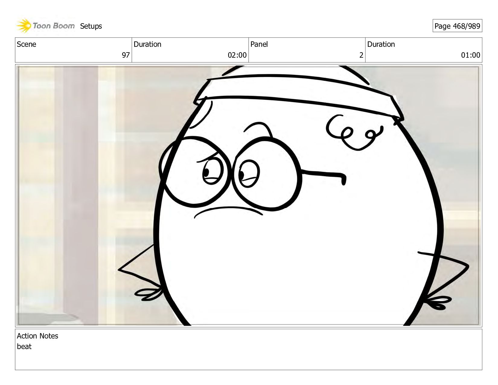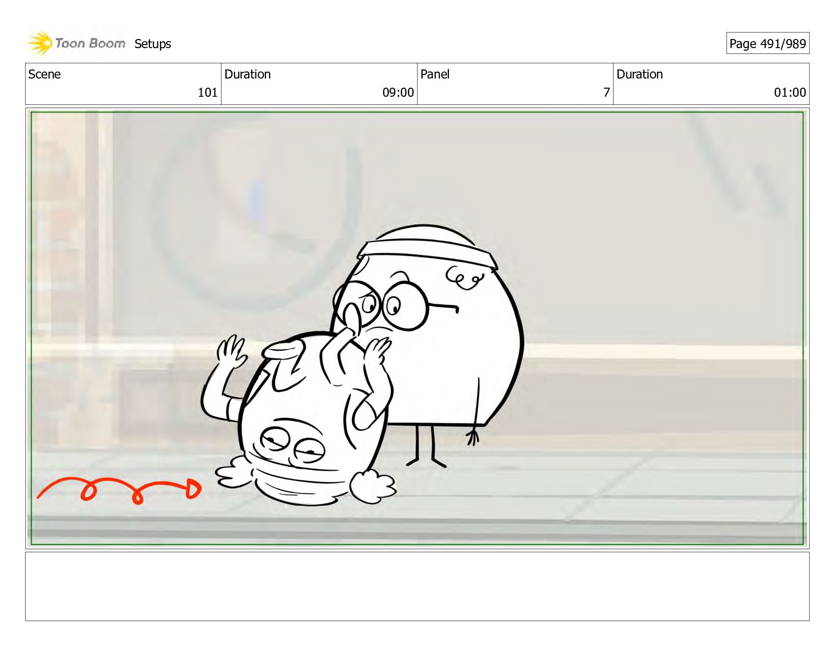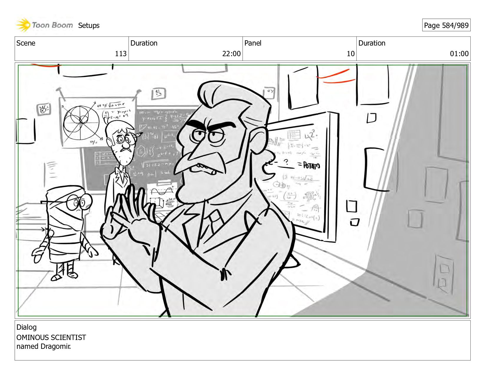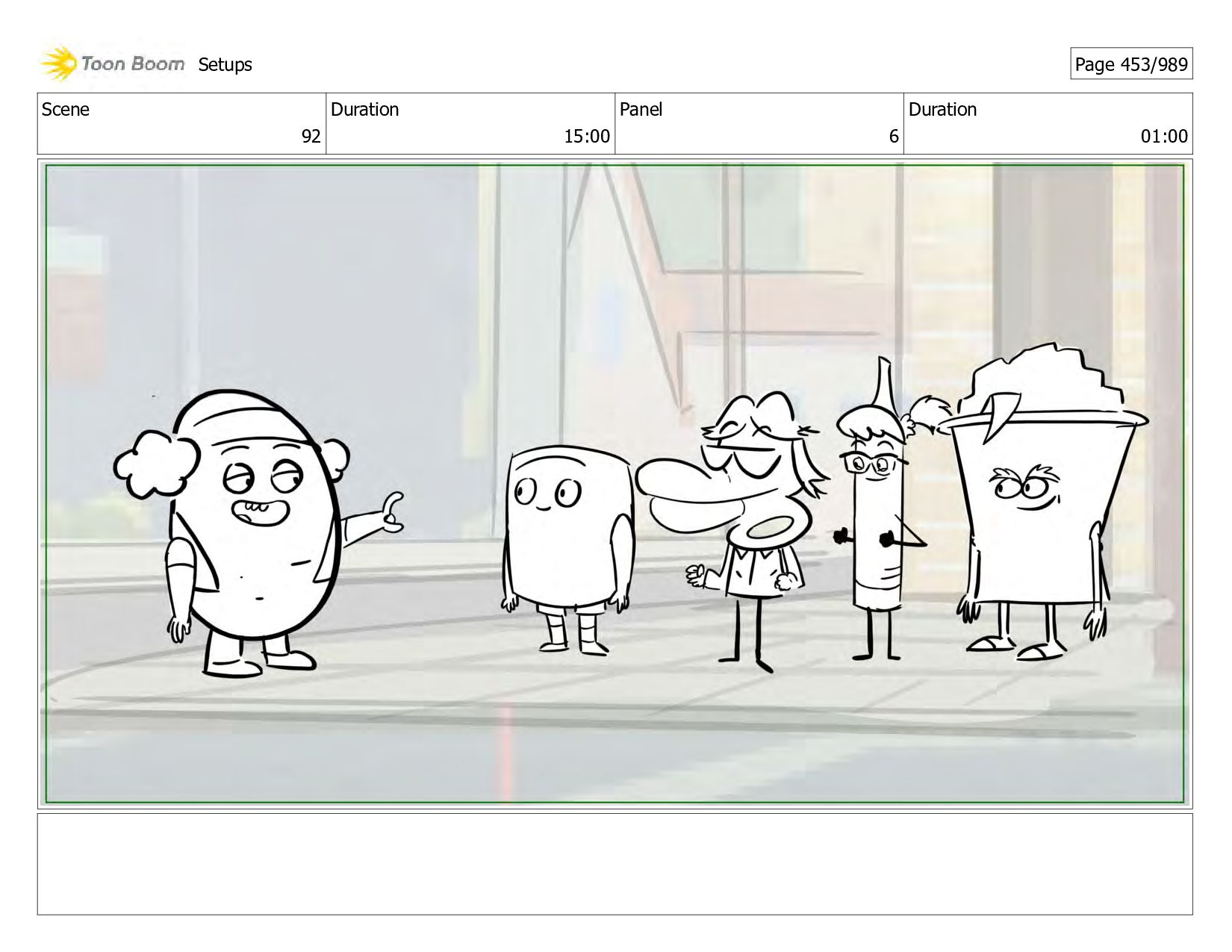 Scene 189 Duration 03:00 Panel 1 Duration 01:00 Setups Page