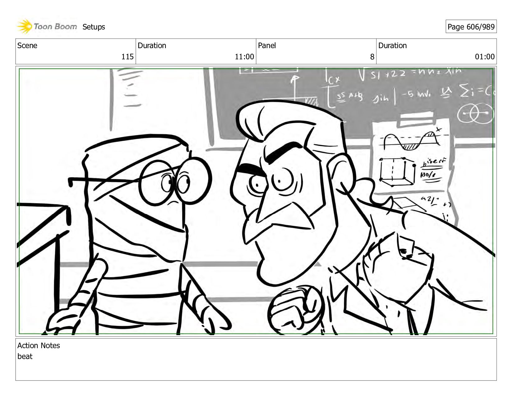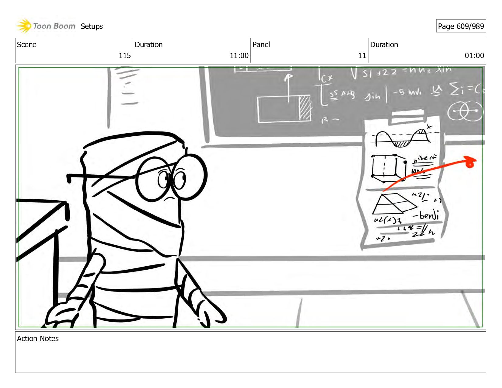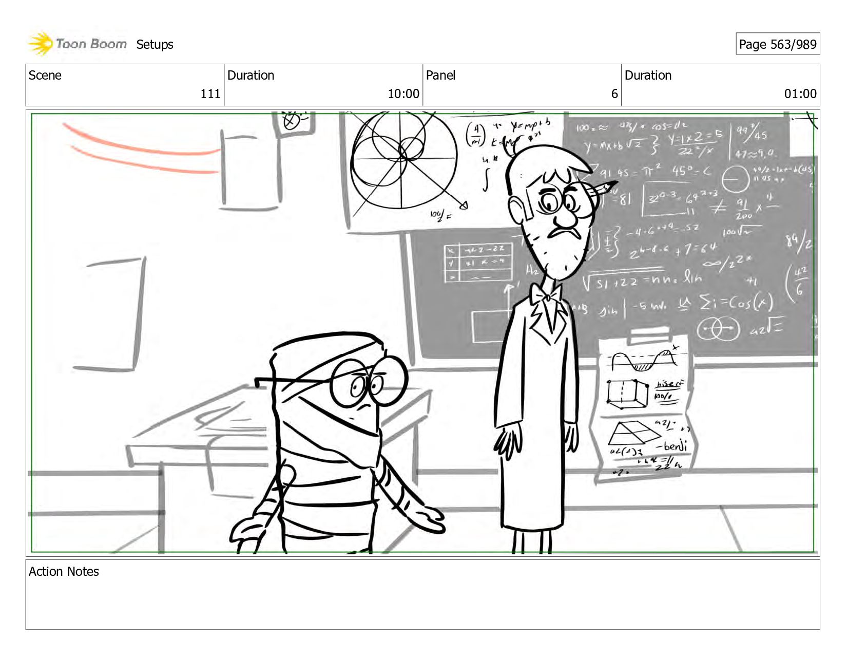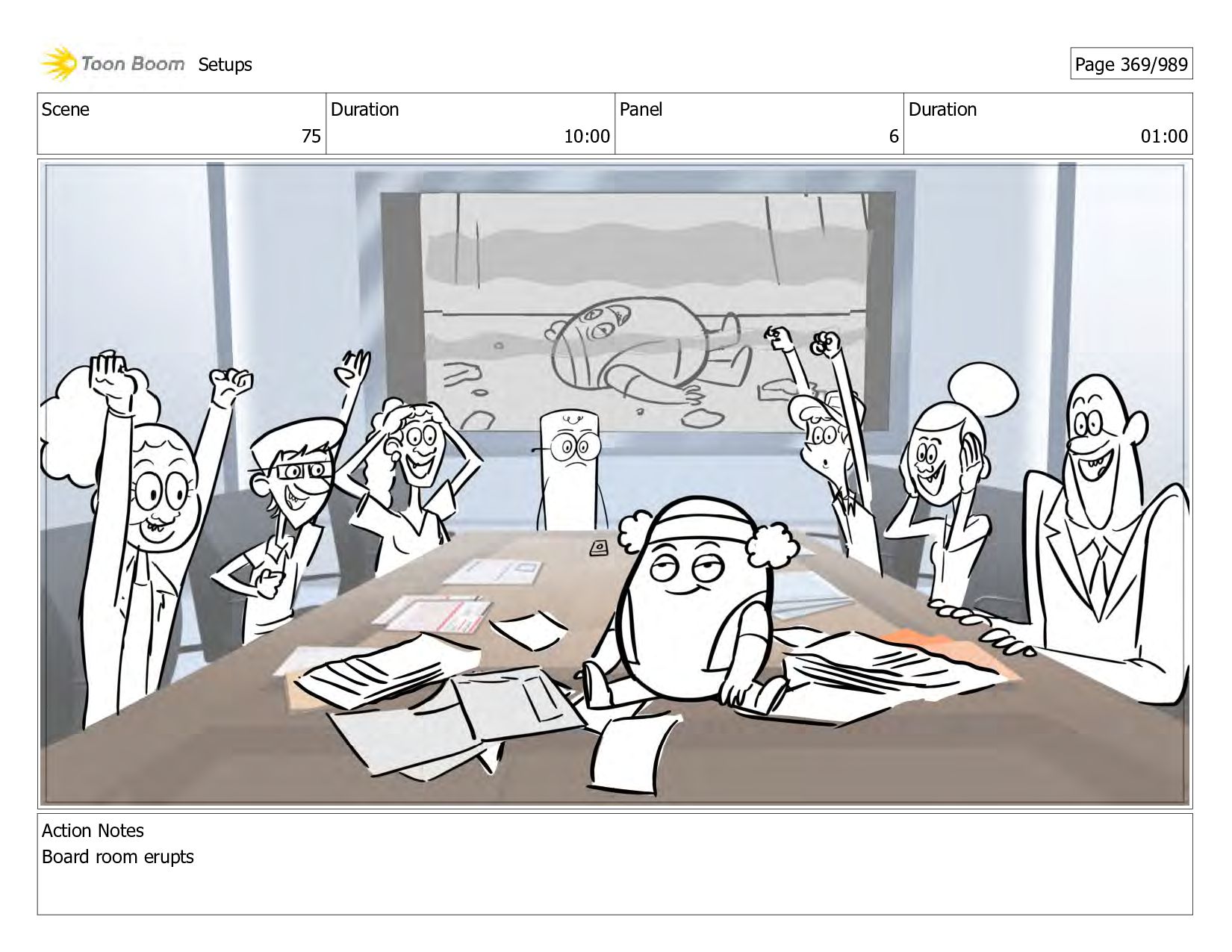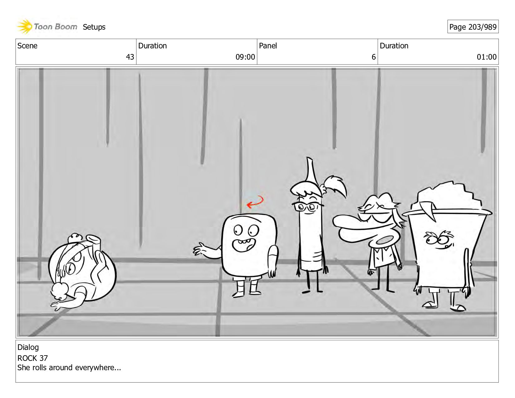 Scene 189 Duration 03:00 Panel 1 Duration 01:00 Setups Page