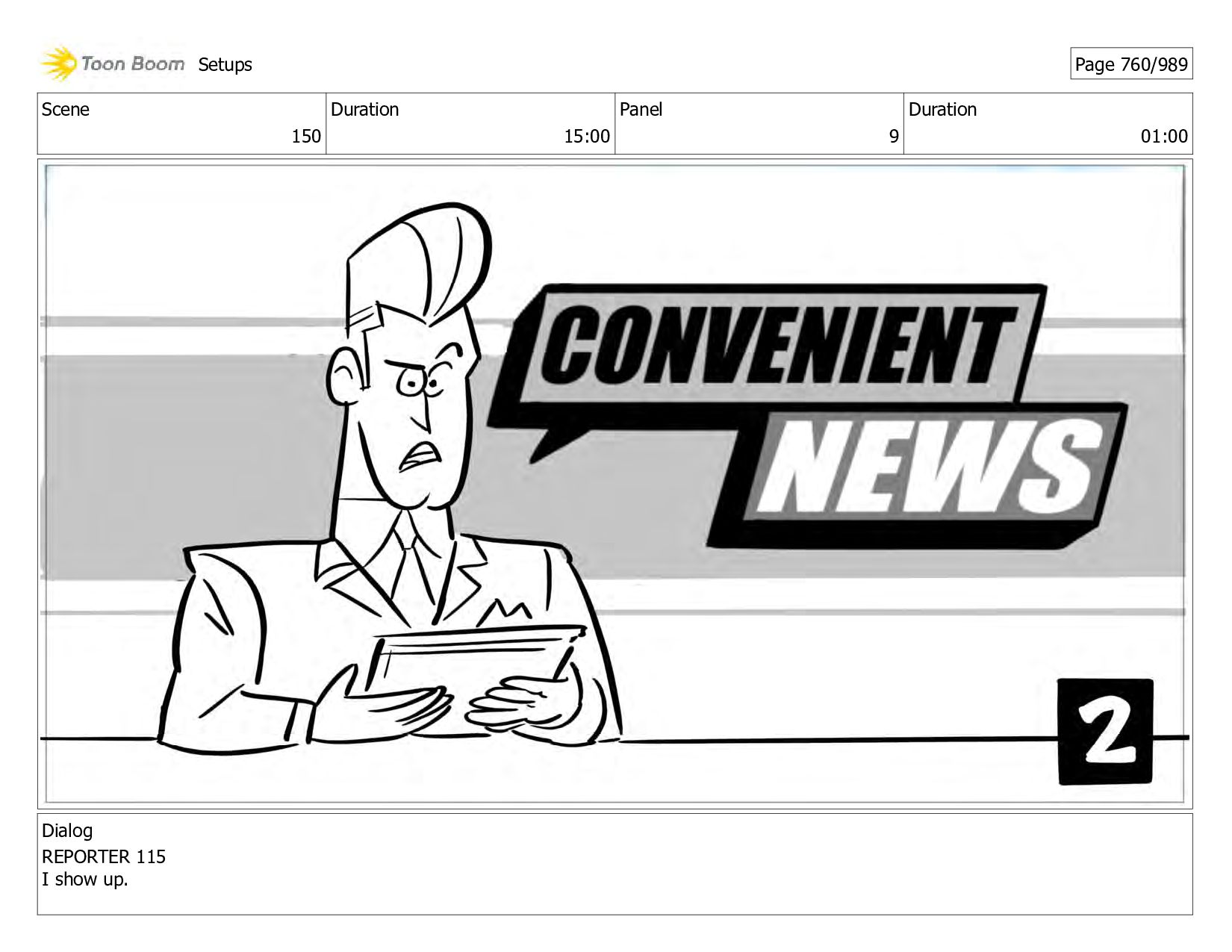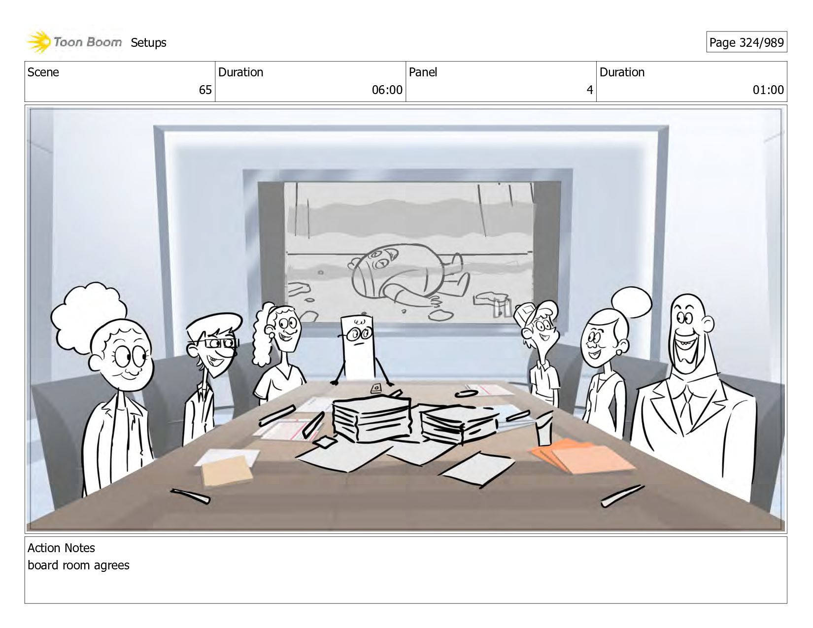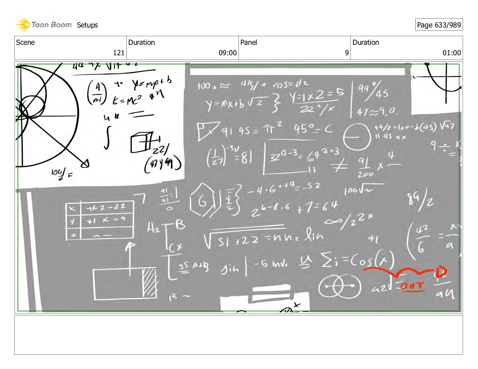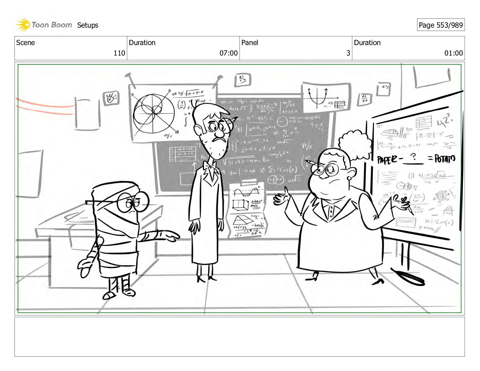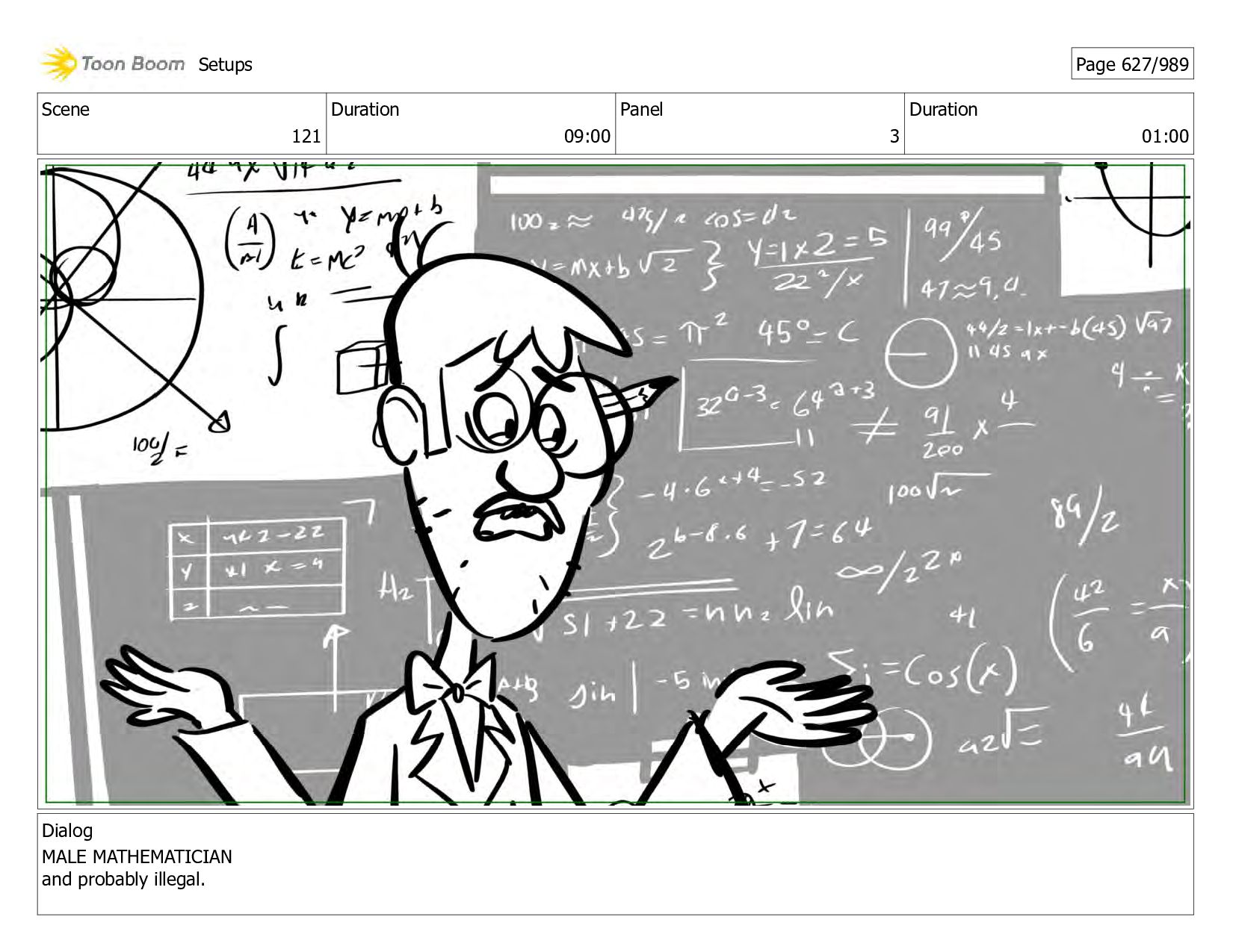 Scene 189 Duration 03:00 Panel 1 Duration 01:00 Setups Page