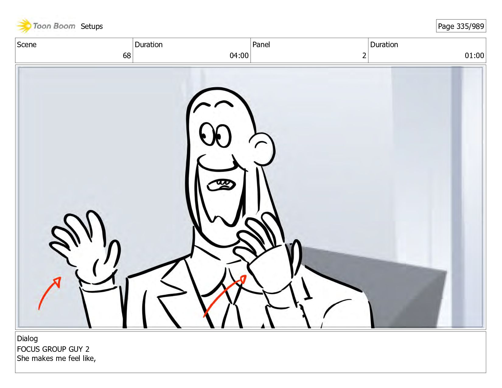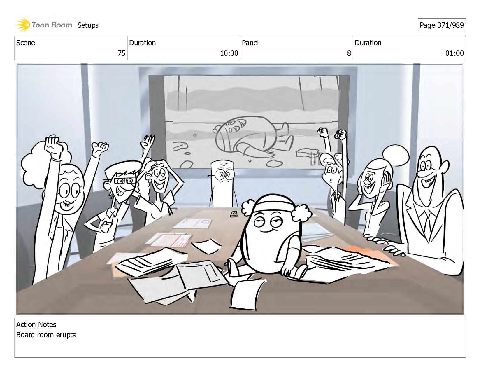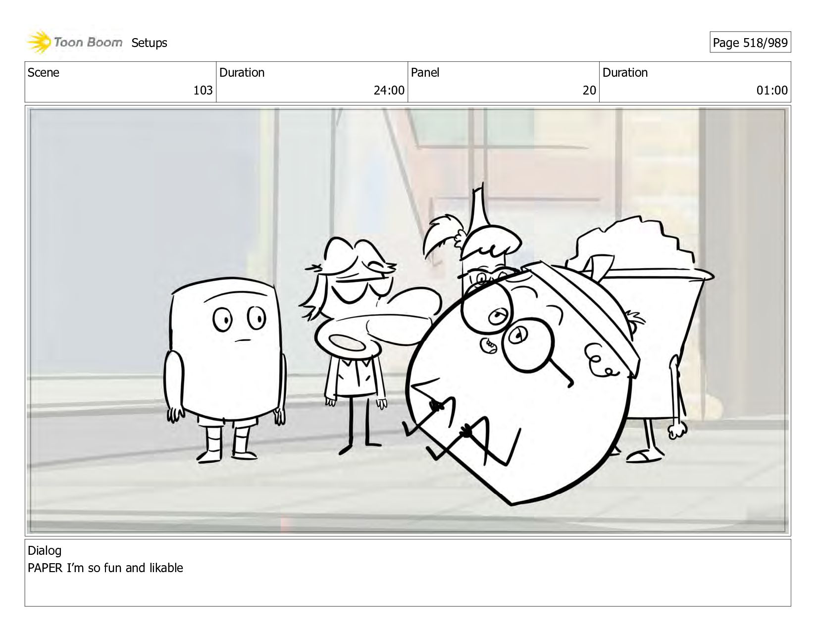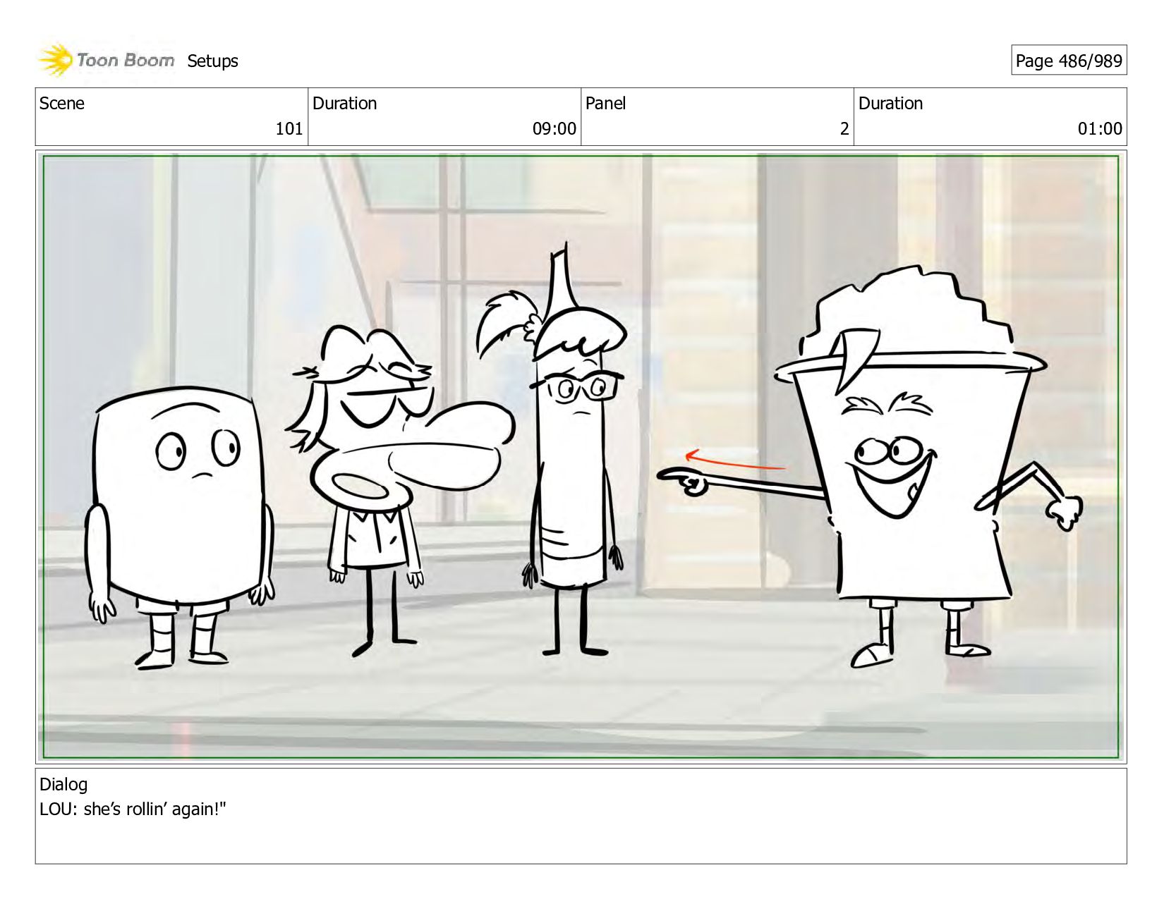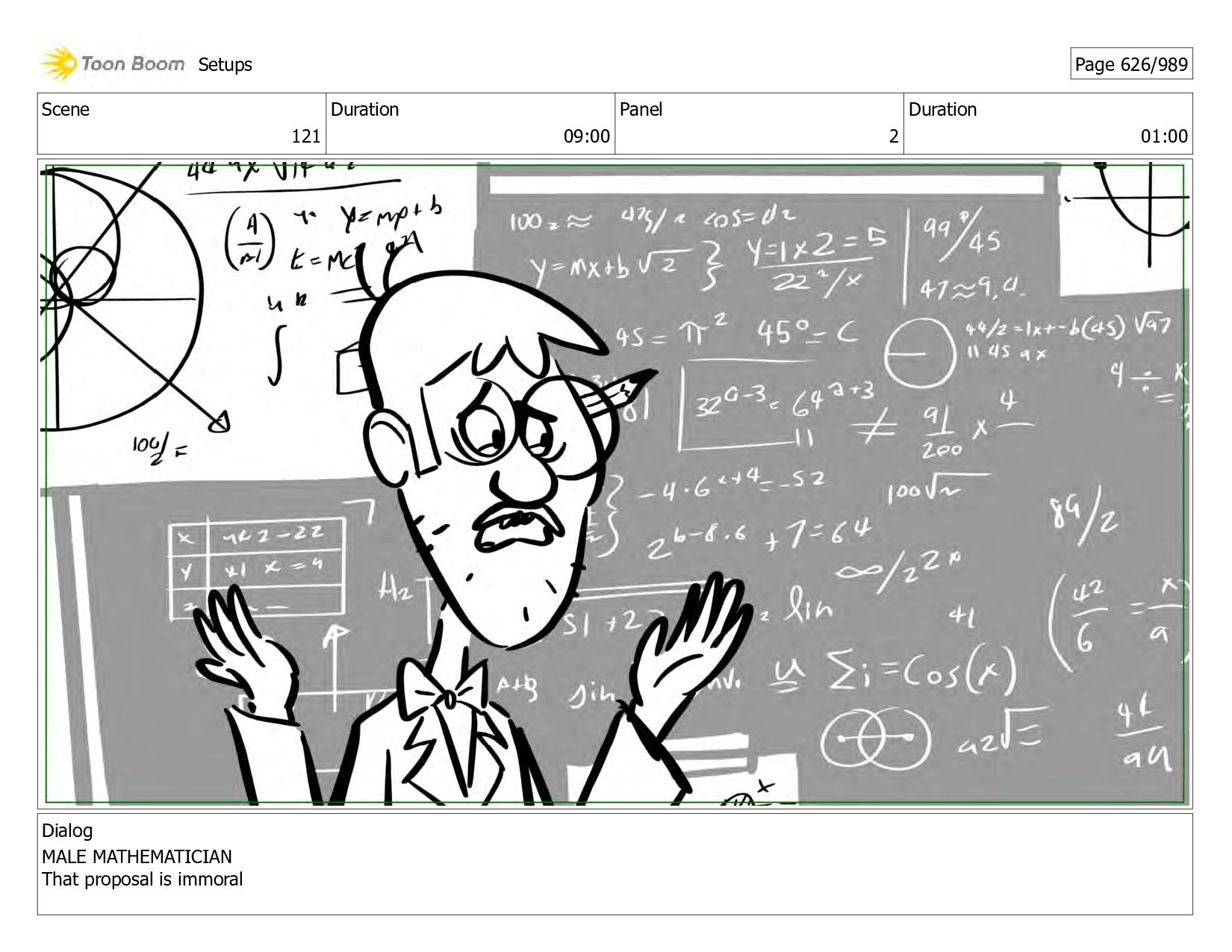 Scene 189 Duration 03:00 Panel 1 Duration 01:00 Setups Page