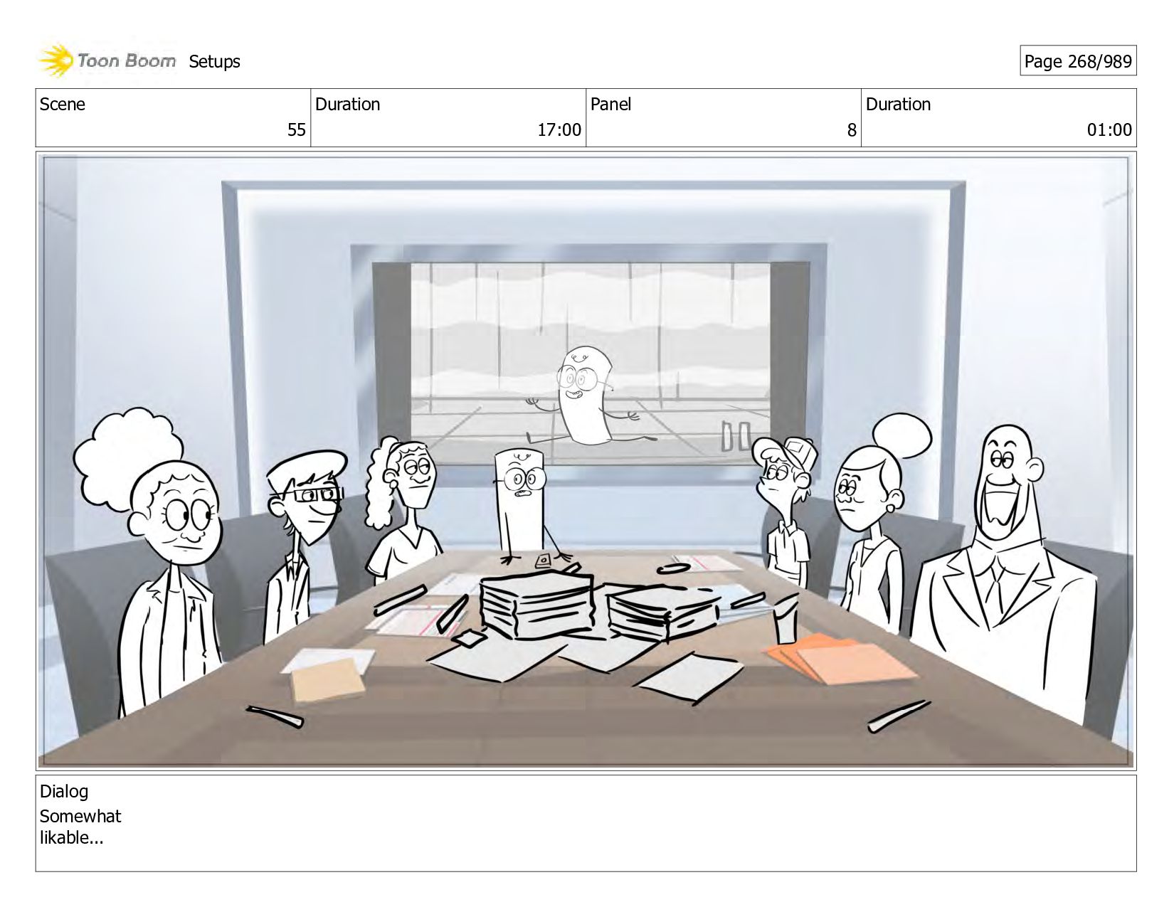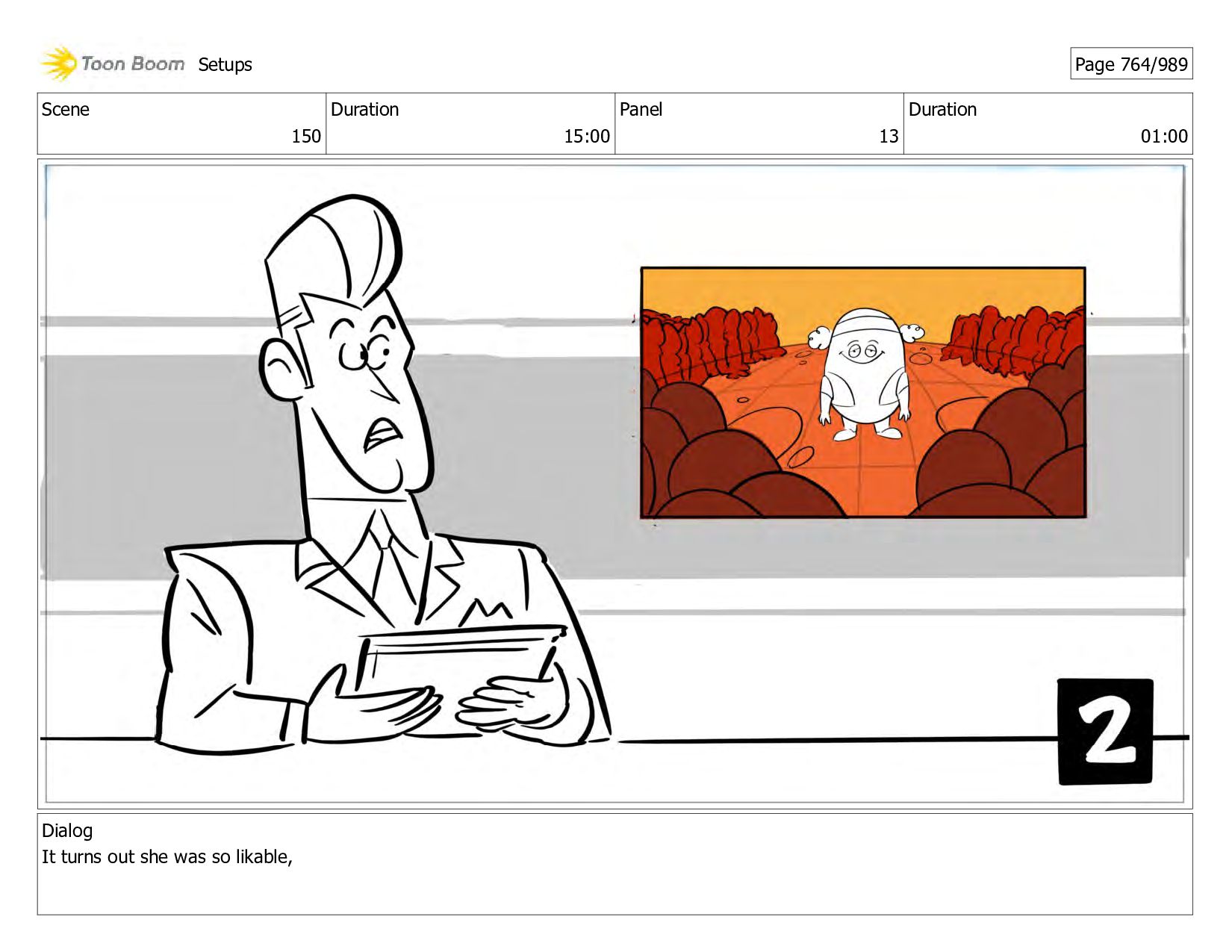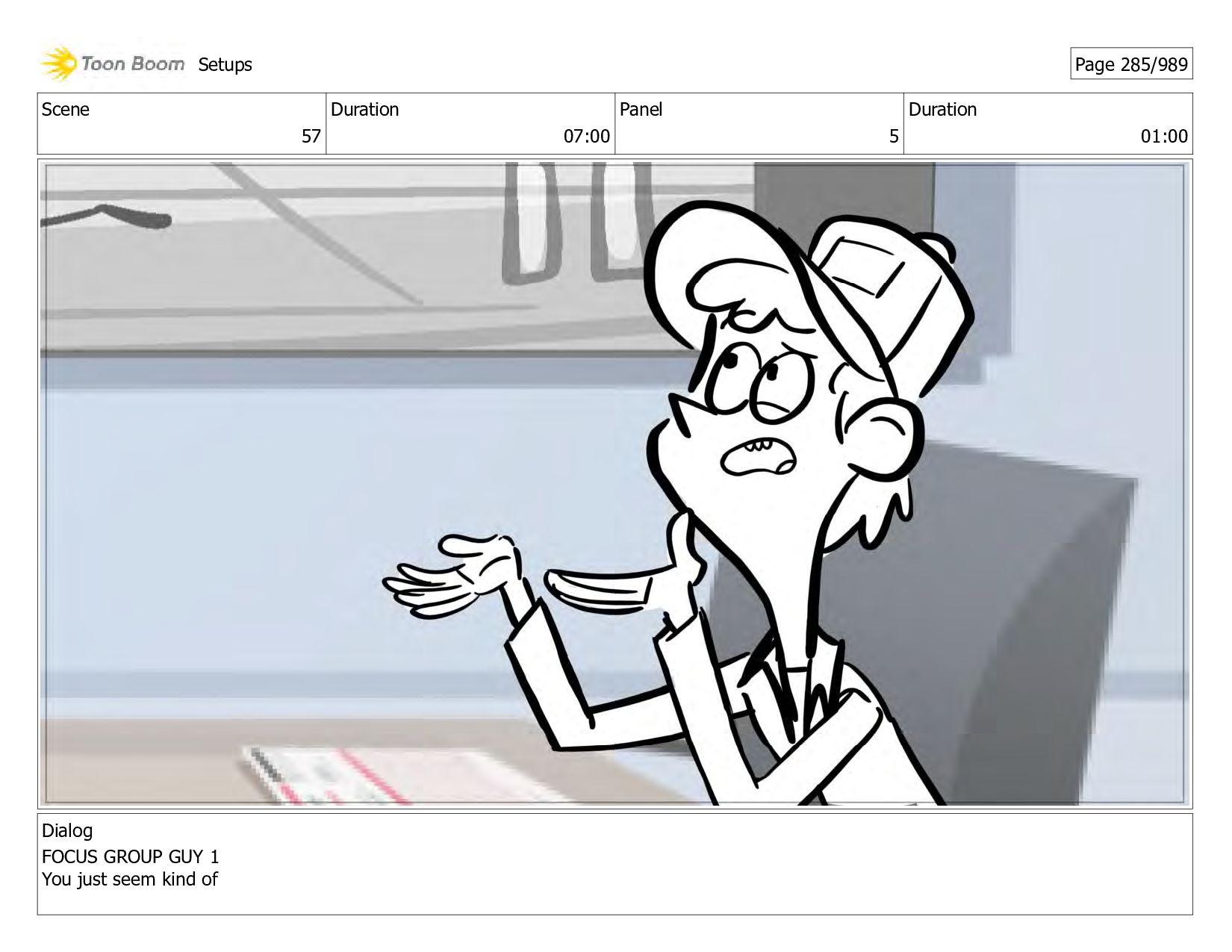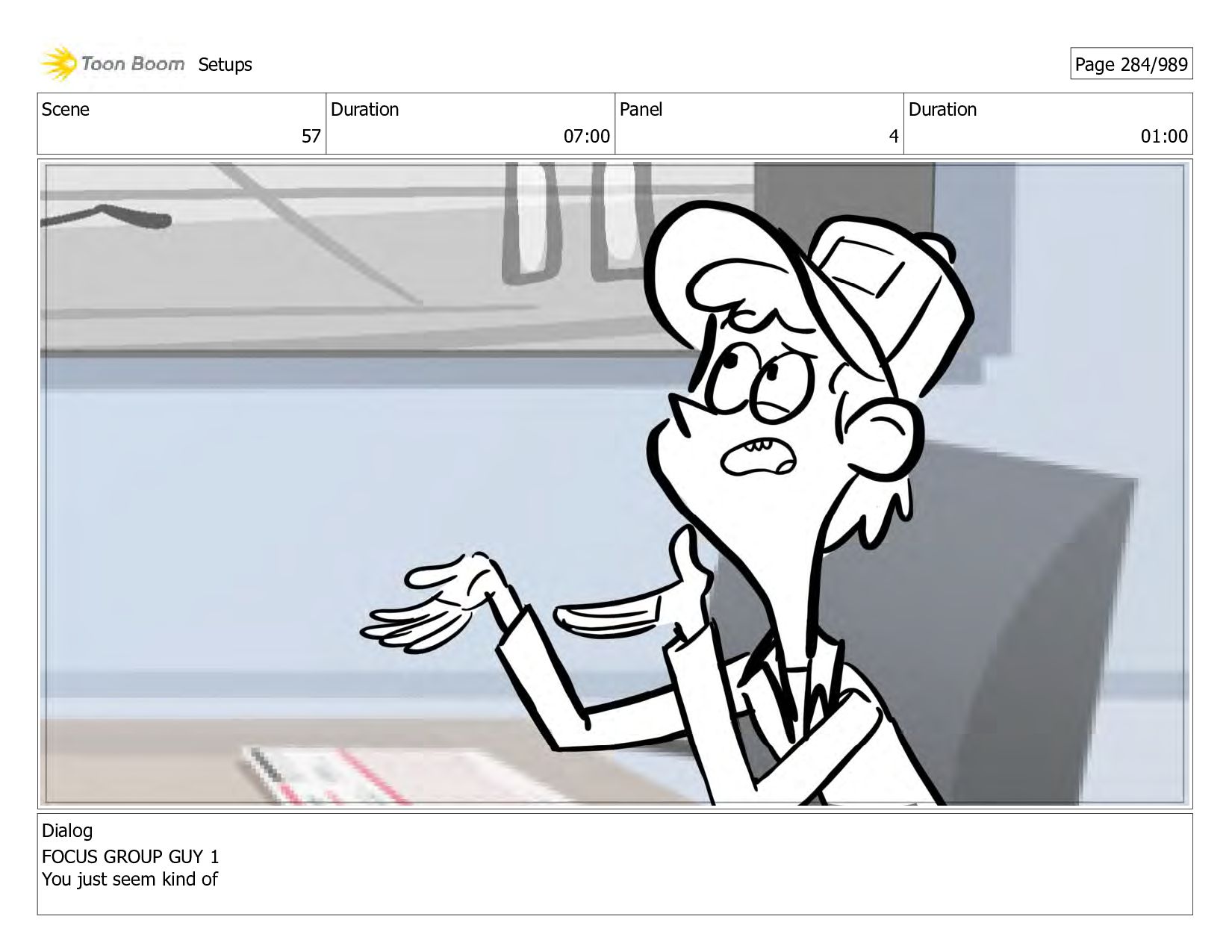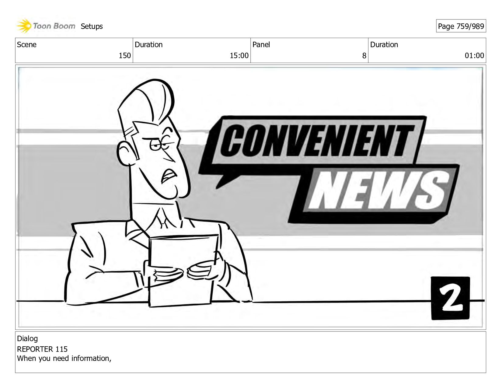 Scene 189 Duration 03:00 Panel 1 Duration 01:00 Setups Page