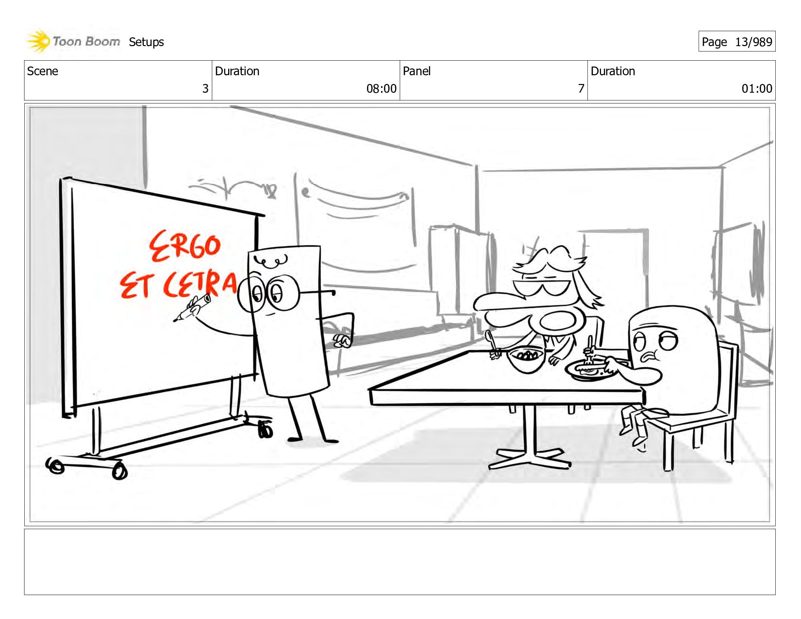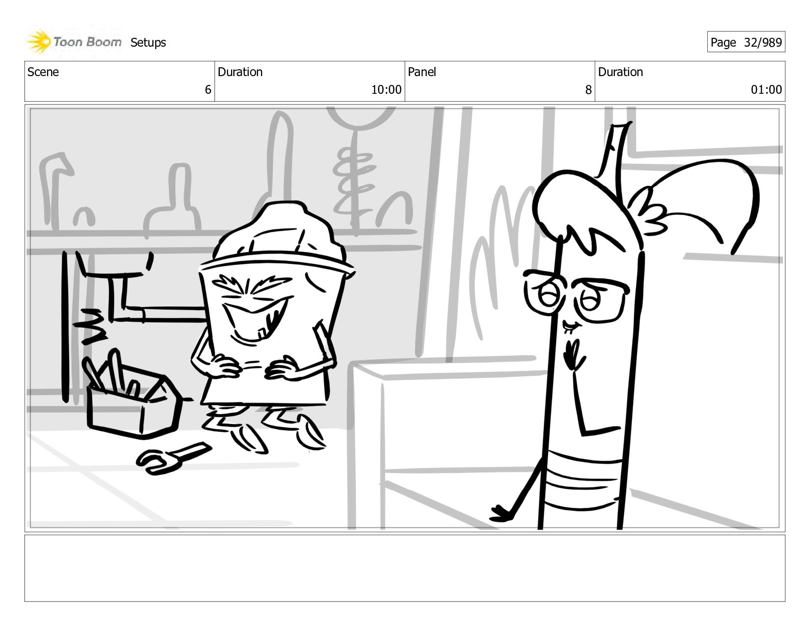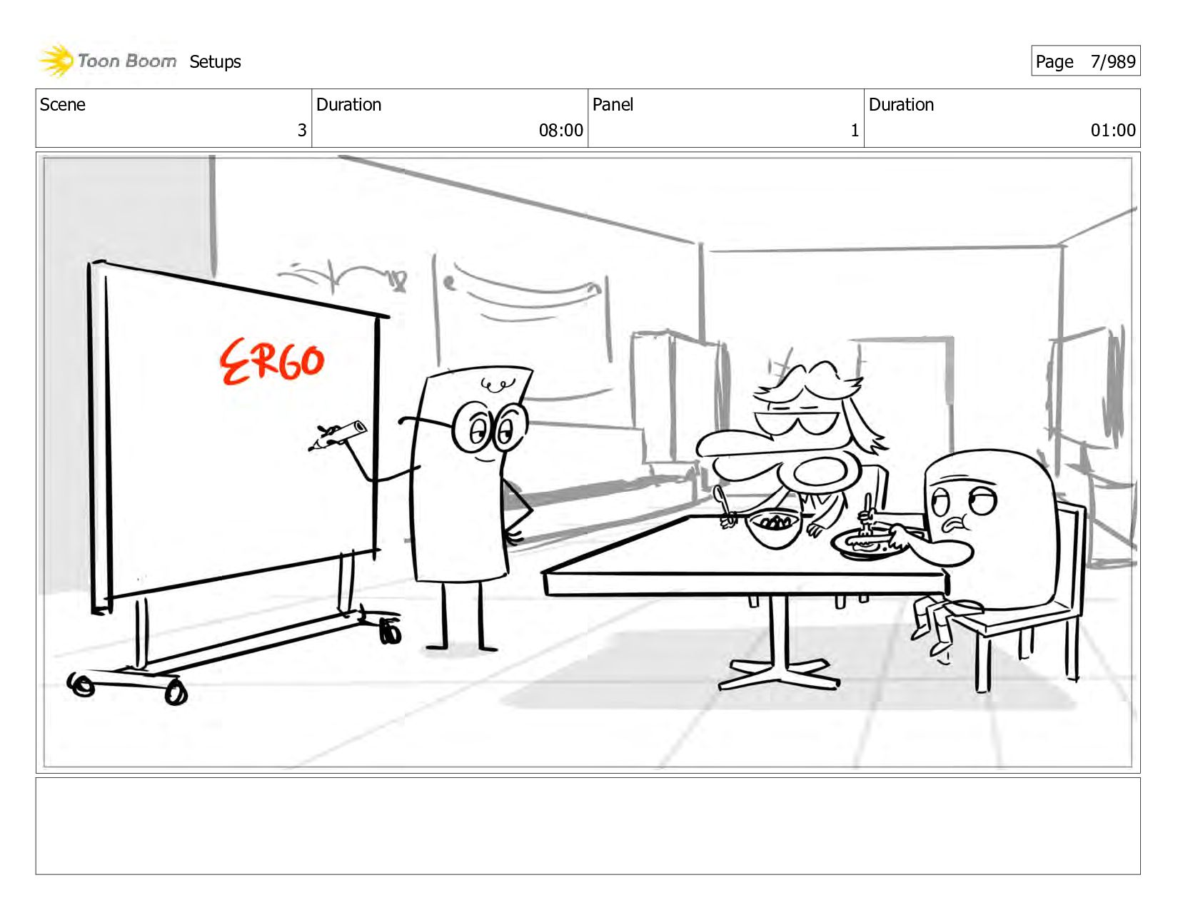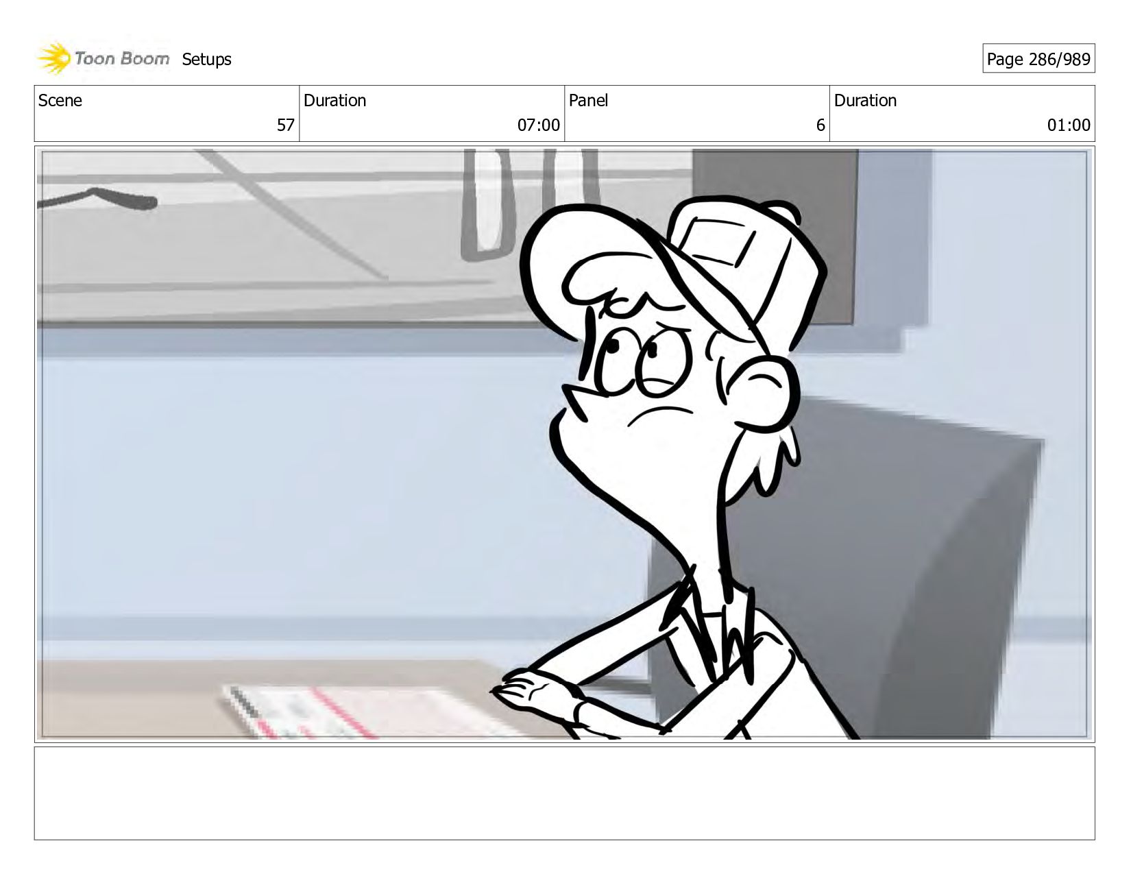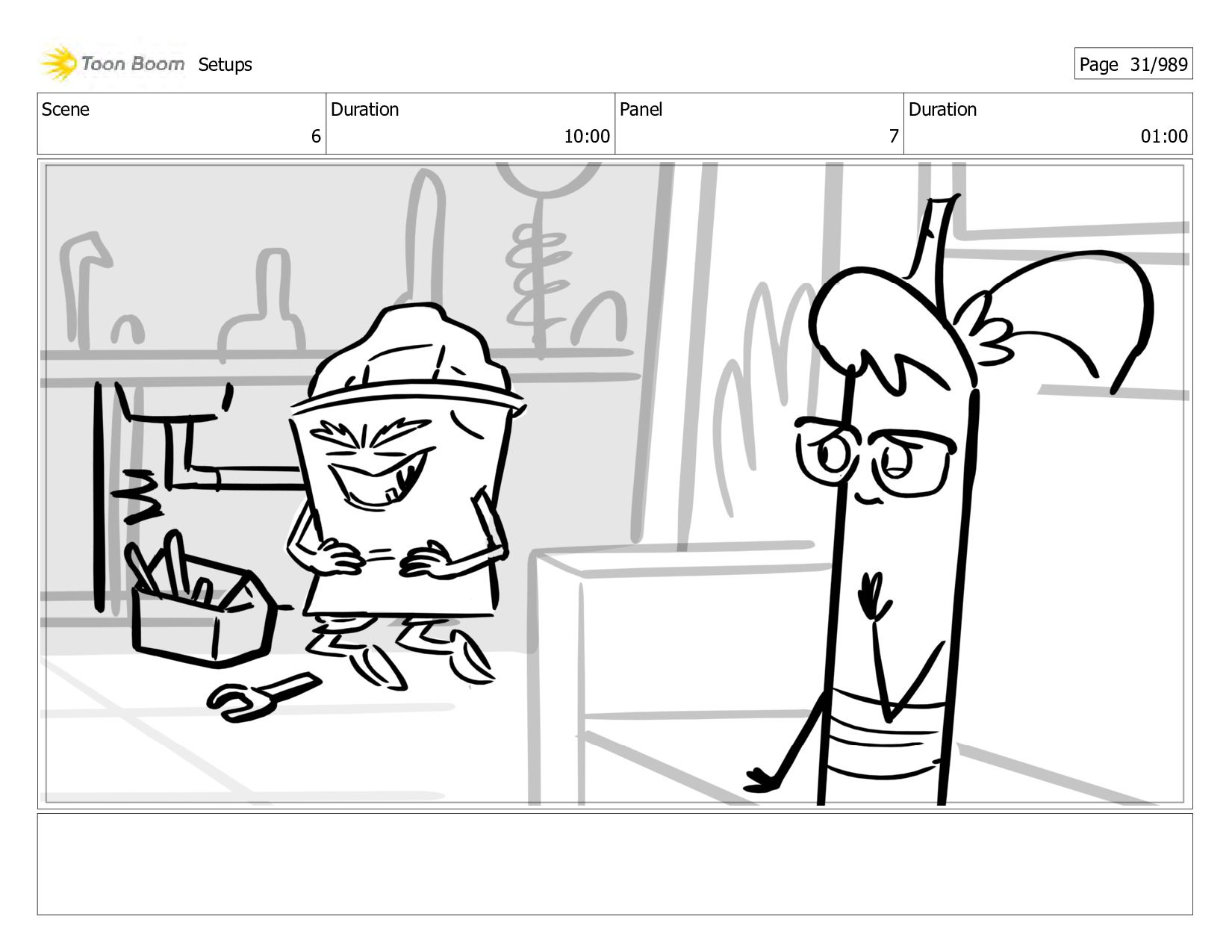 Scene 3 Duration 08:00 Panel 7 Duration 01:00 Setups Page