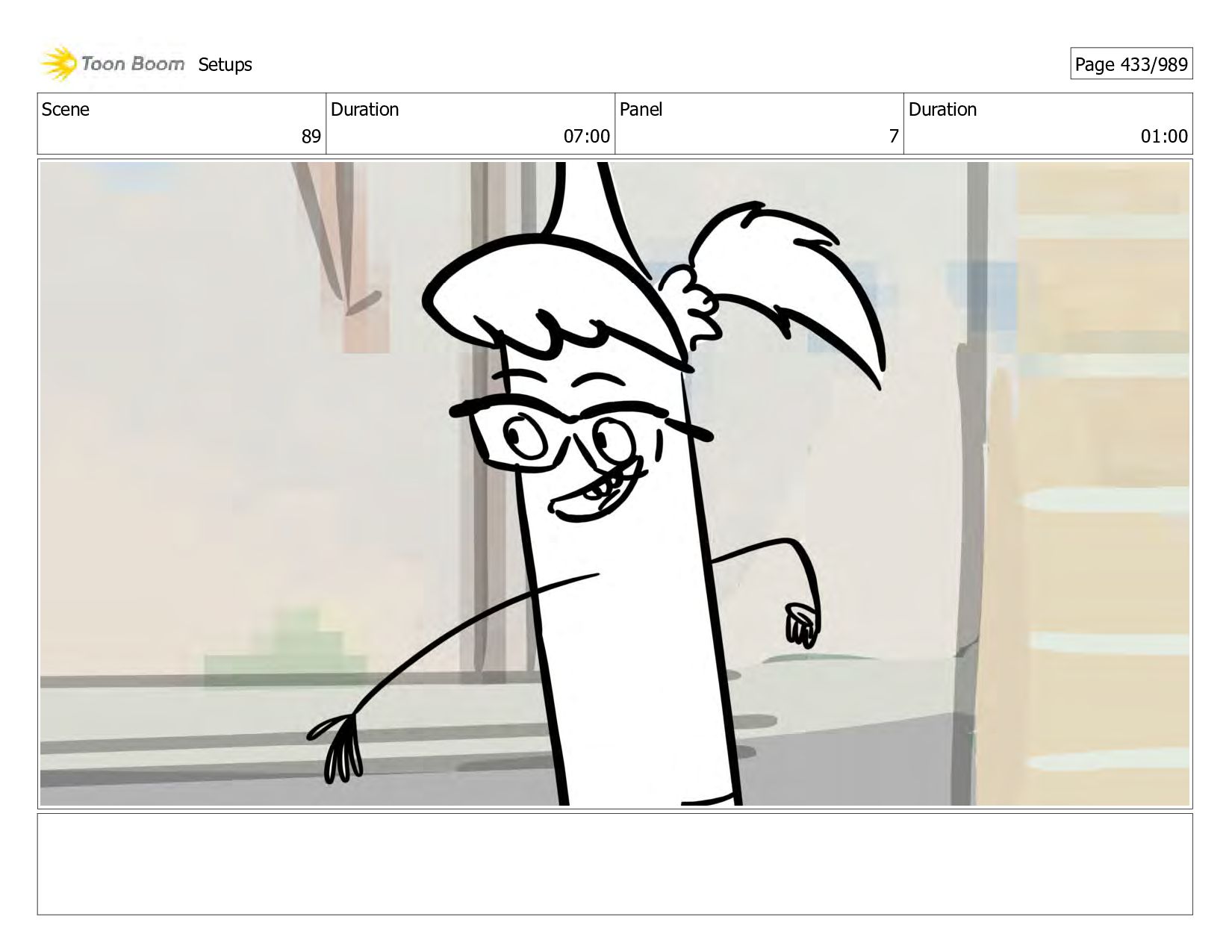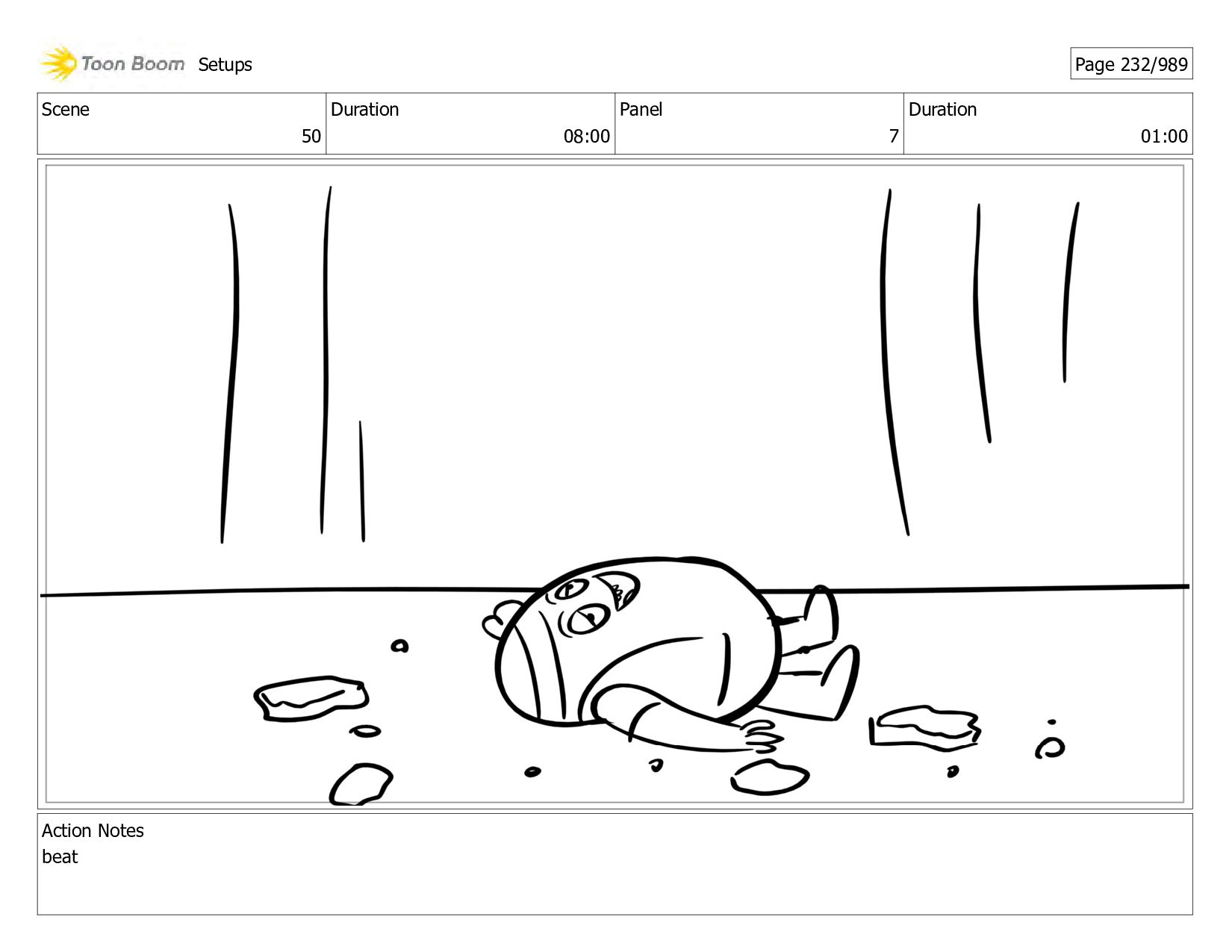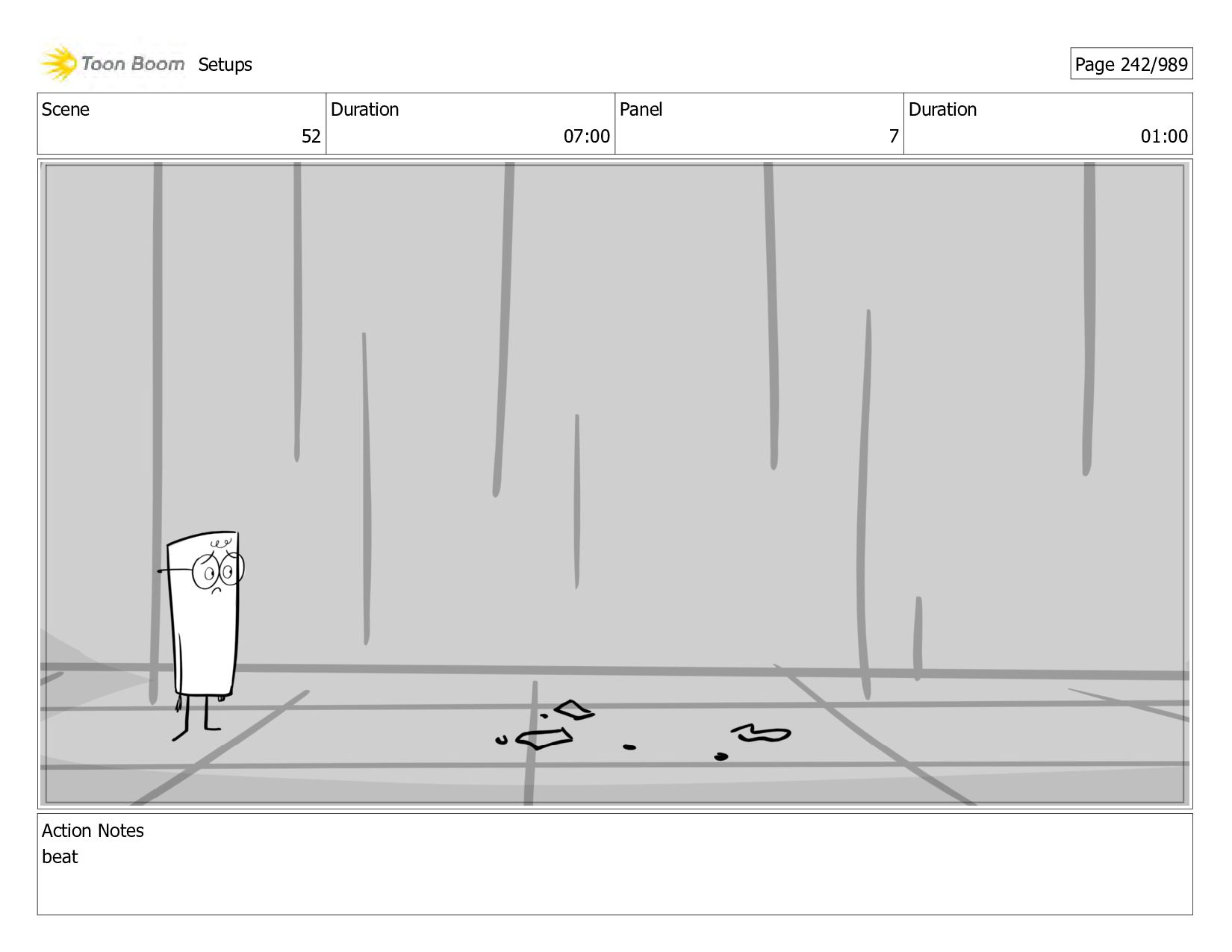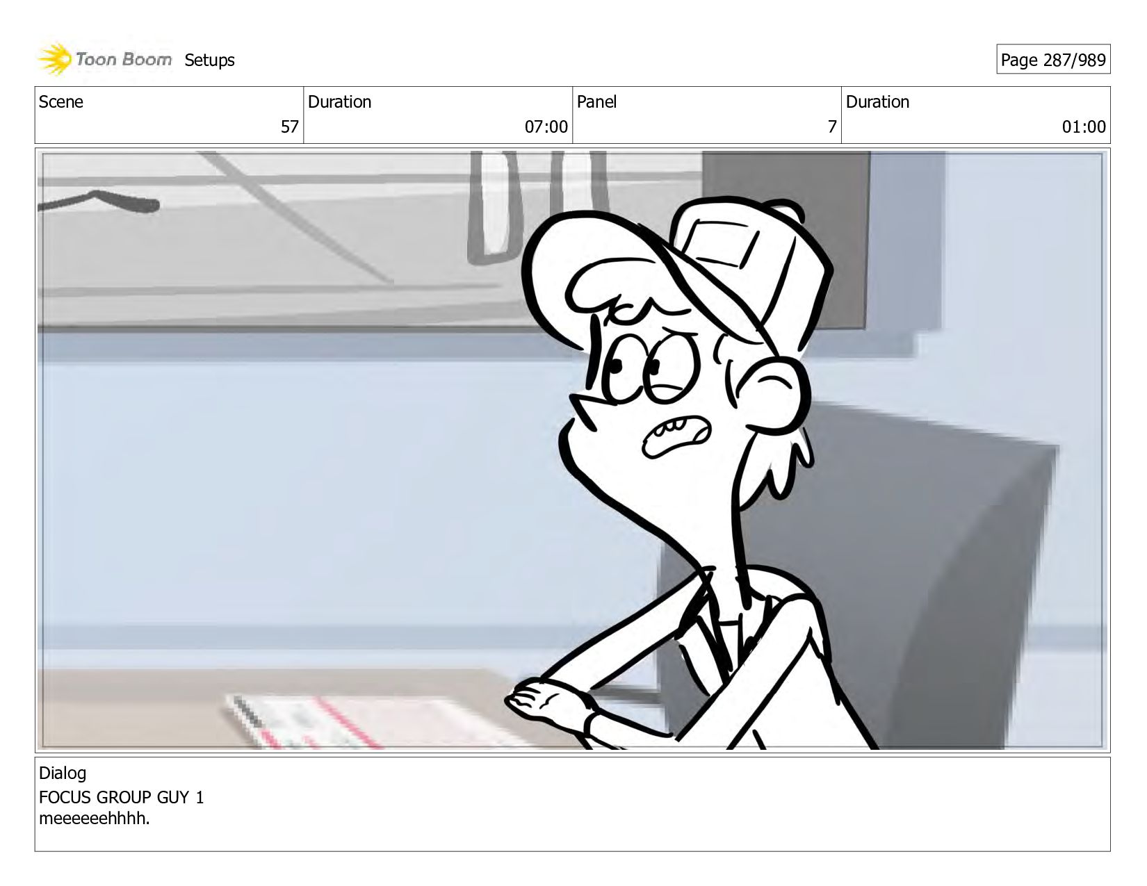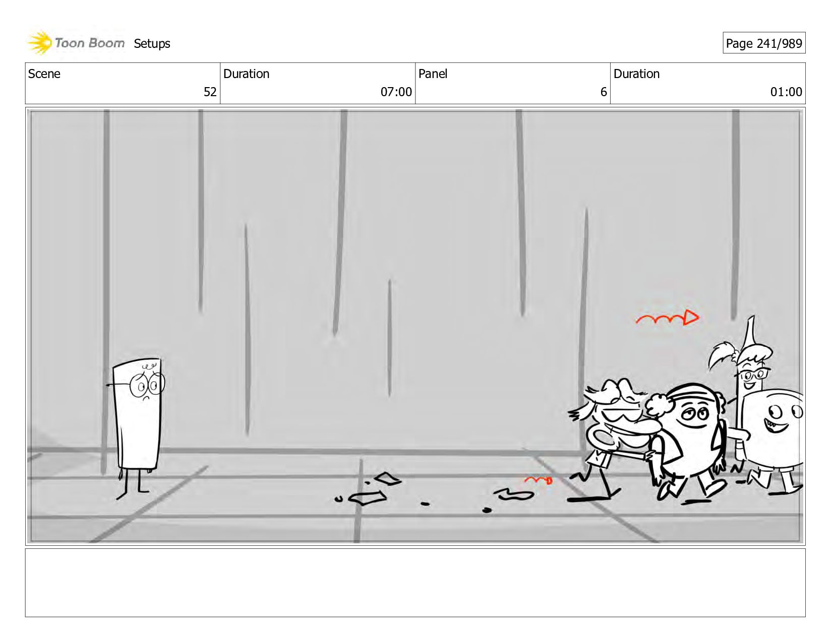 Scene 3 Duration 08:00 Panel 7 Duration 01:00 Setups Page
