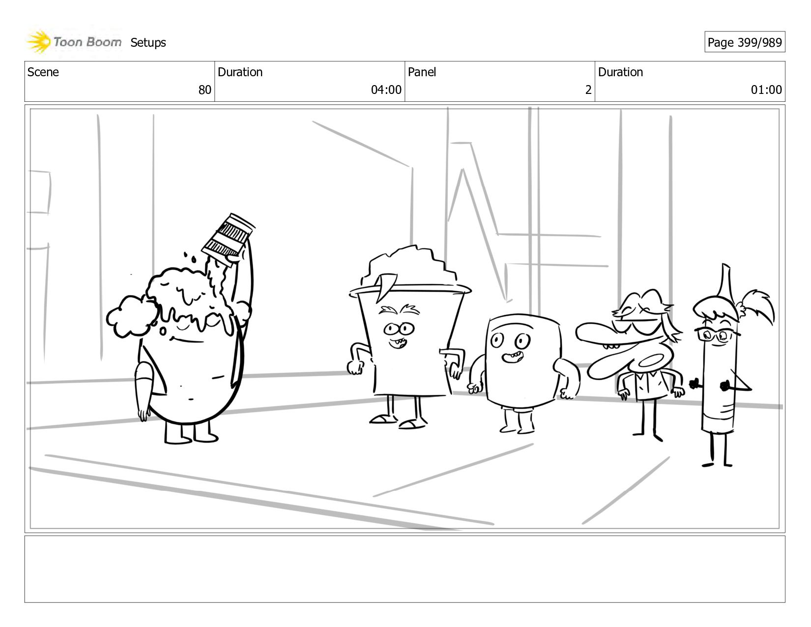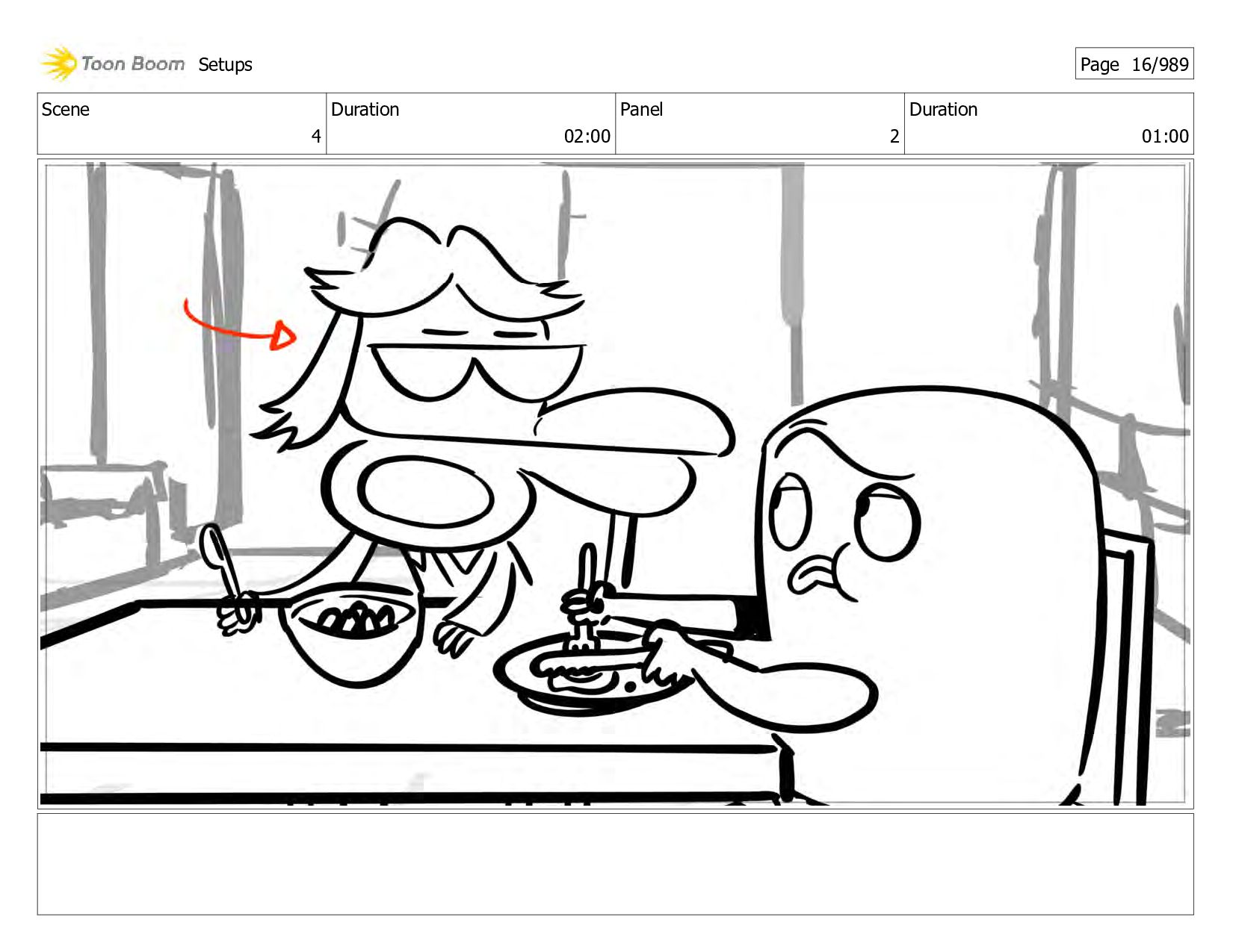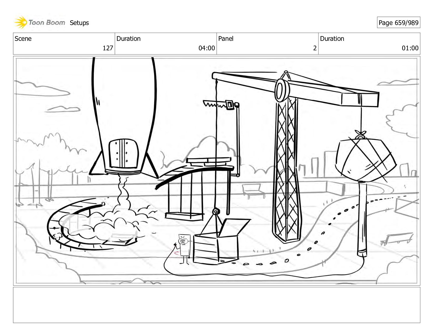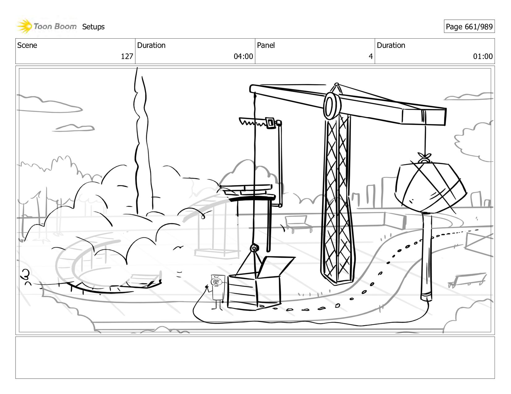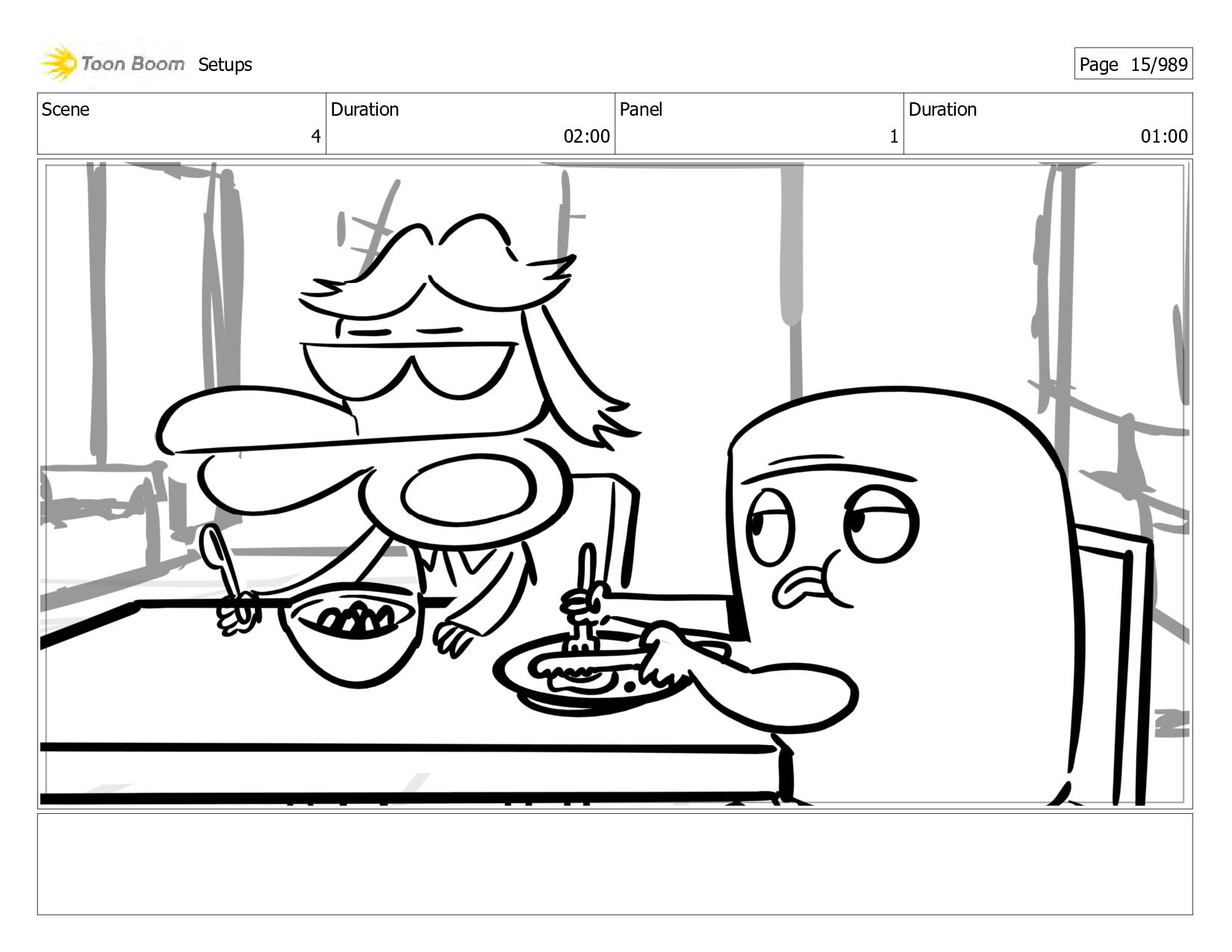 Scene 4 Duration 02:00 Panel 1 Duration 01:00 Setups Page
