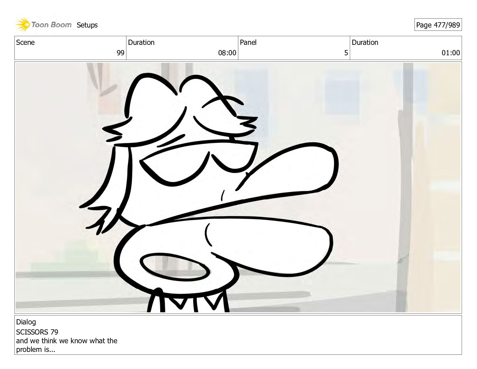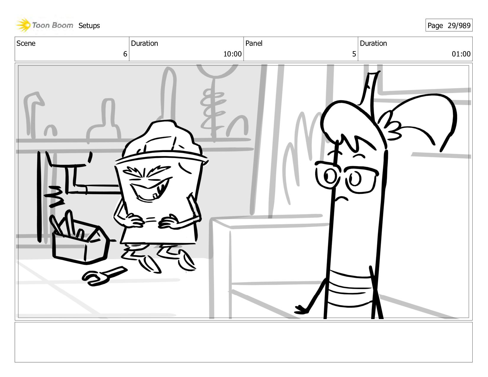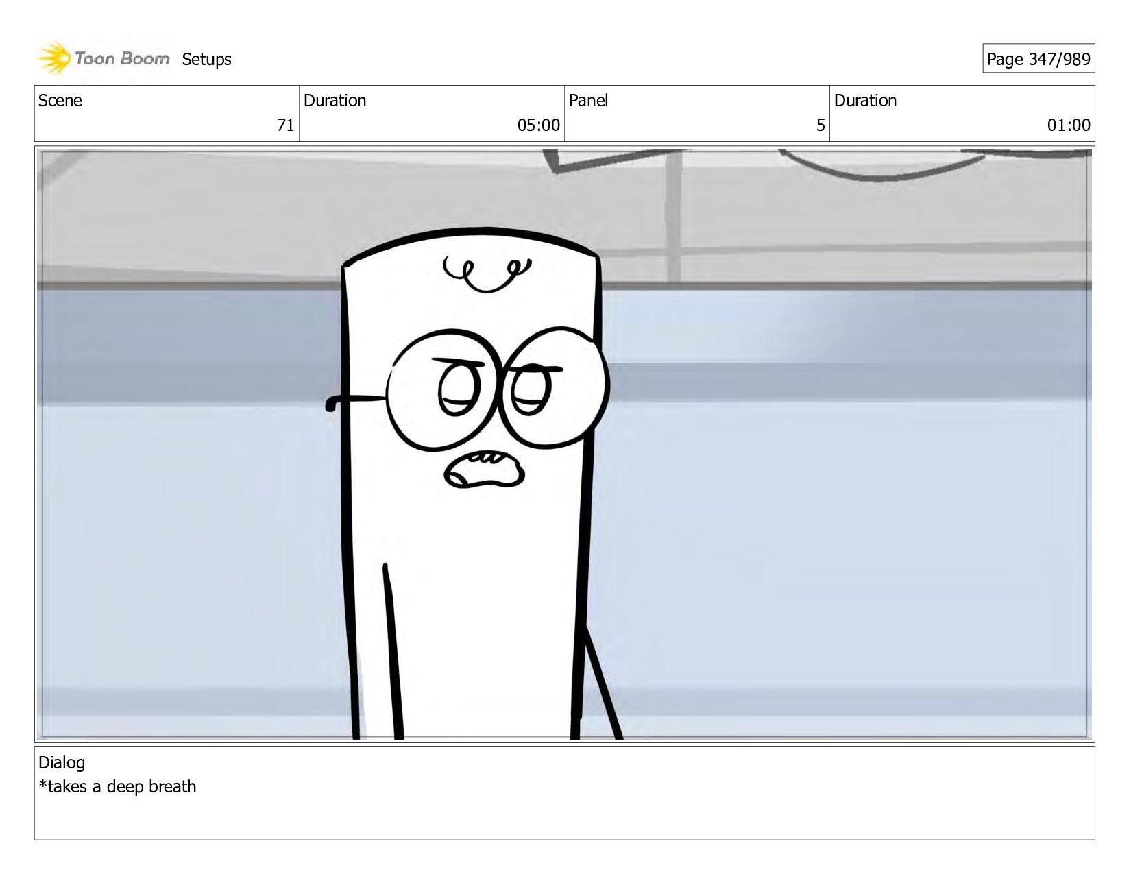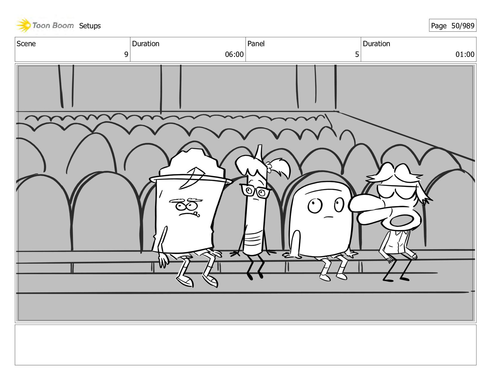 Scene 3 Duration 08:00 Panel 5 Duration 01:00 Setups Page