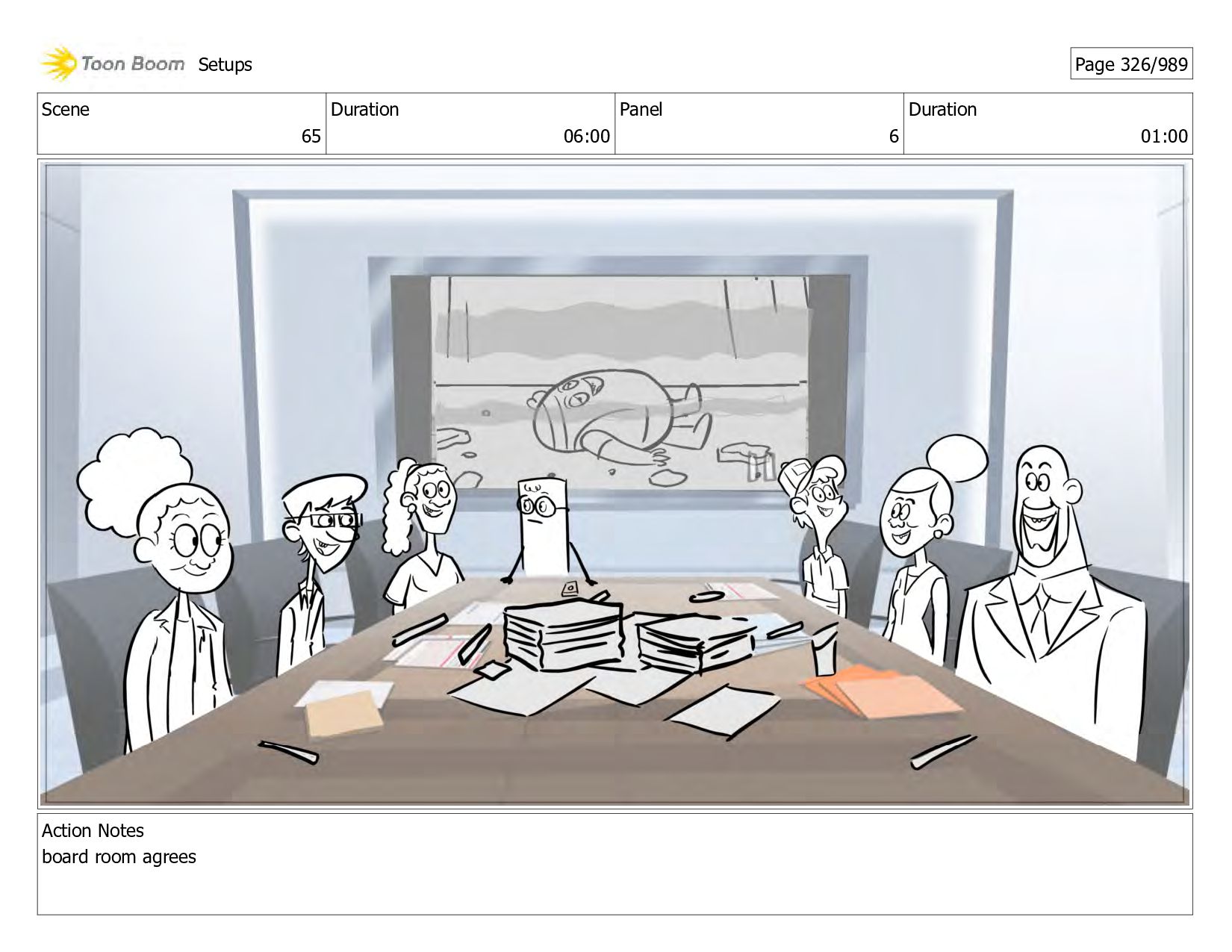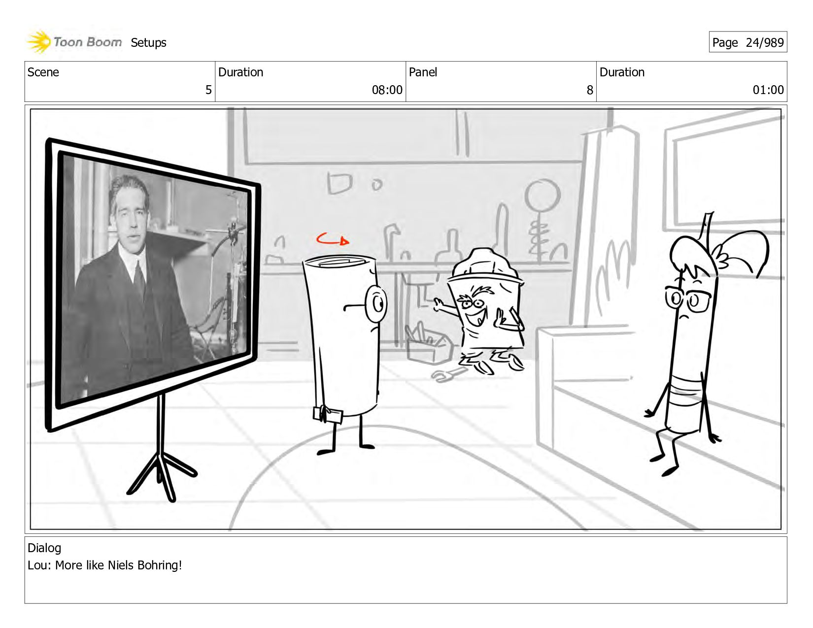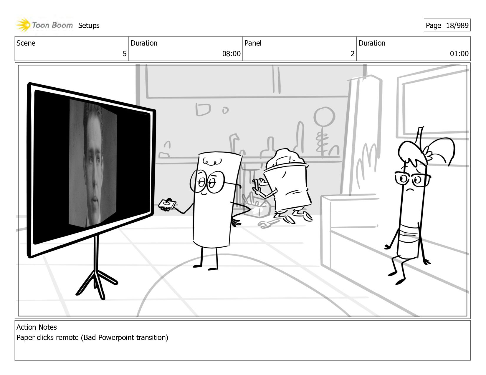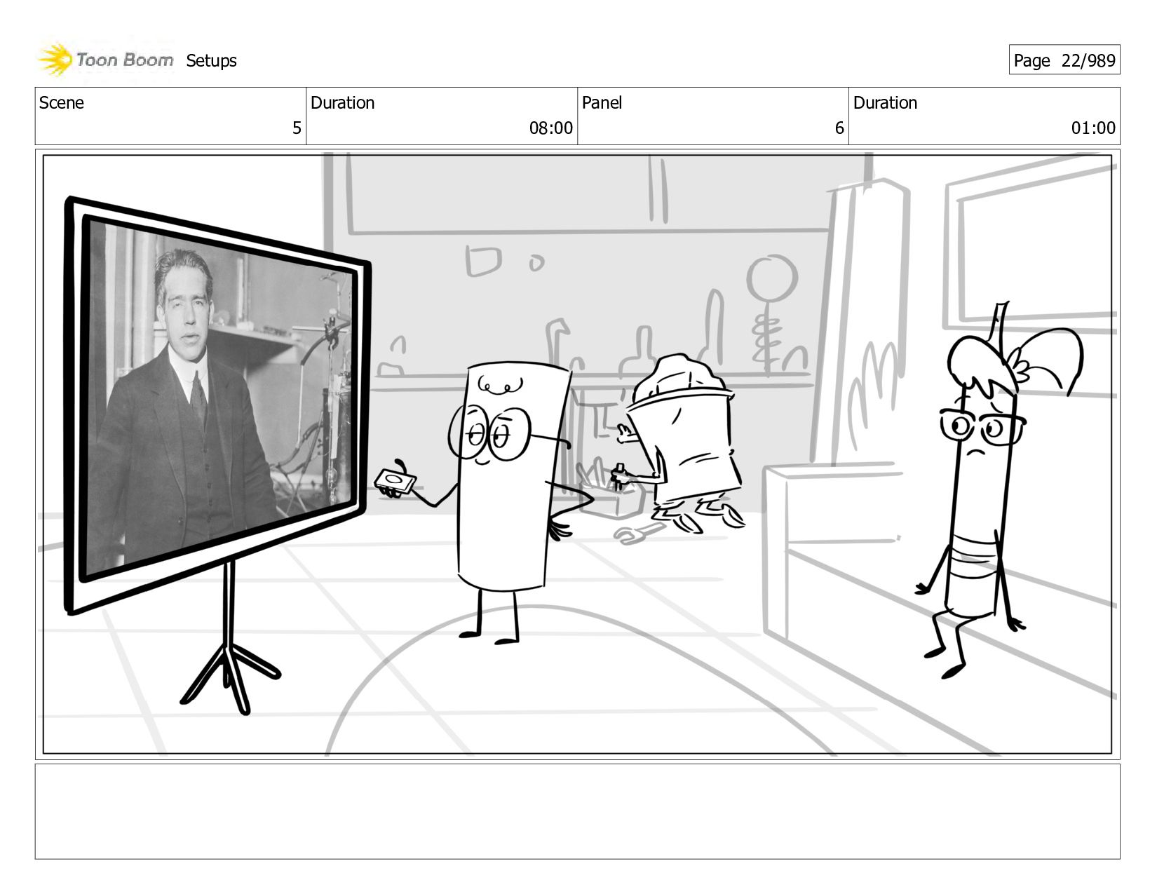 Scene 3 Duration 08:00 Panel 5 Duration 01:00 Setups Page