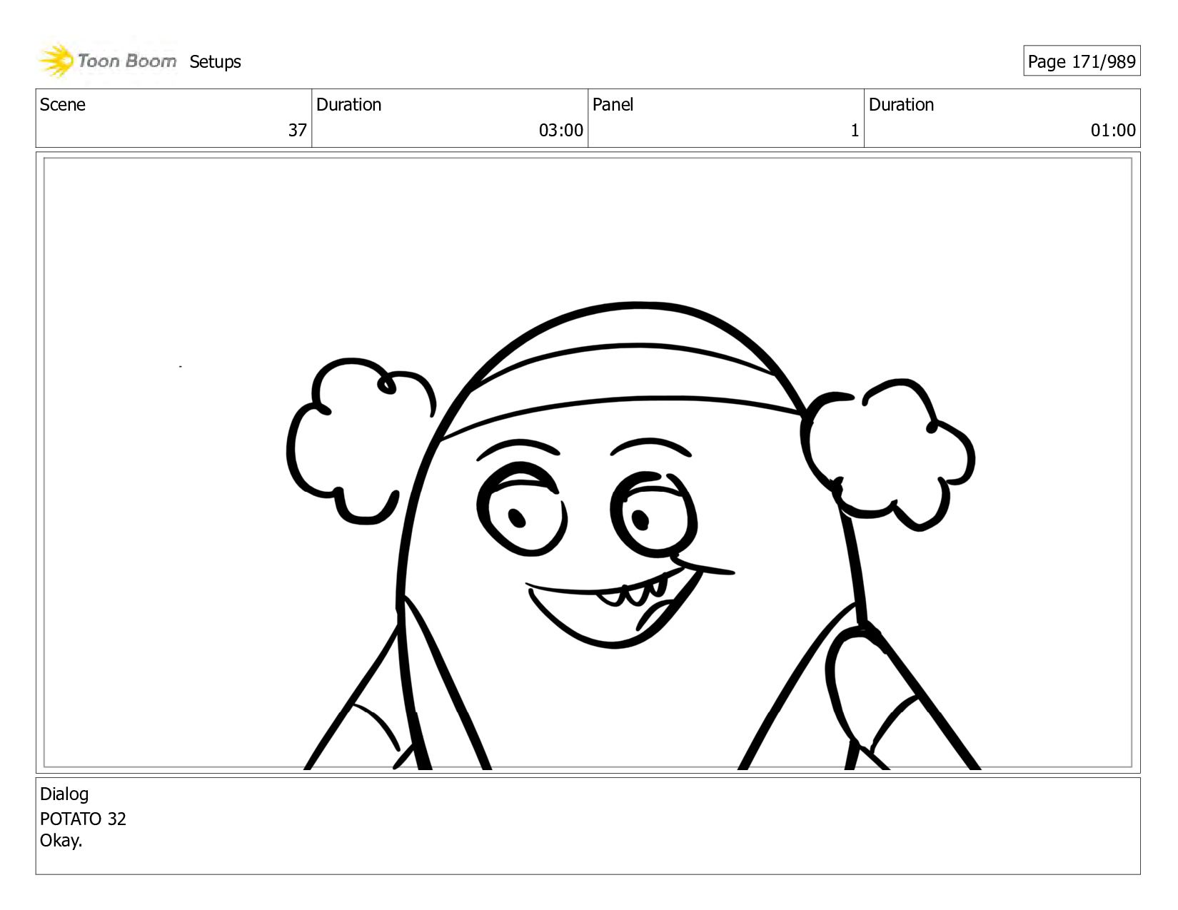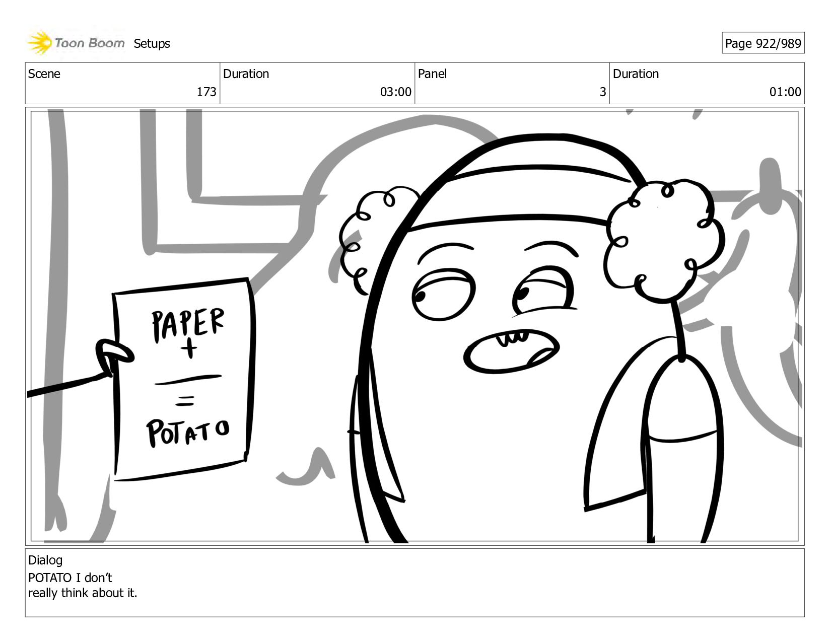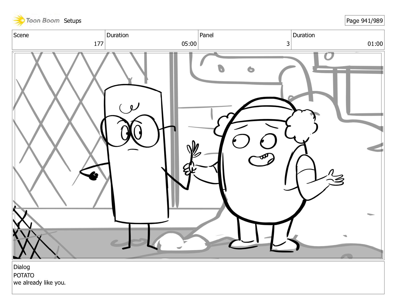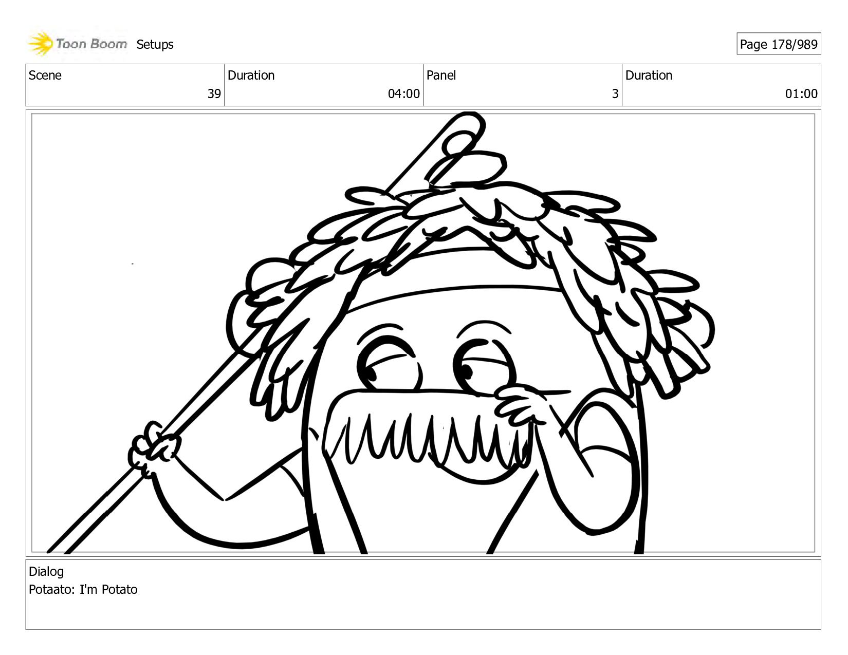 Scene 177 Duration 05:00 Panel 3 Duration 01:00 Dialog POTATO