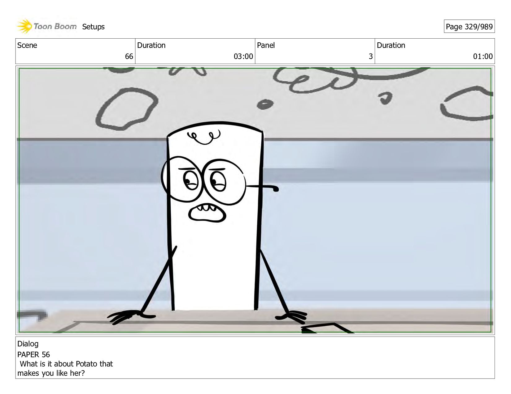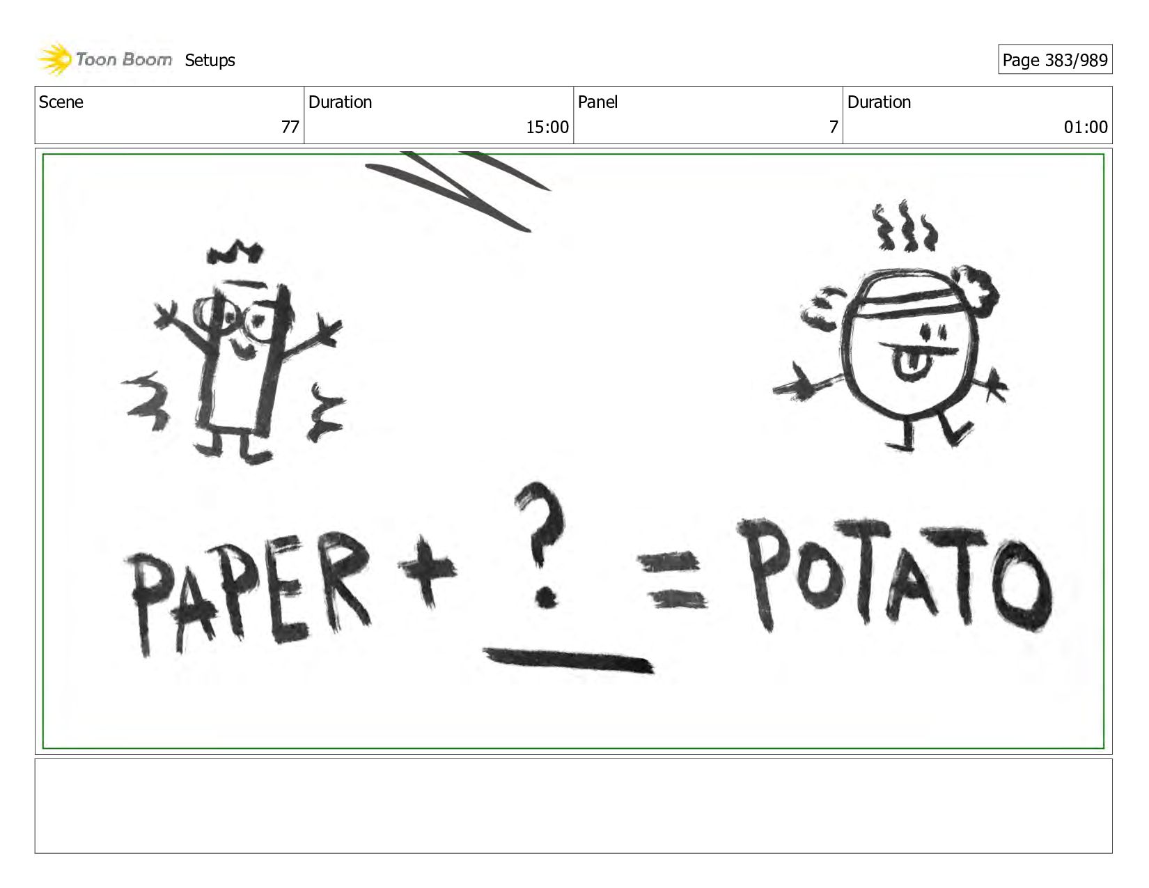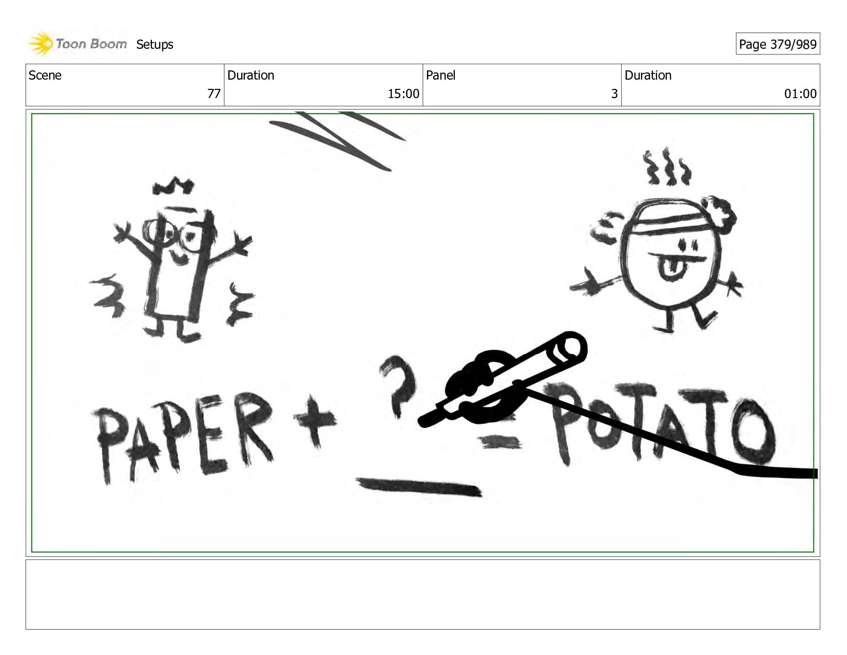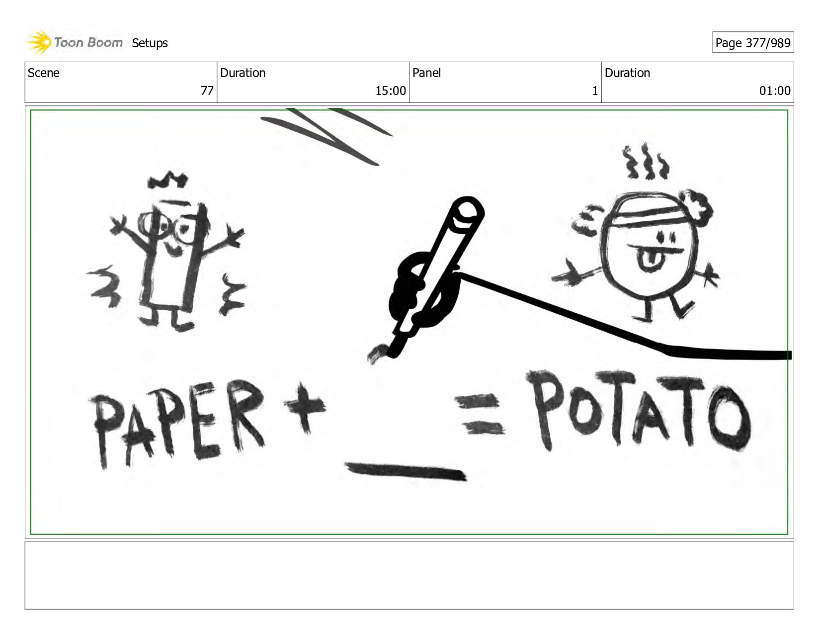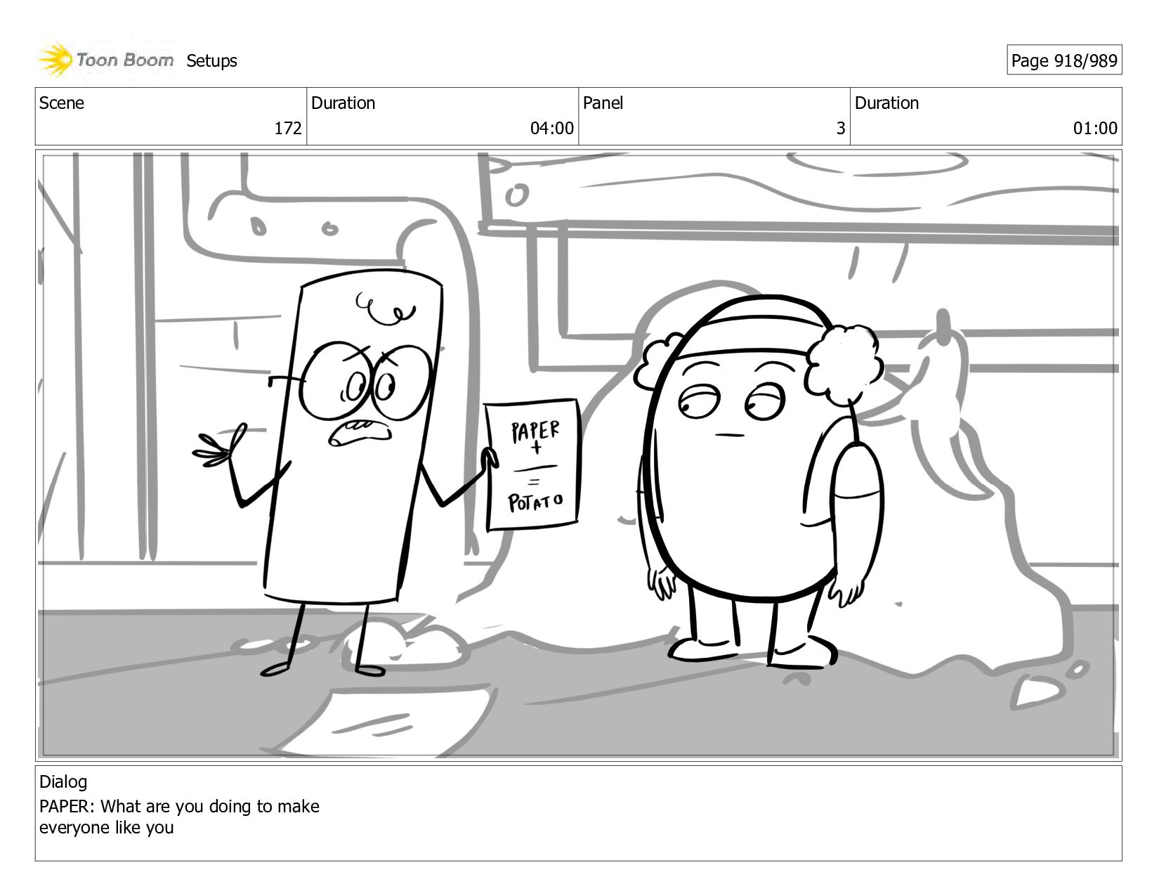 Scene 177 Duration 05:00 Panel 3 Duration 01:00 Dialog POTATO