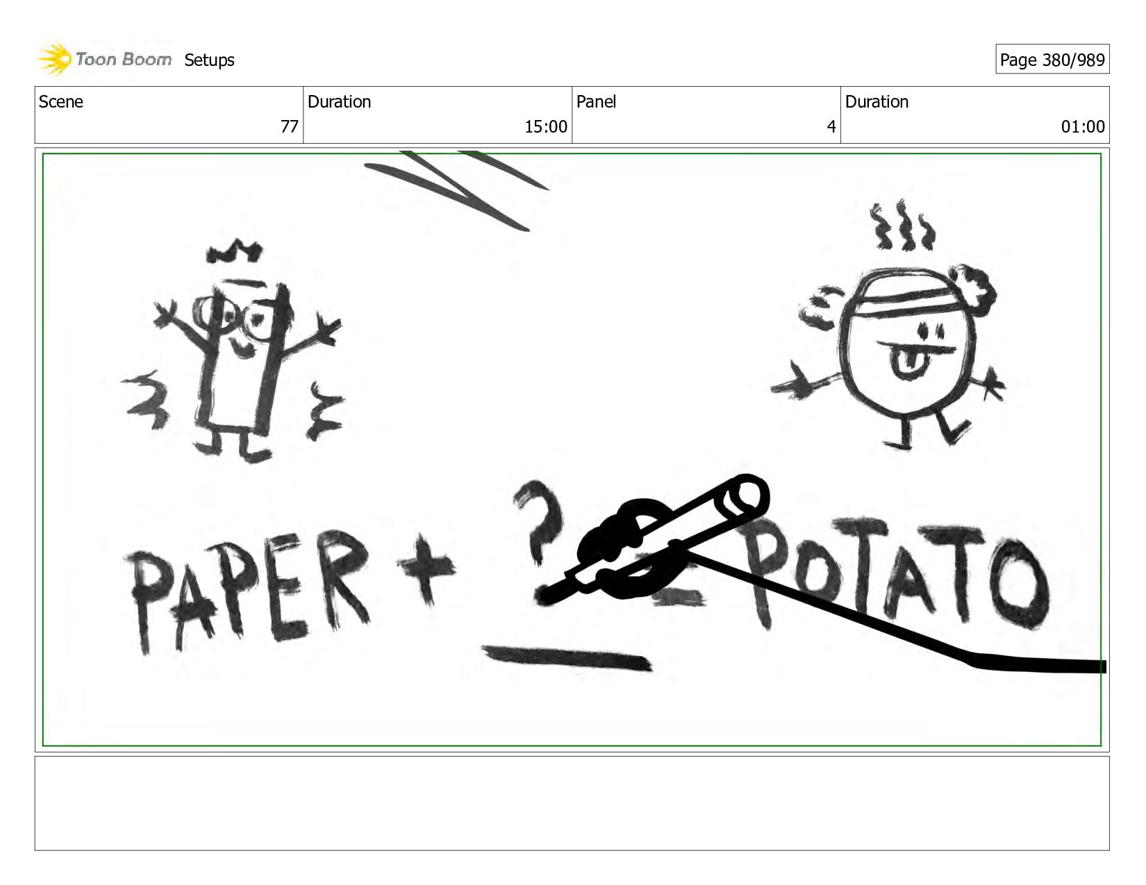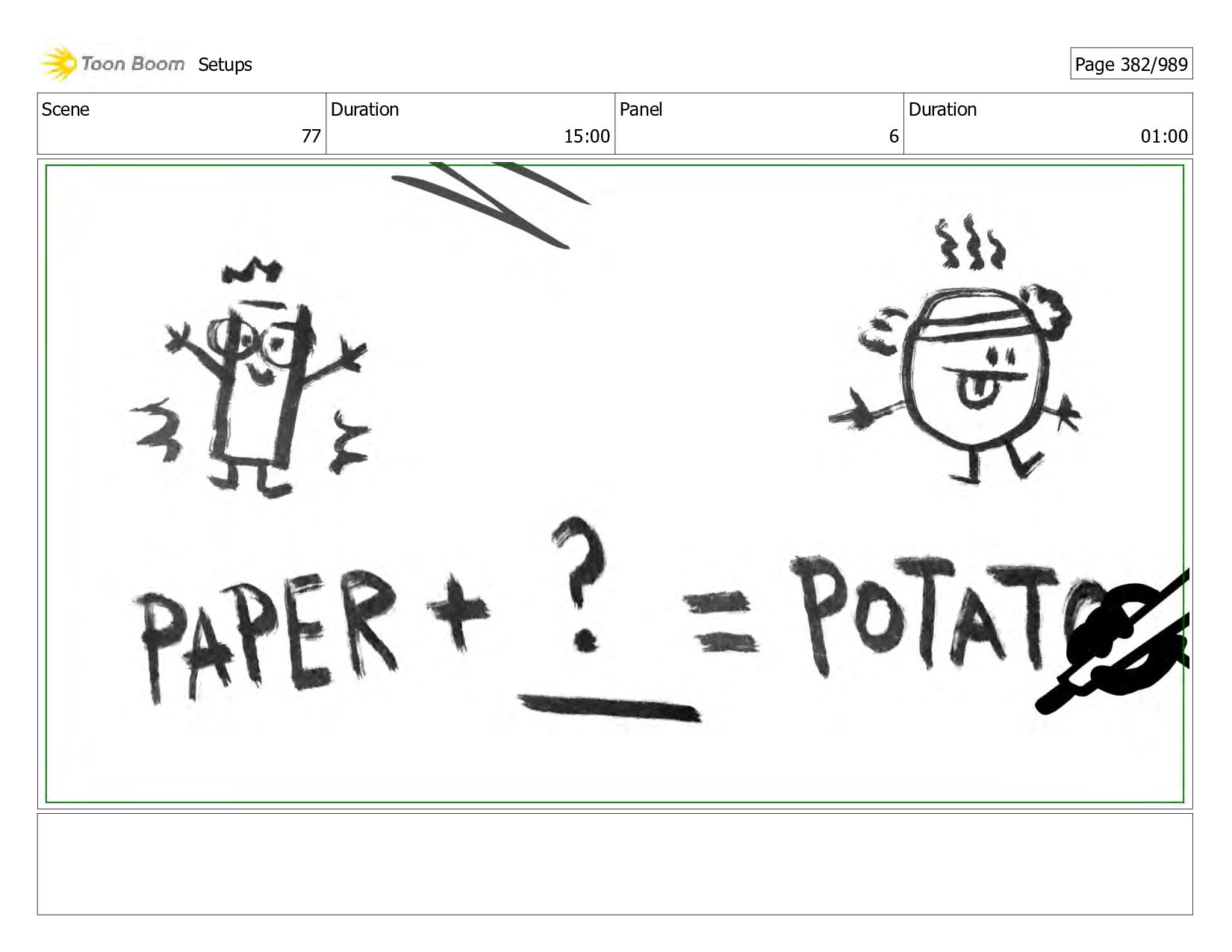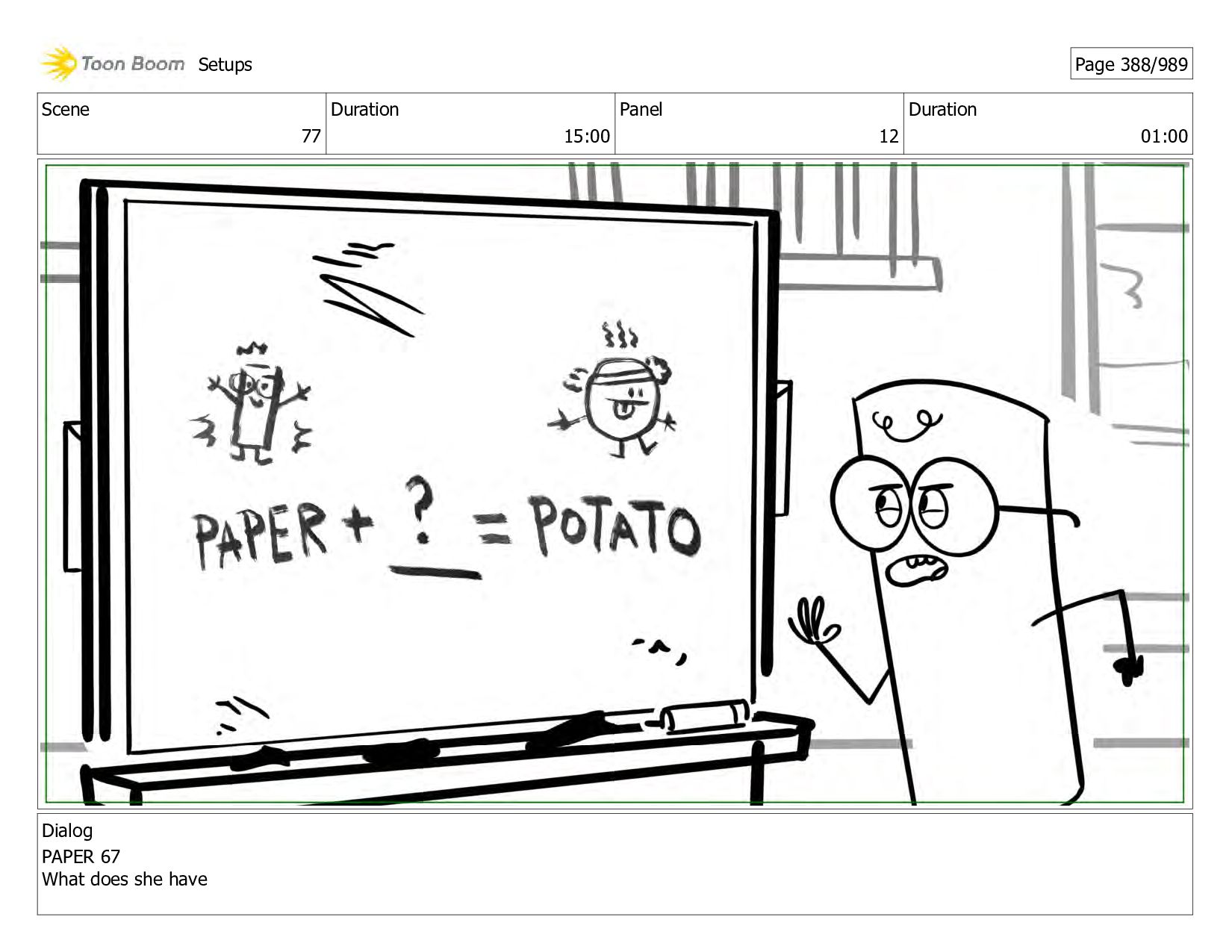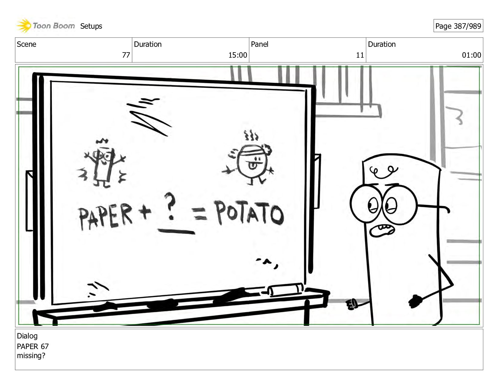 Scene 177 Duration 05:00 Panel 3 Duration 01:00 Dialog POTATO