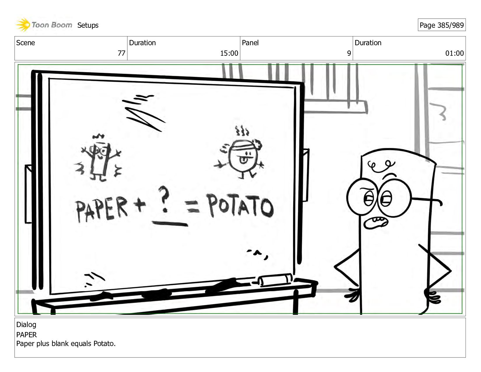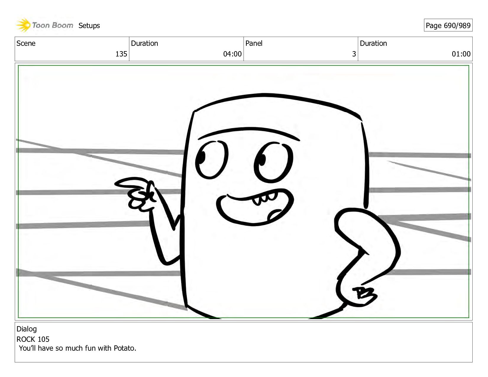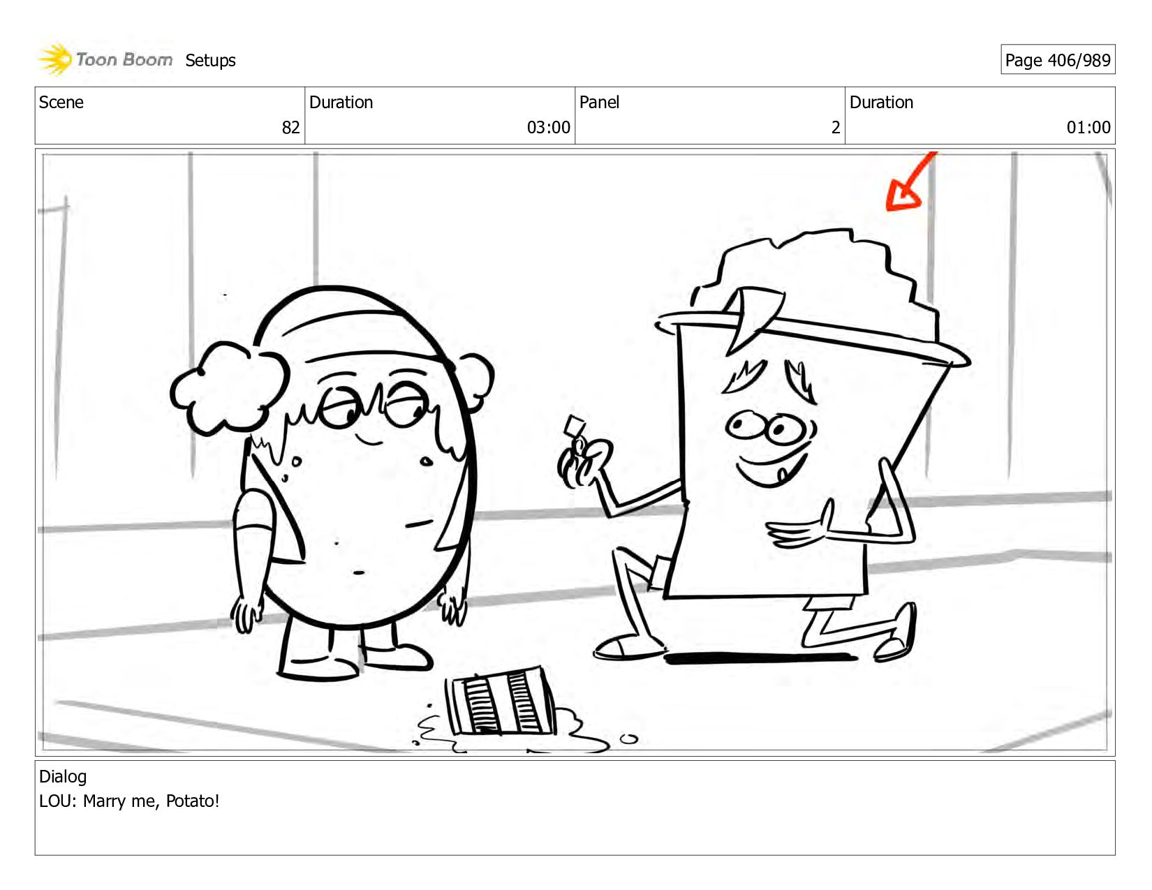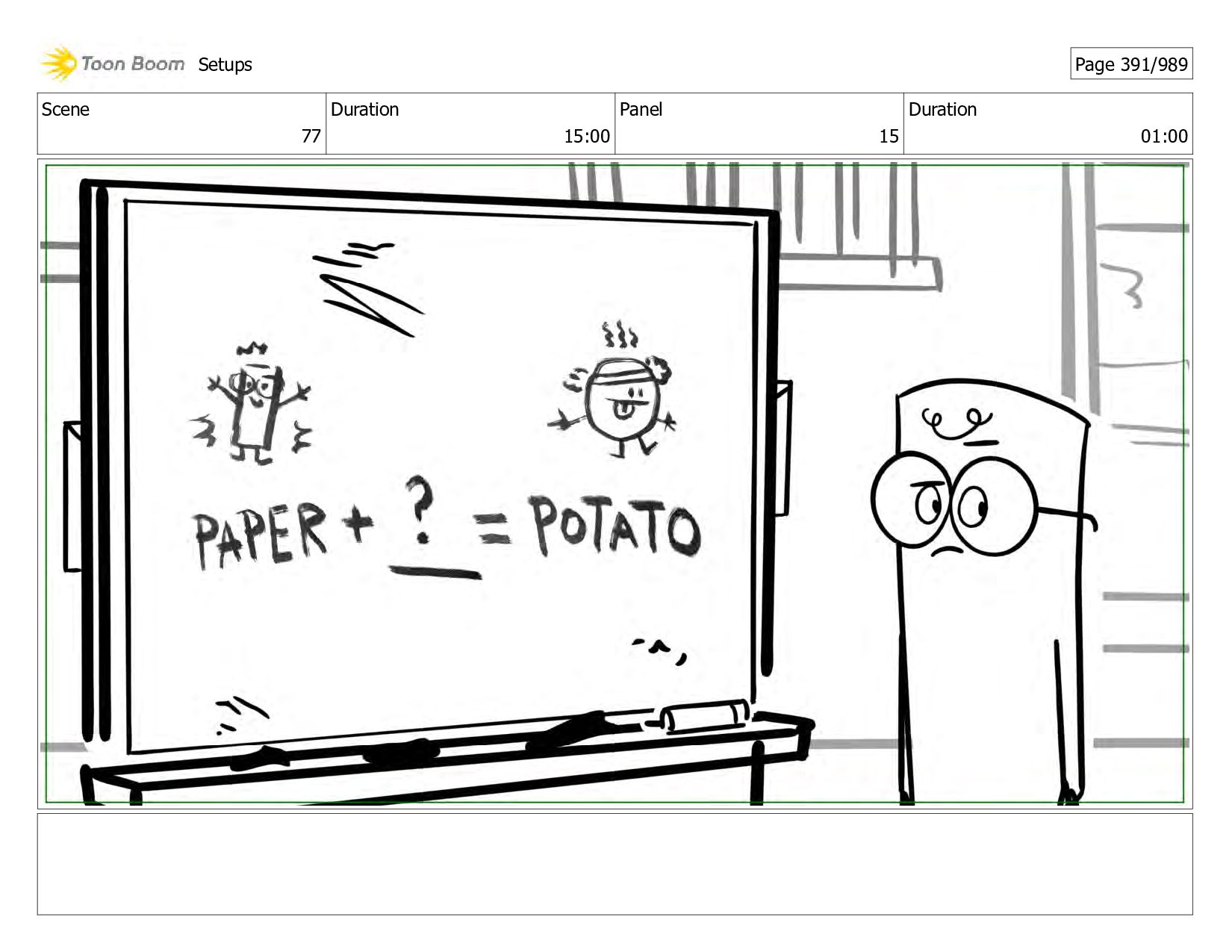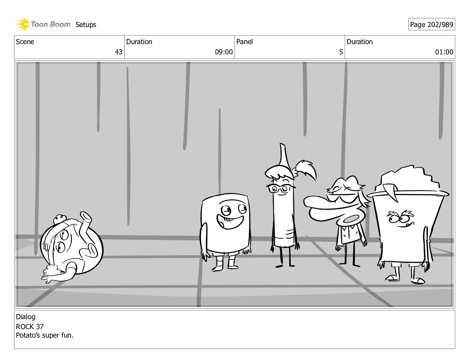 Scene 177 Duration 05:00 Panel 3 Duration 01:00 Dialog POTATO
