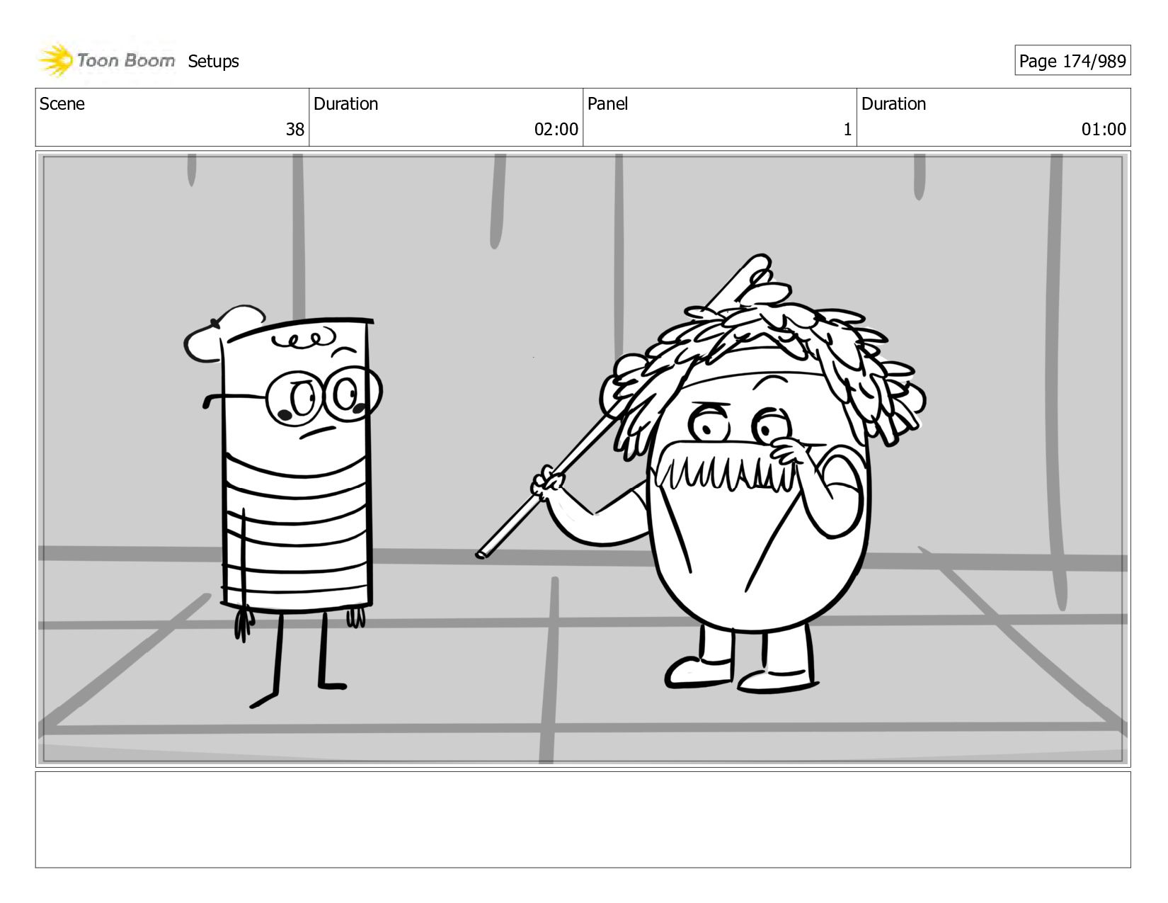 Scene 184 Duration 02:00 Panel 1 Duration 01:00 Setups Page