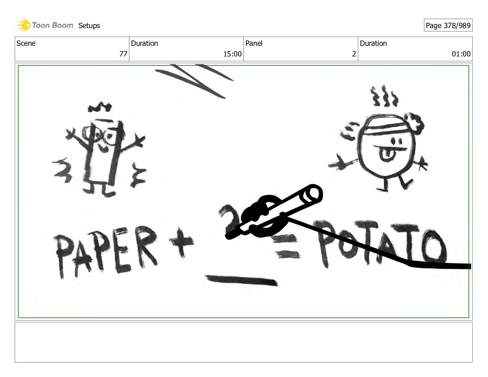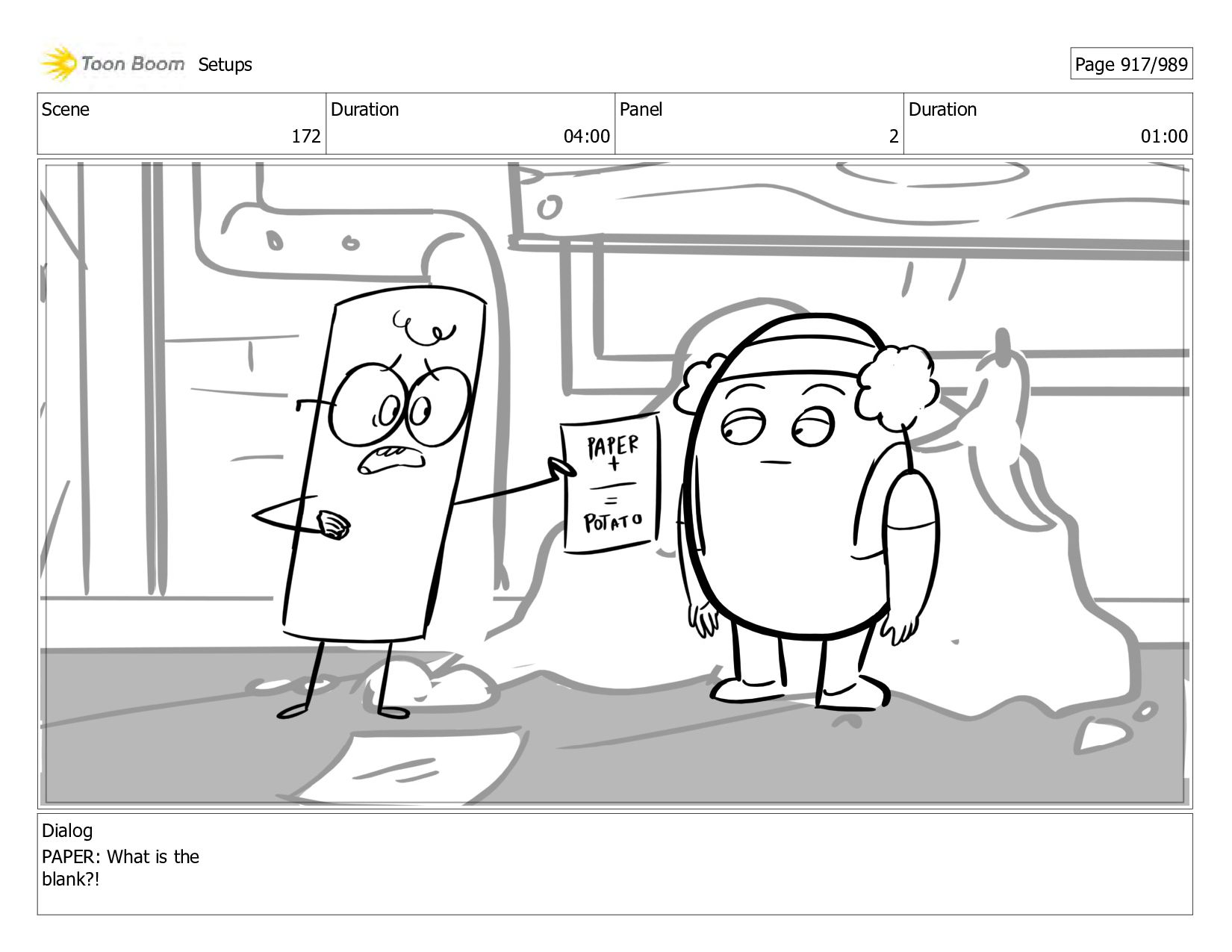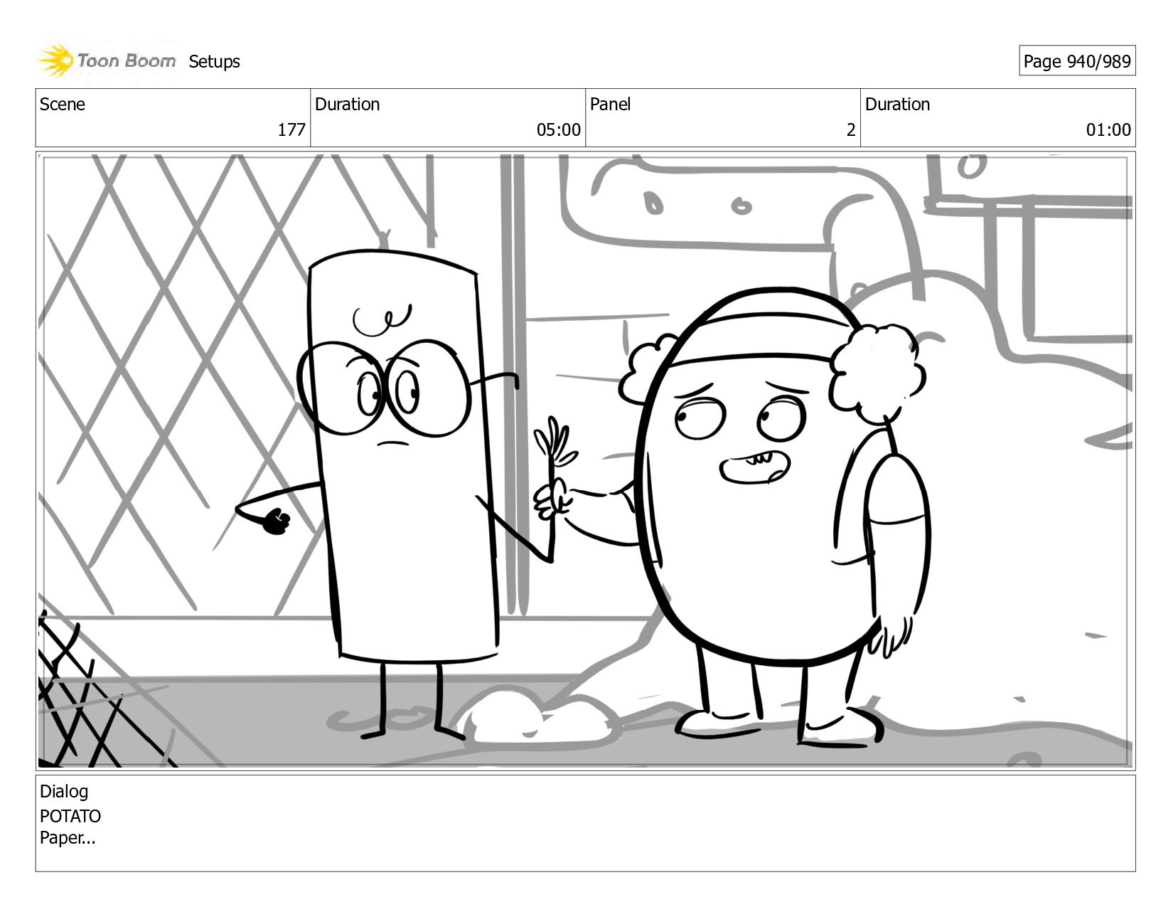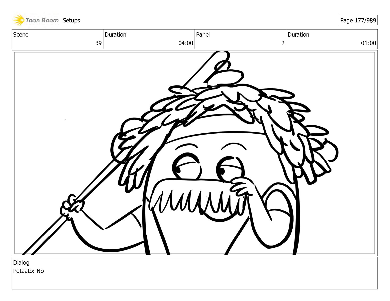 Scene 177 Duration 05:00 Panel 2 Duration 01:00 Dialog POTATO