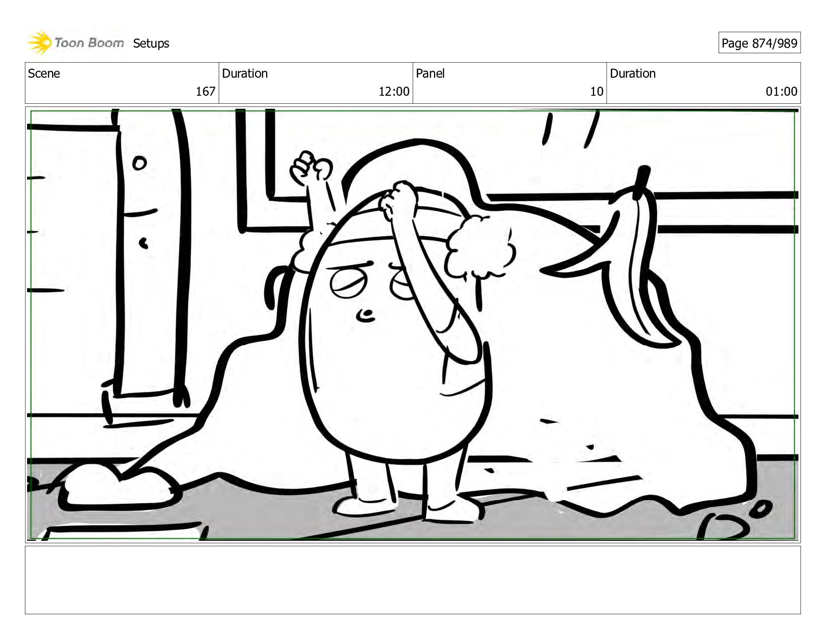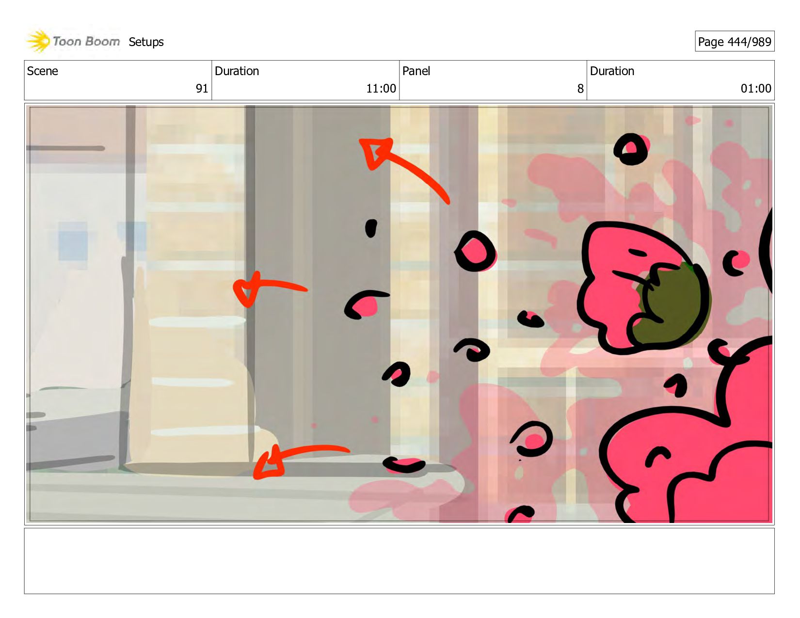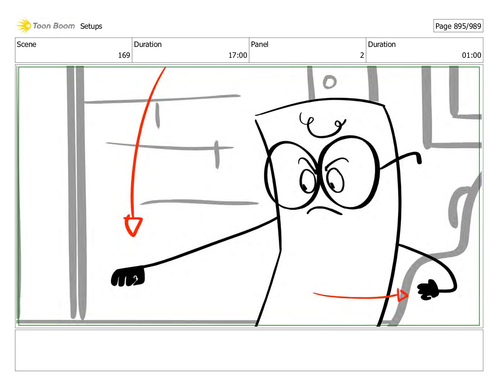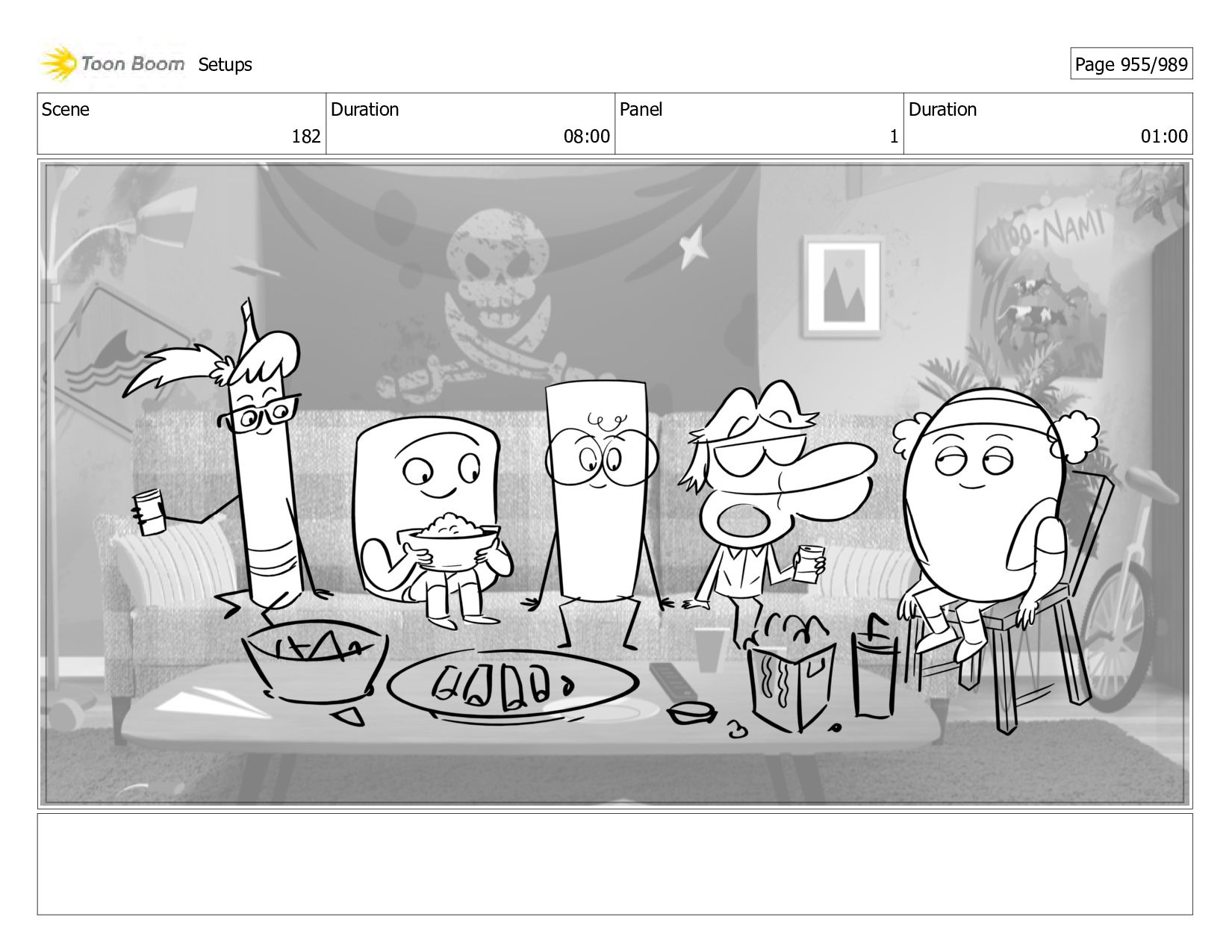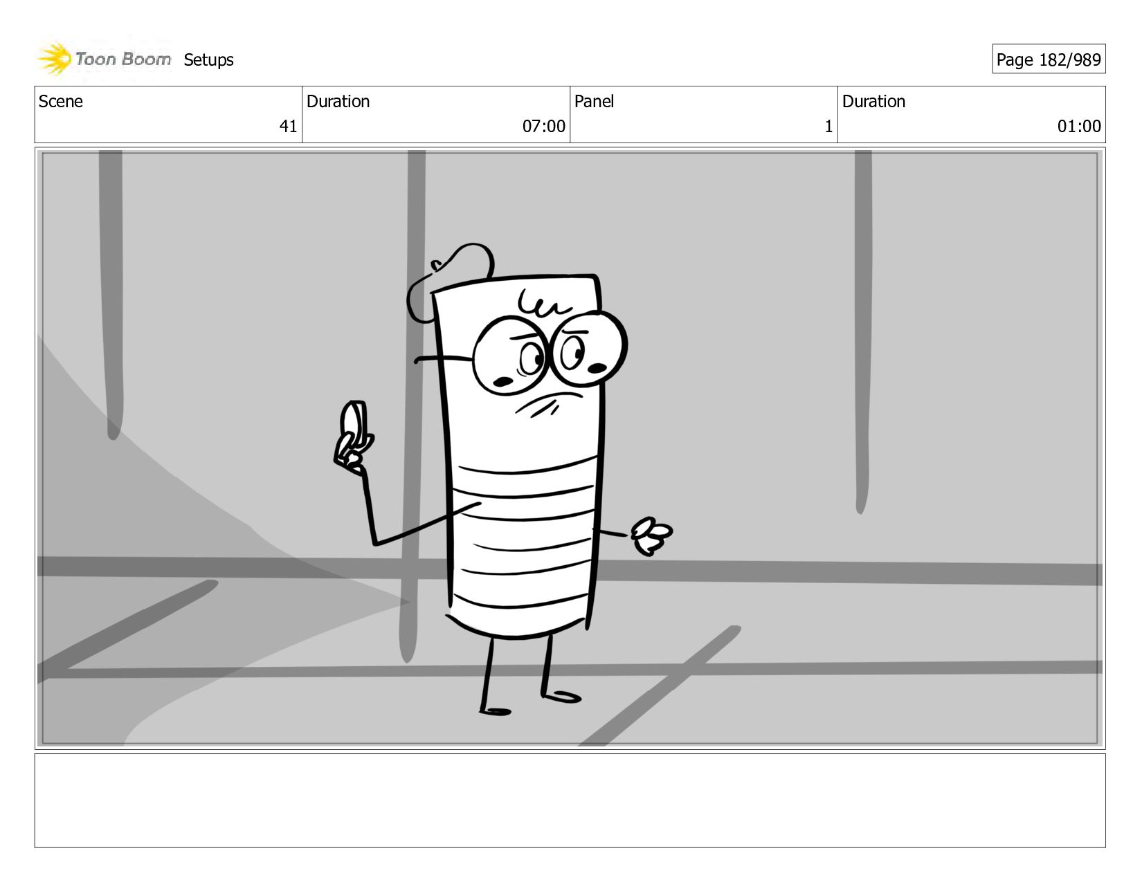 Scene 182 Duration 08:00 Panel 1 Duration 01:00 Setups Page