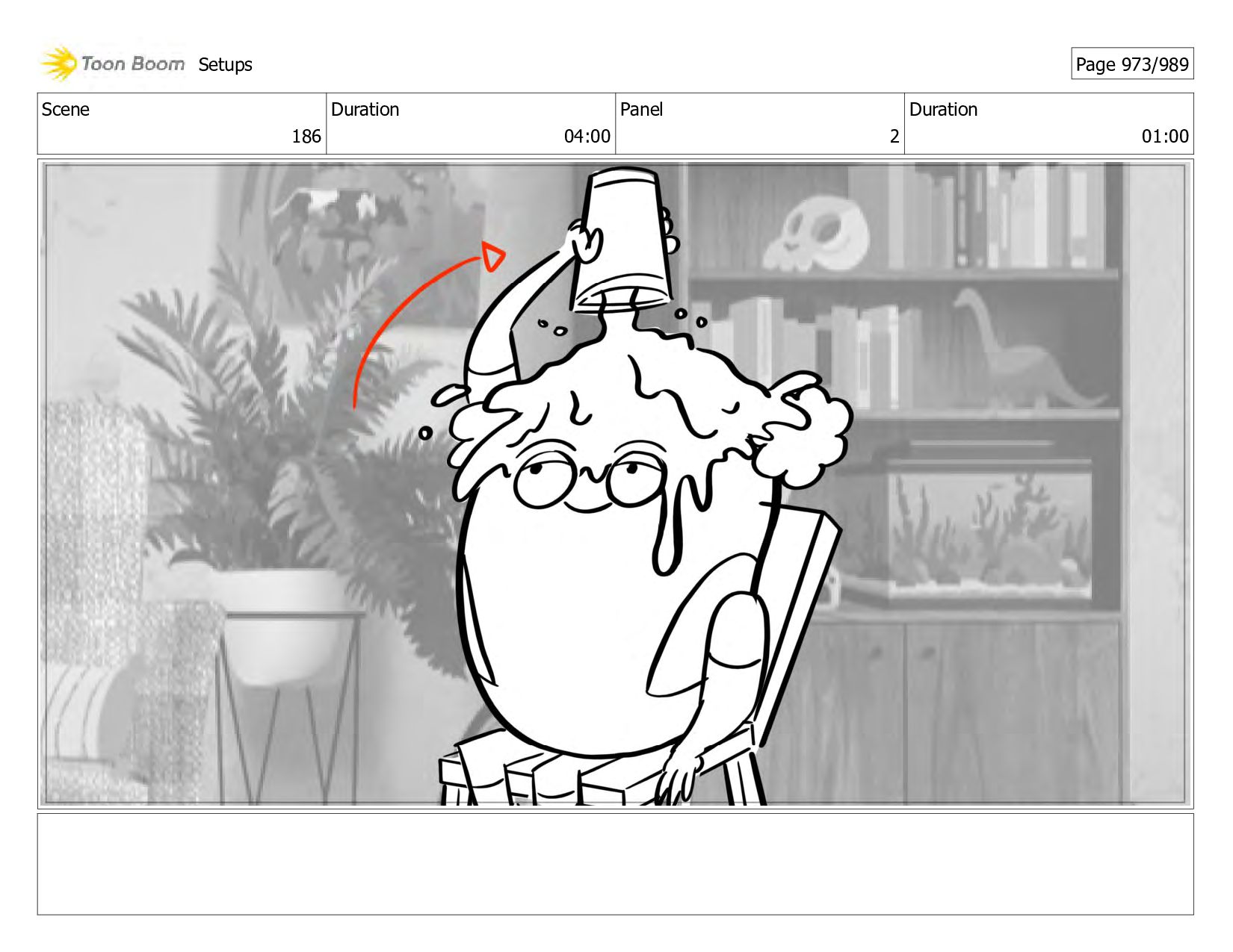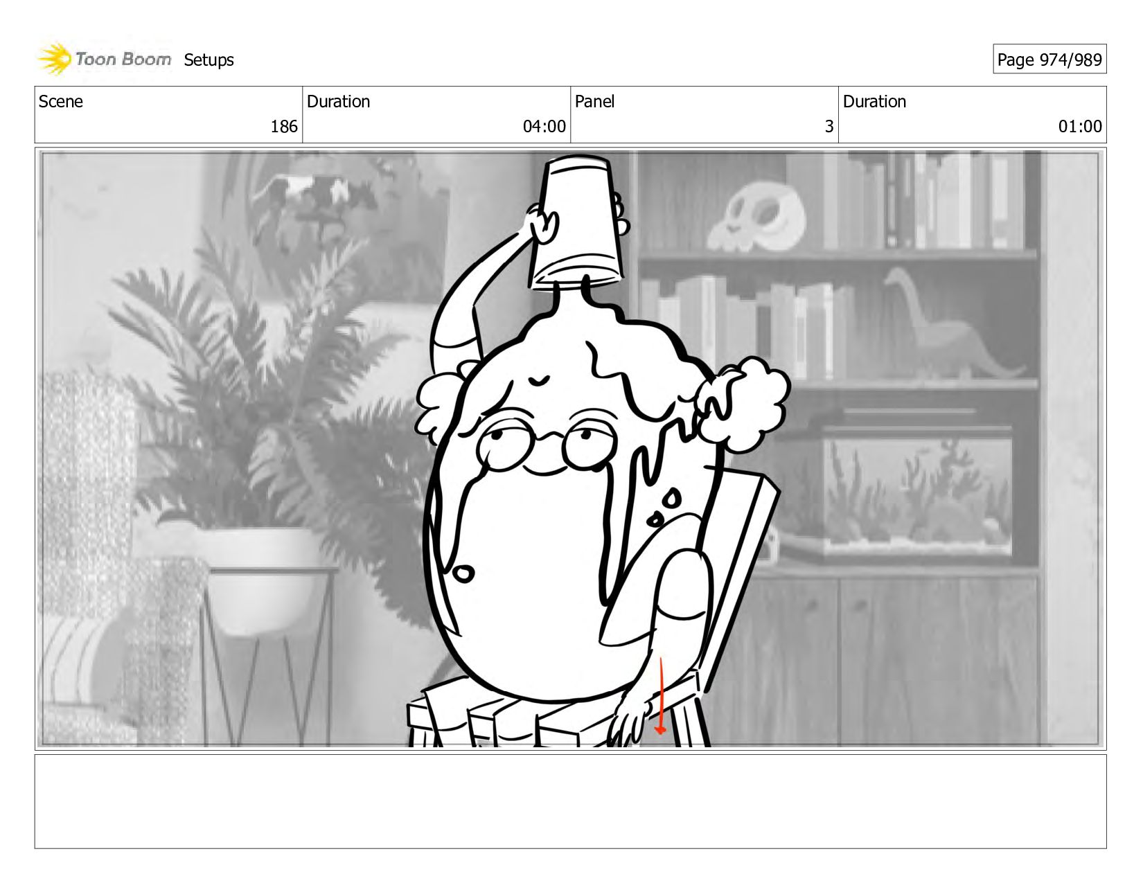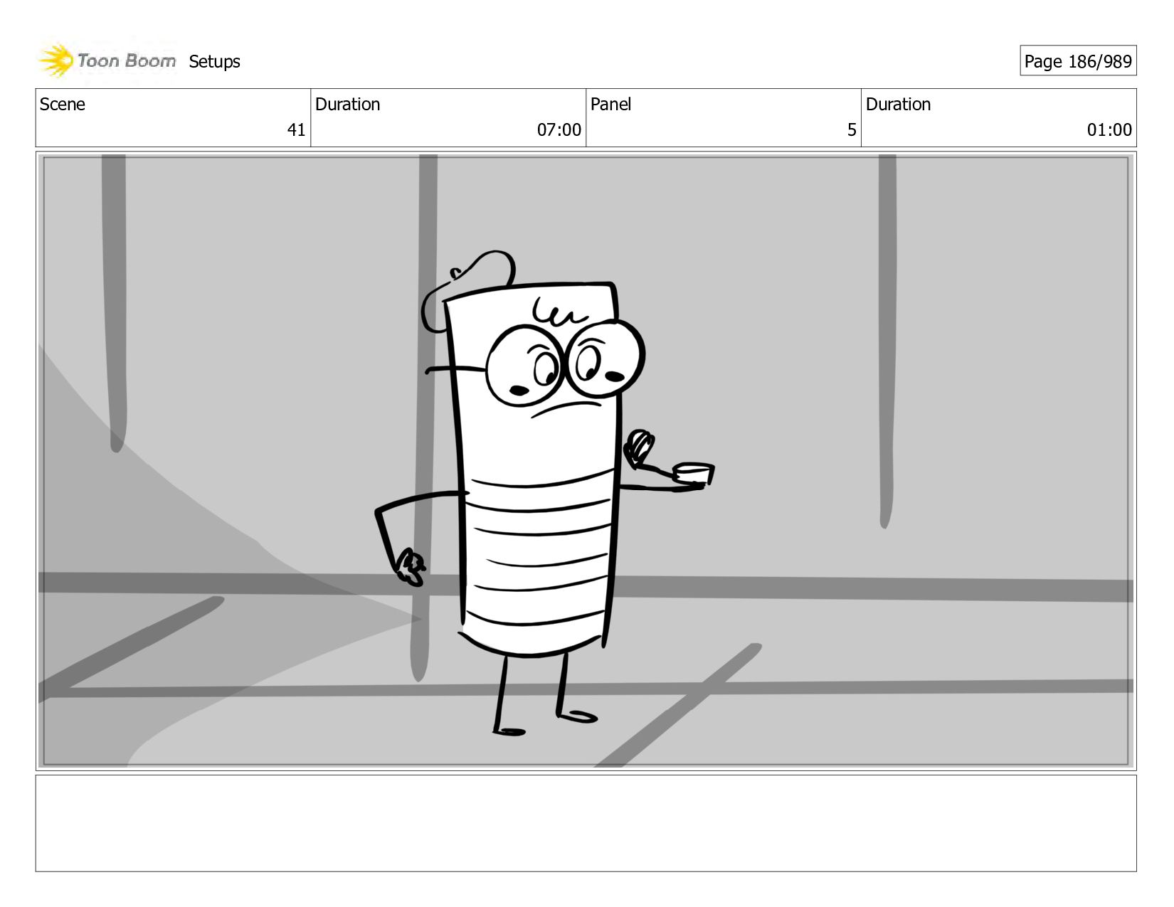Scene 186 Duration 04:00 Panel 1 Duration 01:00 Setups Page