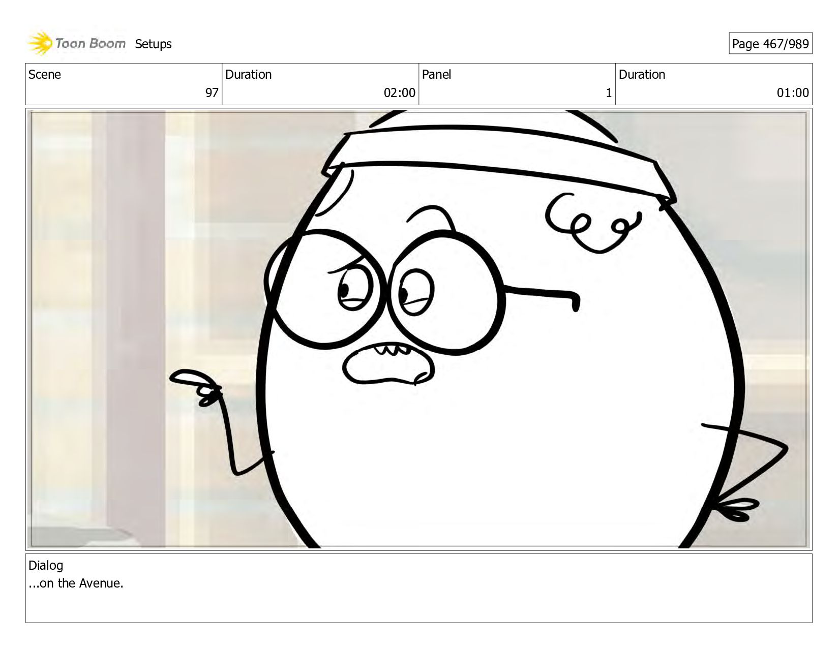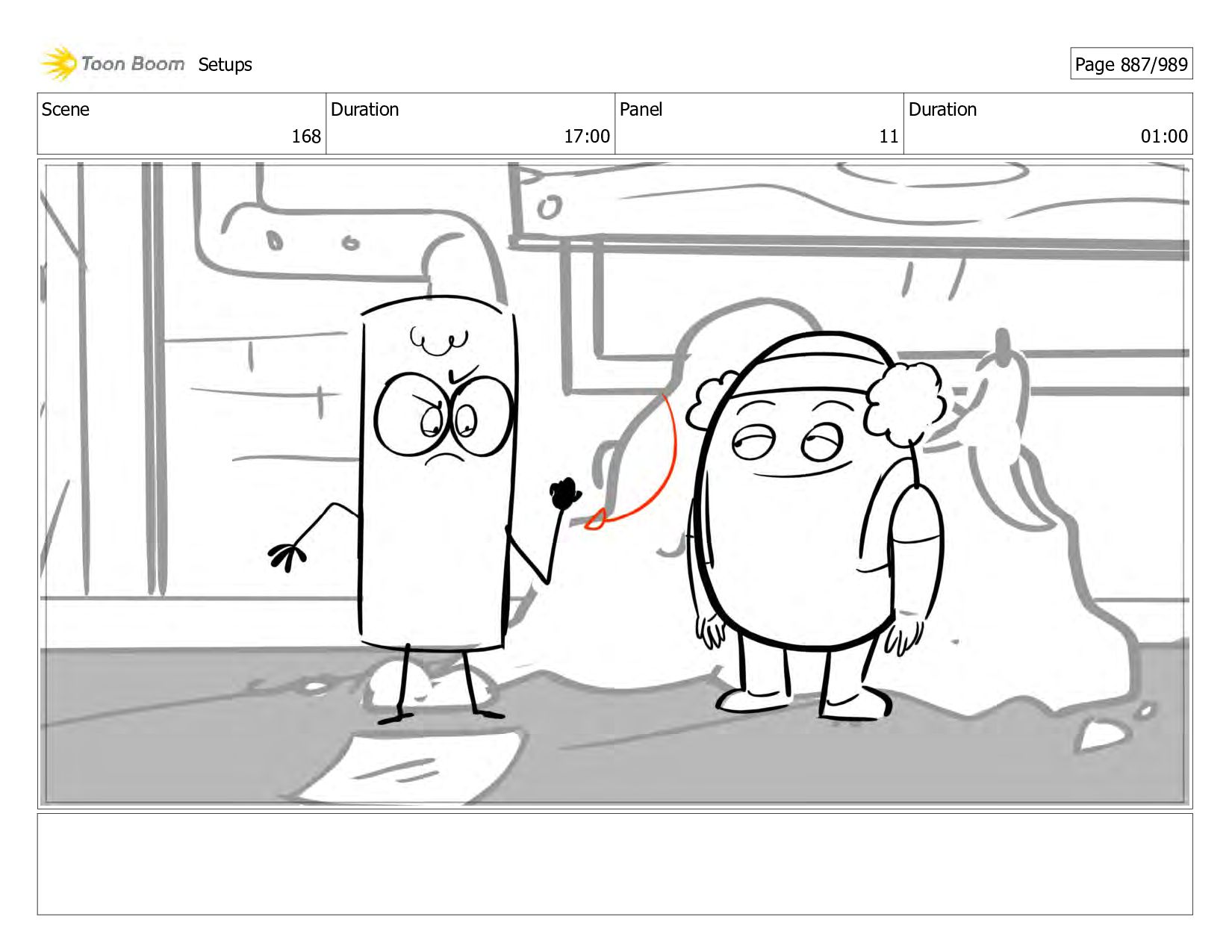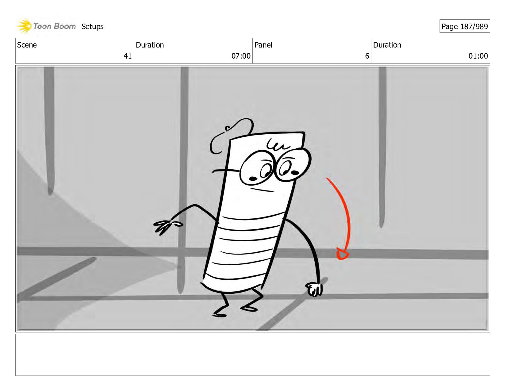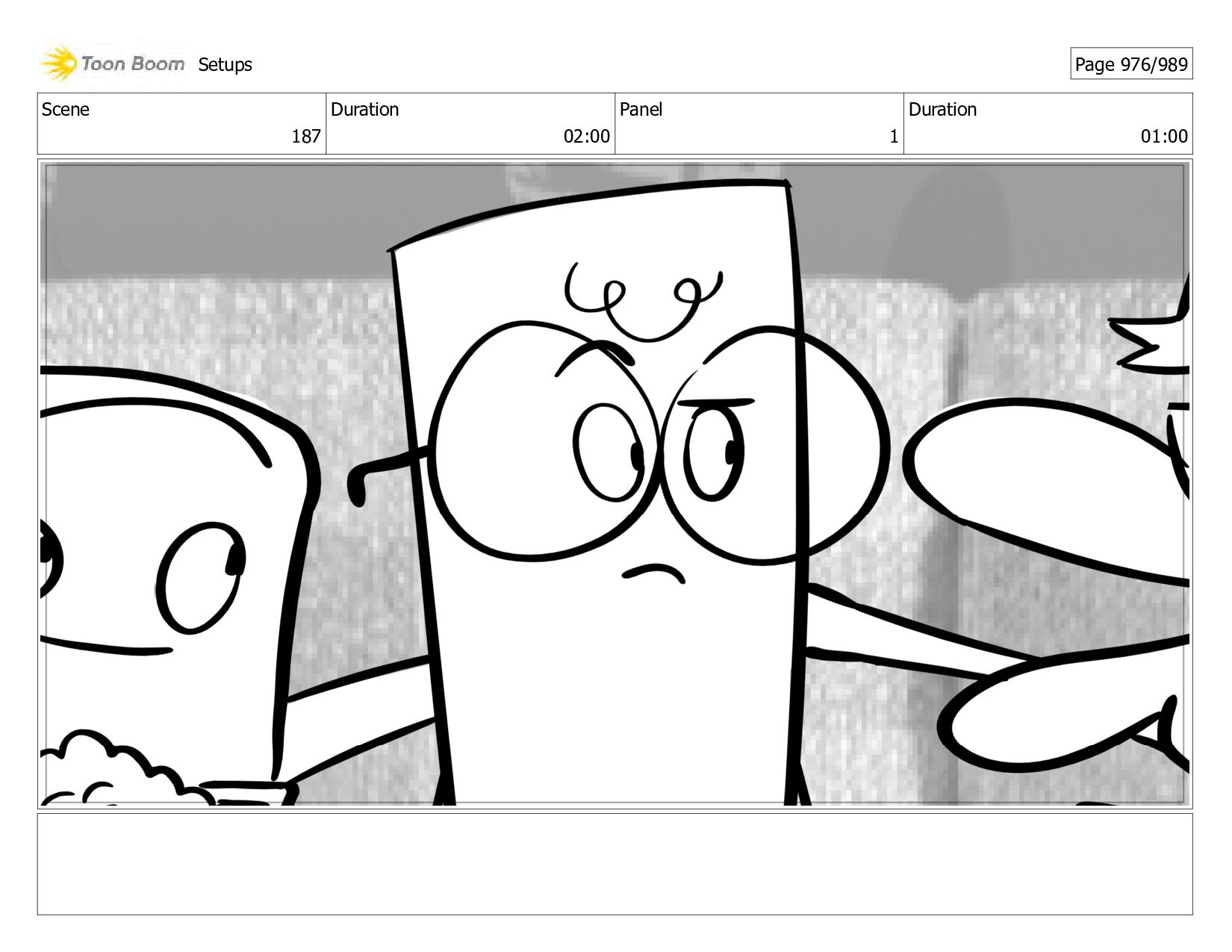 Scene 187 Duration 02:00 Panel 1 Duration 01:00 Setups Page