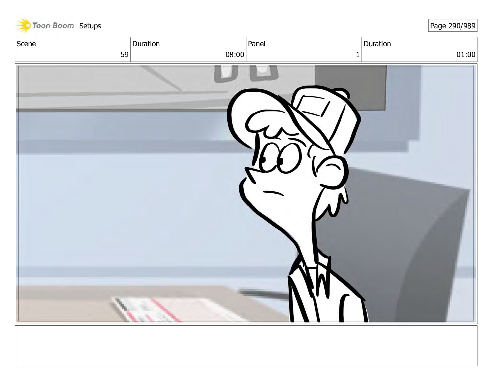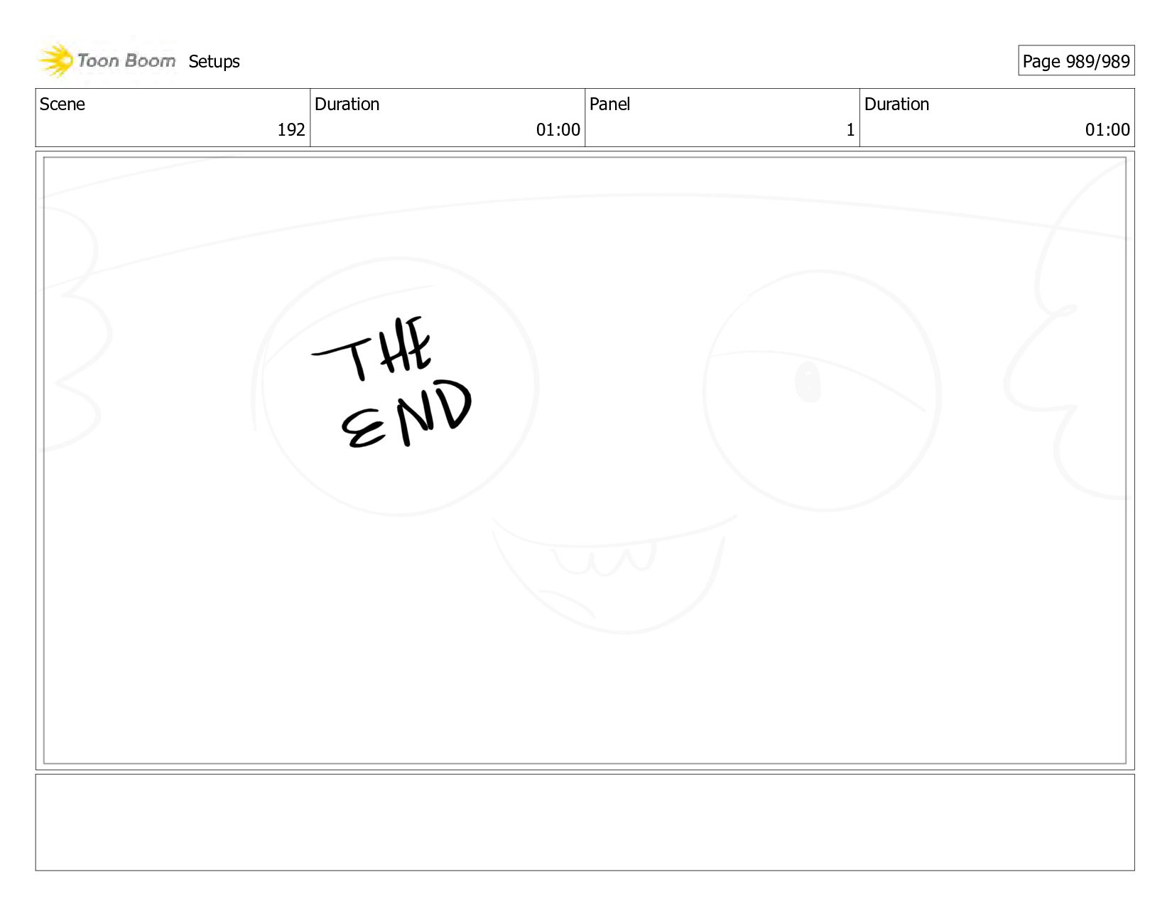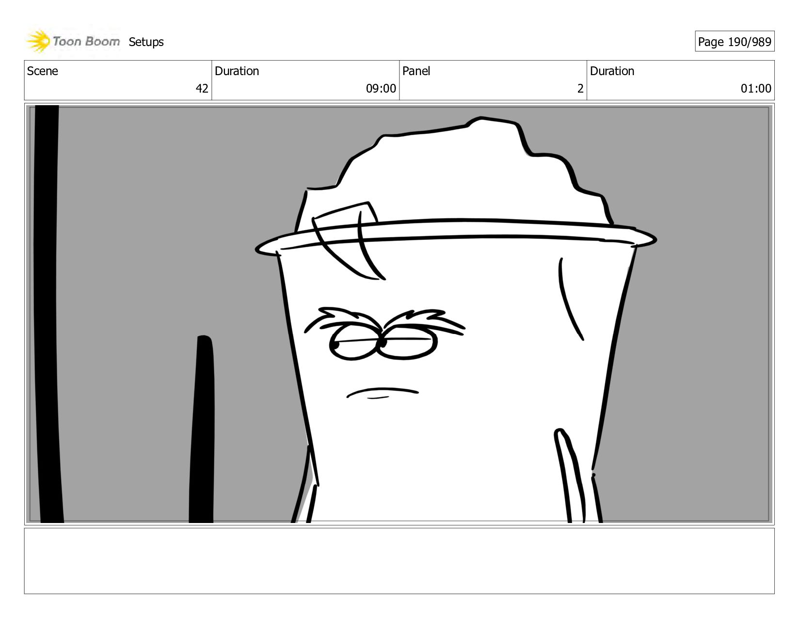 Scene 190 Duration 01:00 Panel 1 Duration 01:00 Setups Page