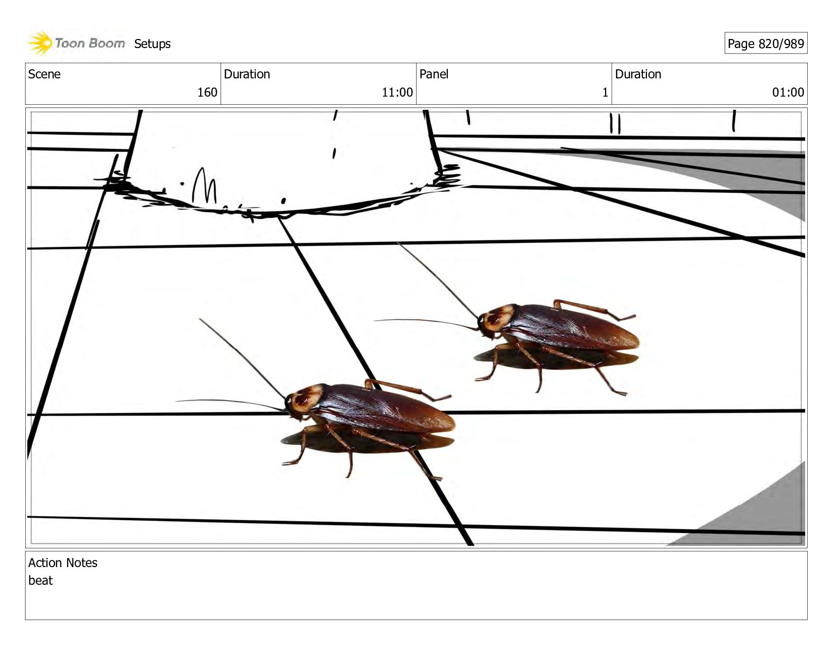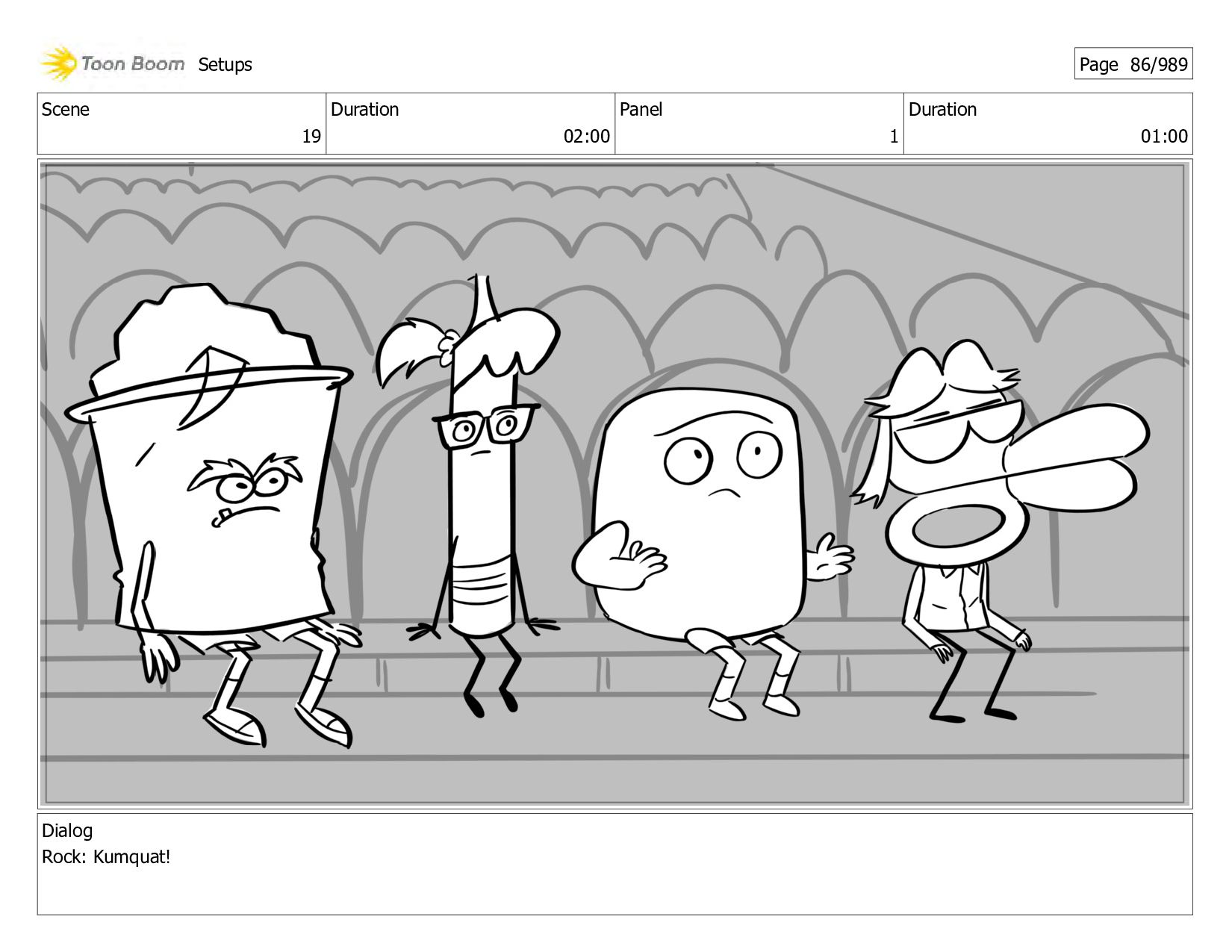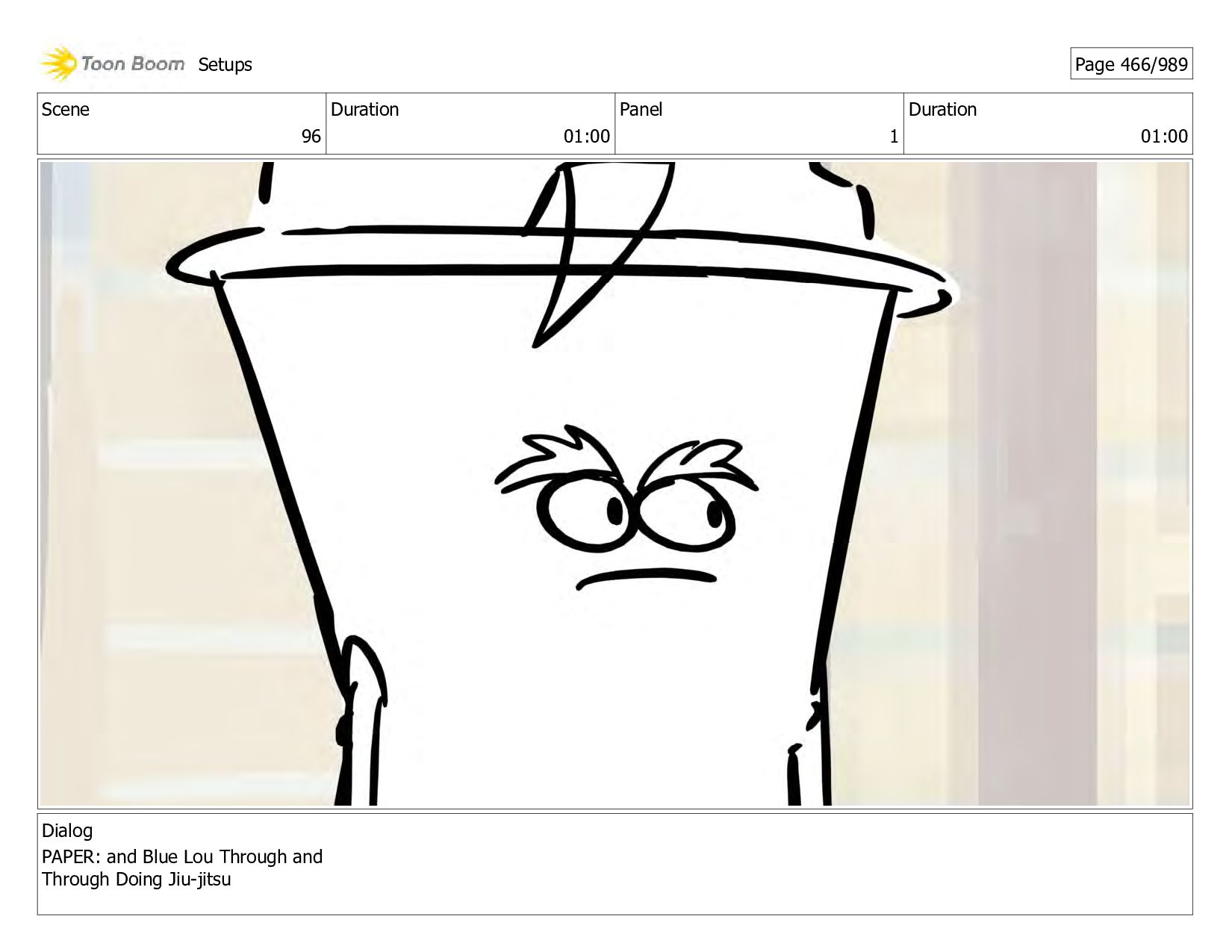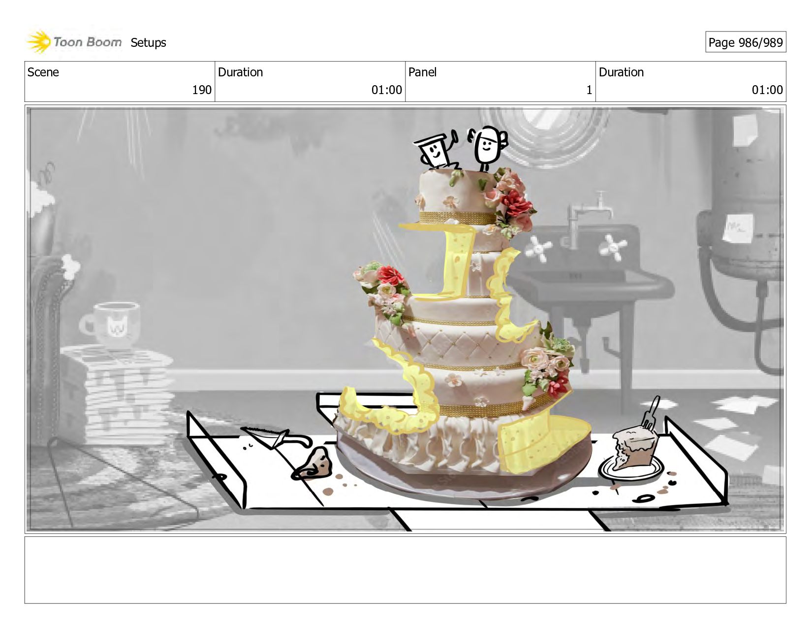 Scene 190 Duration 01:00 Panel 1 Duration 01:00 Setups Page