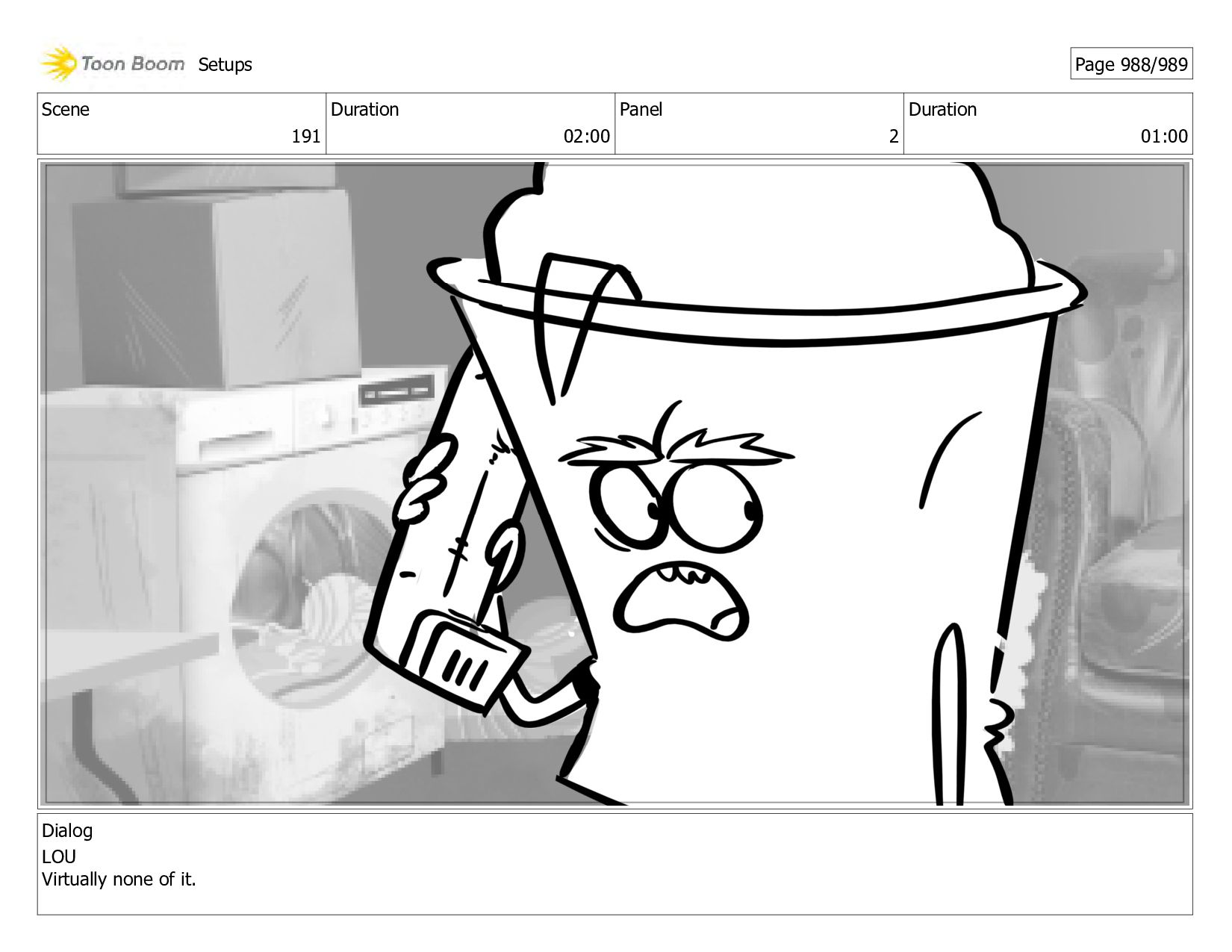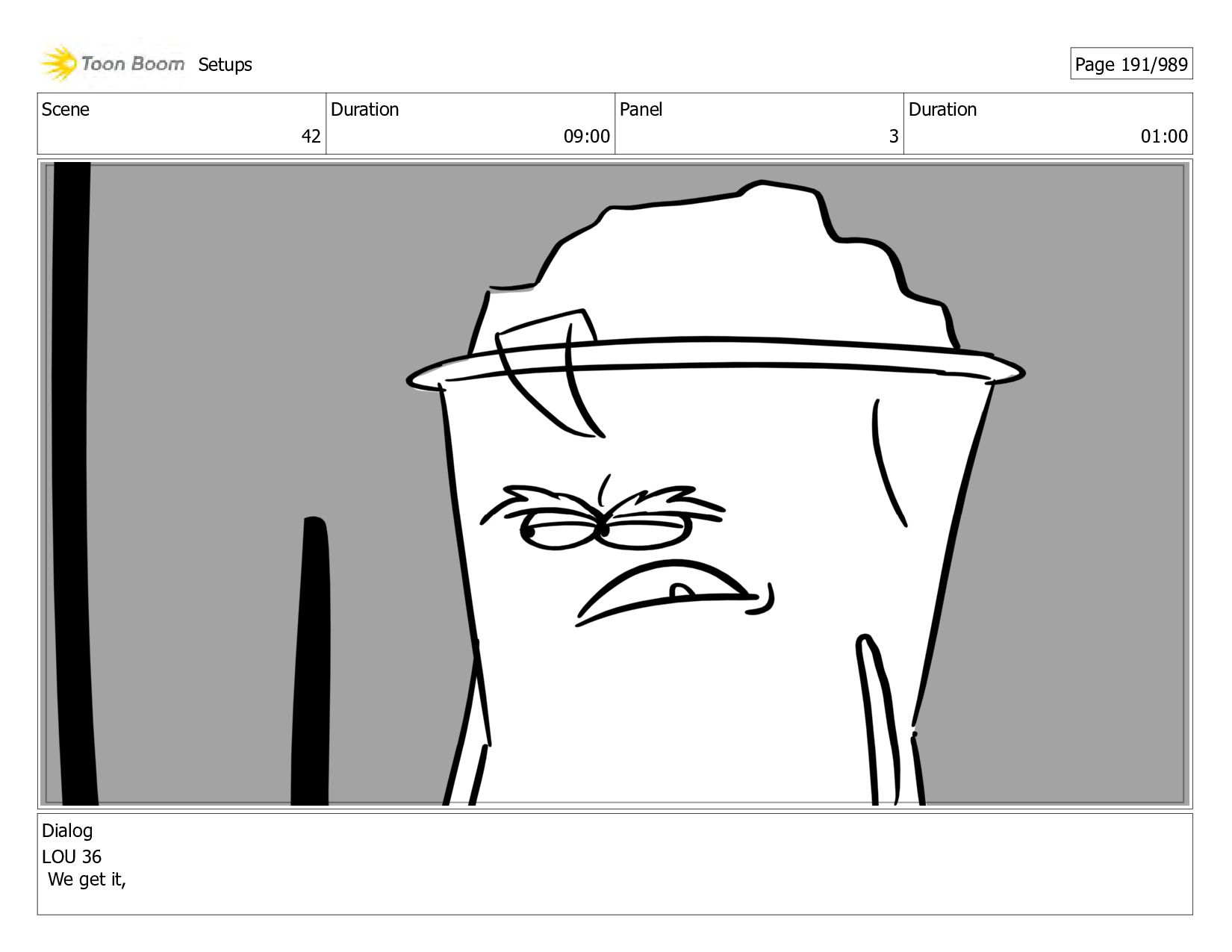 Scene 191 Duration 02:00 Panel 2 Duration 01:00 Dialog LOU