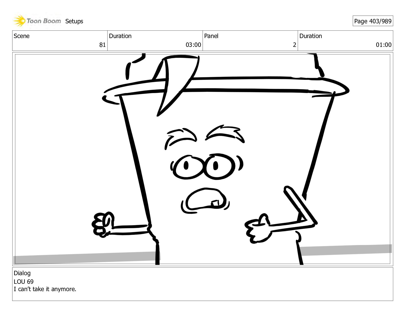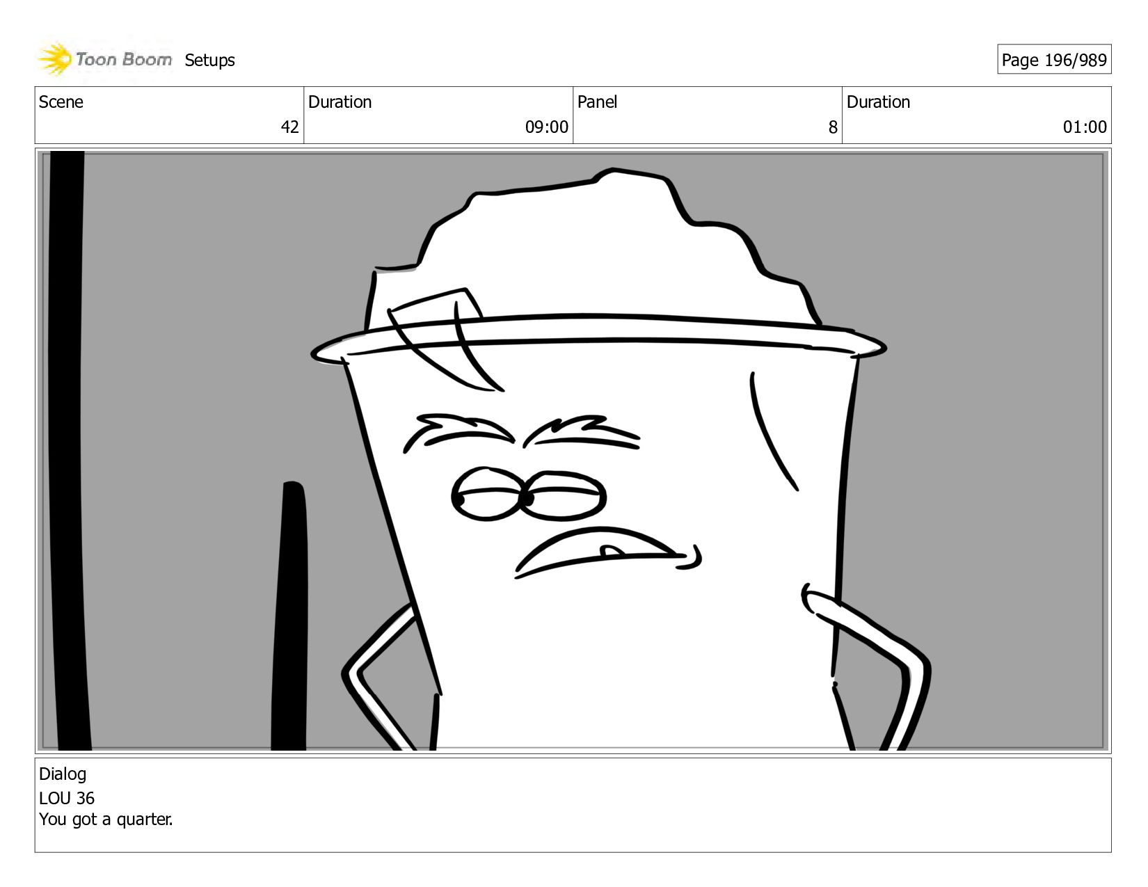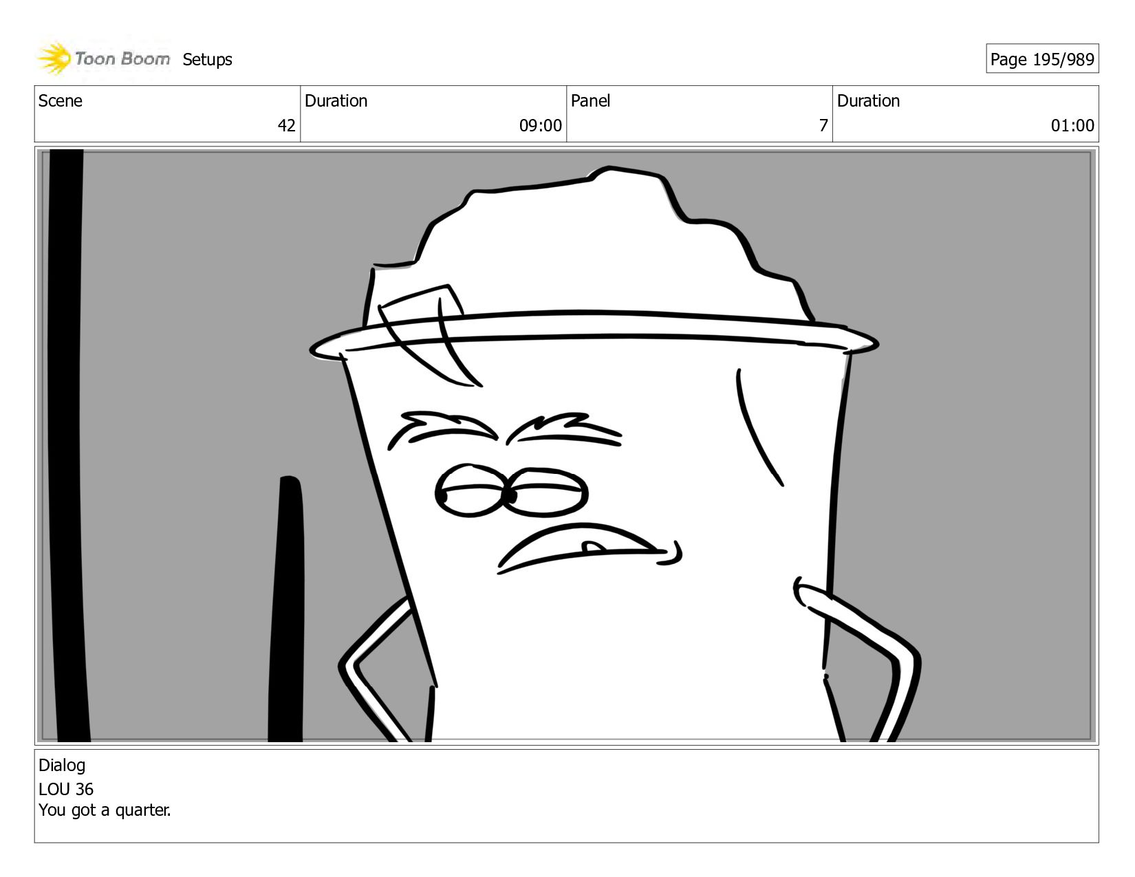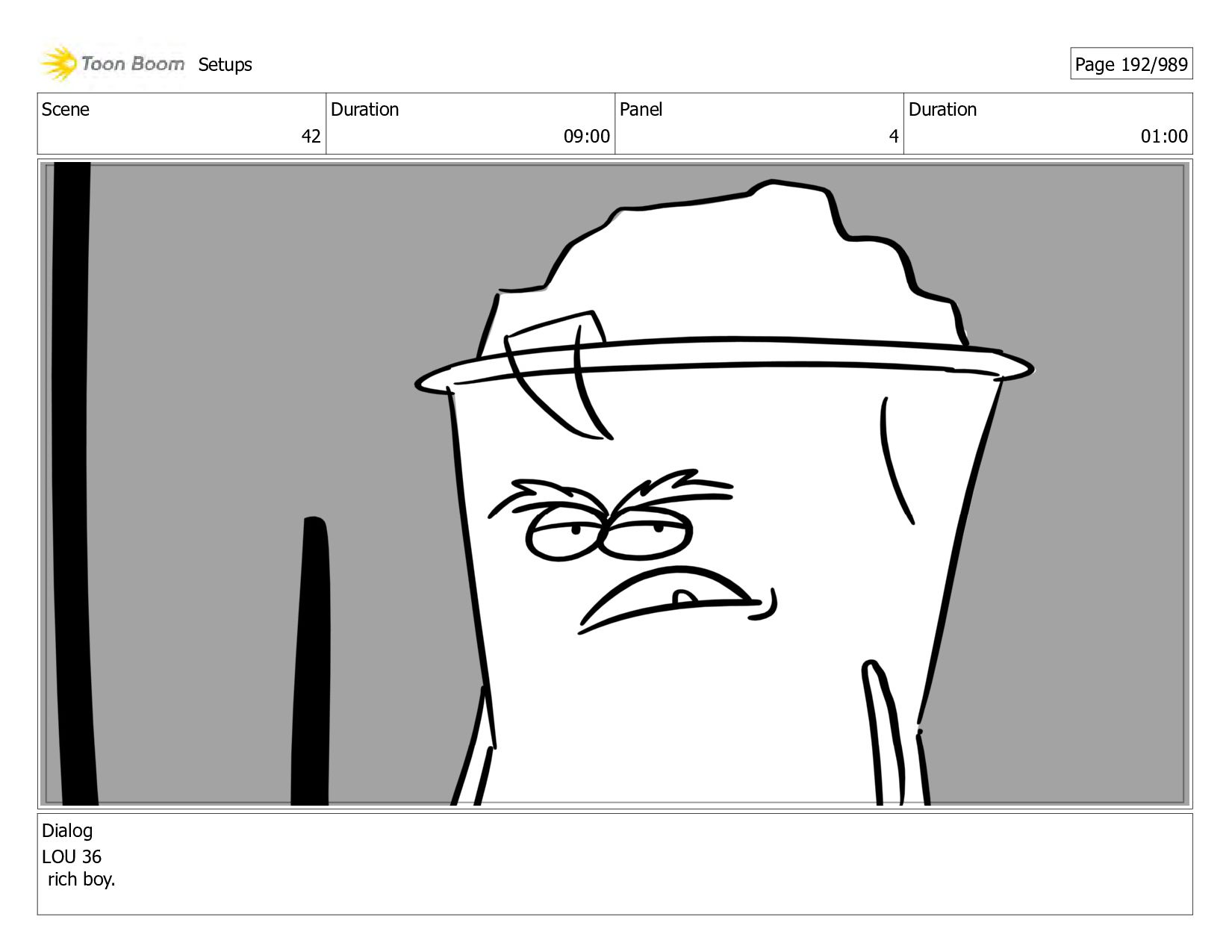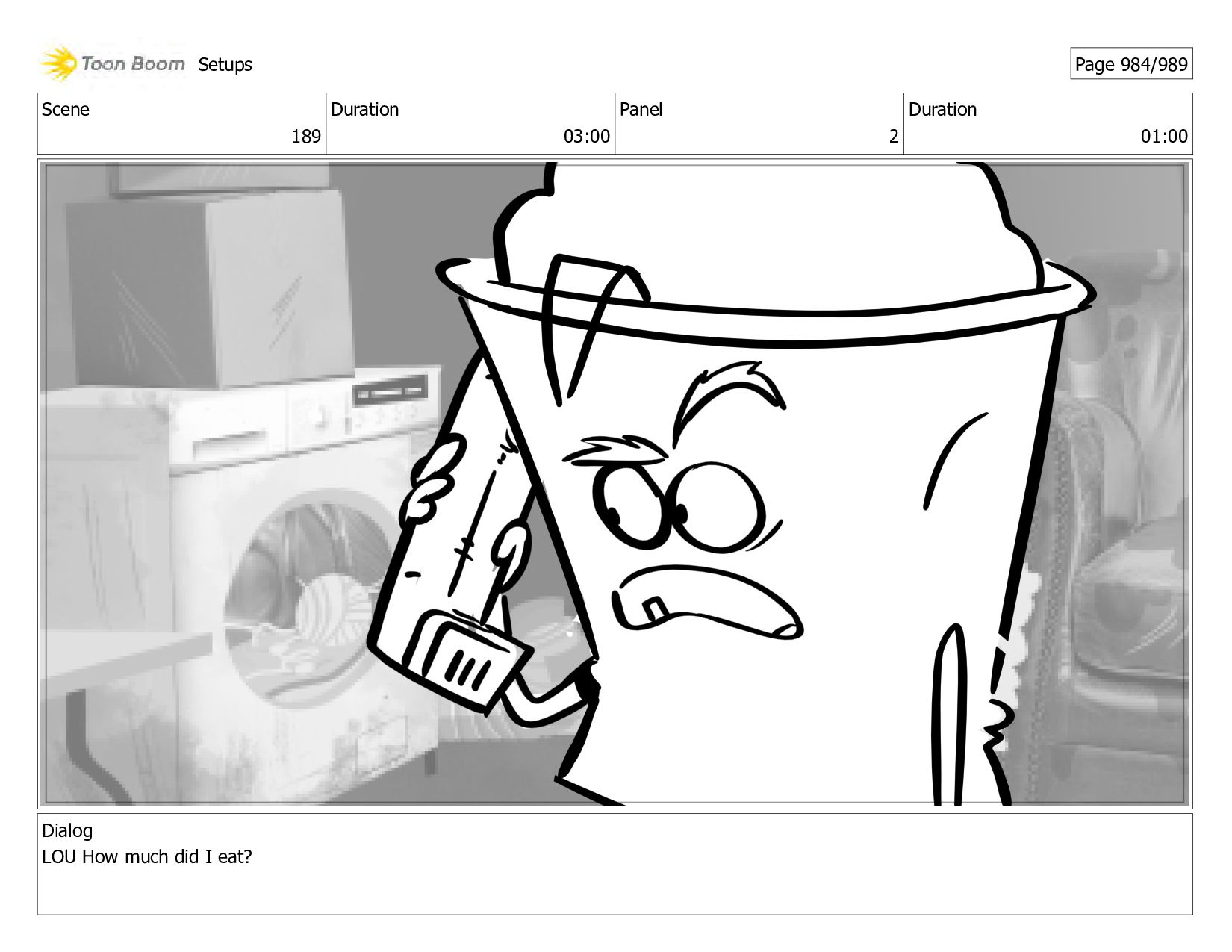 Scene 189 Duration 03:00 Panel 2 Duration 01:00 Dialog LOU