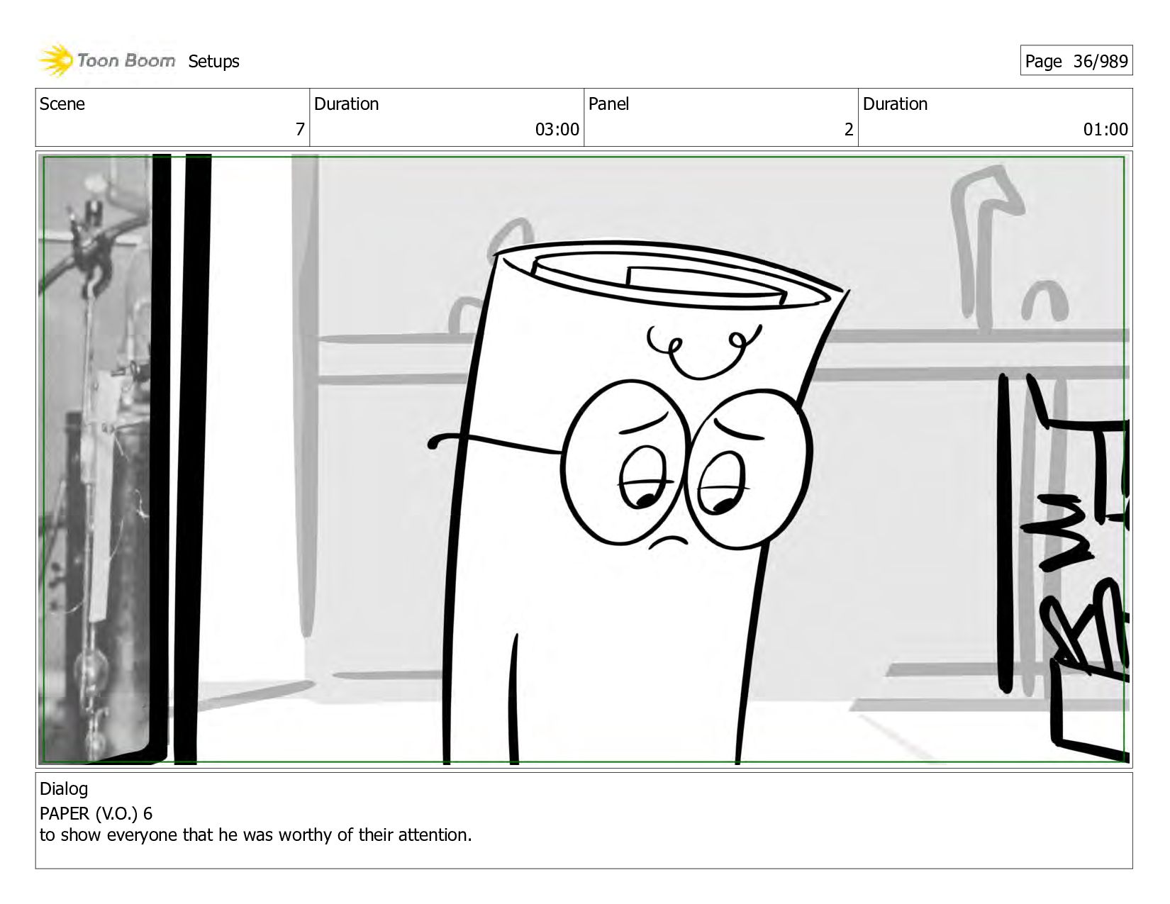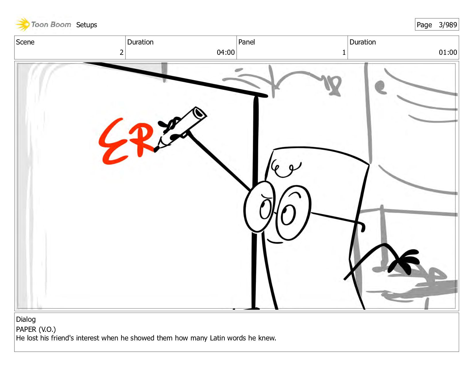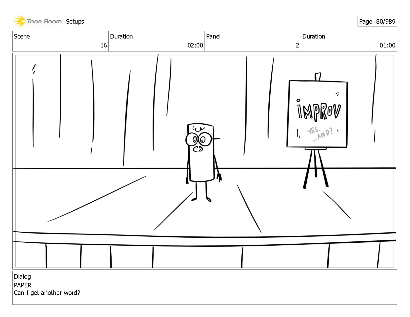 Scene 2 Duration 04:00 Panel 1 Duration 01:00 Dialog PAPER