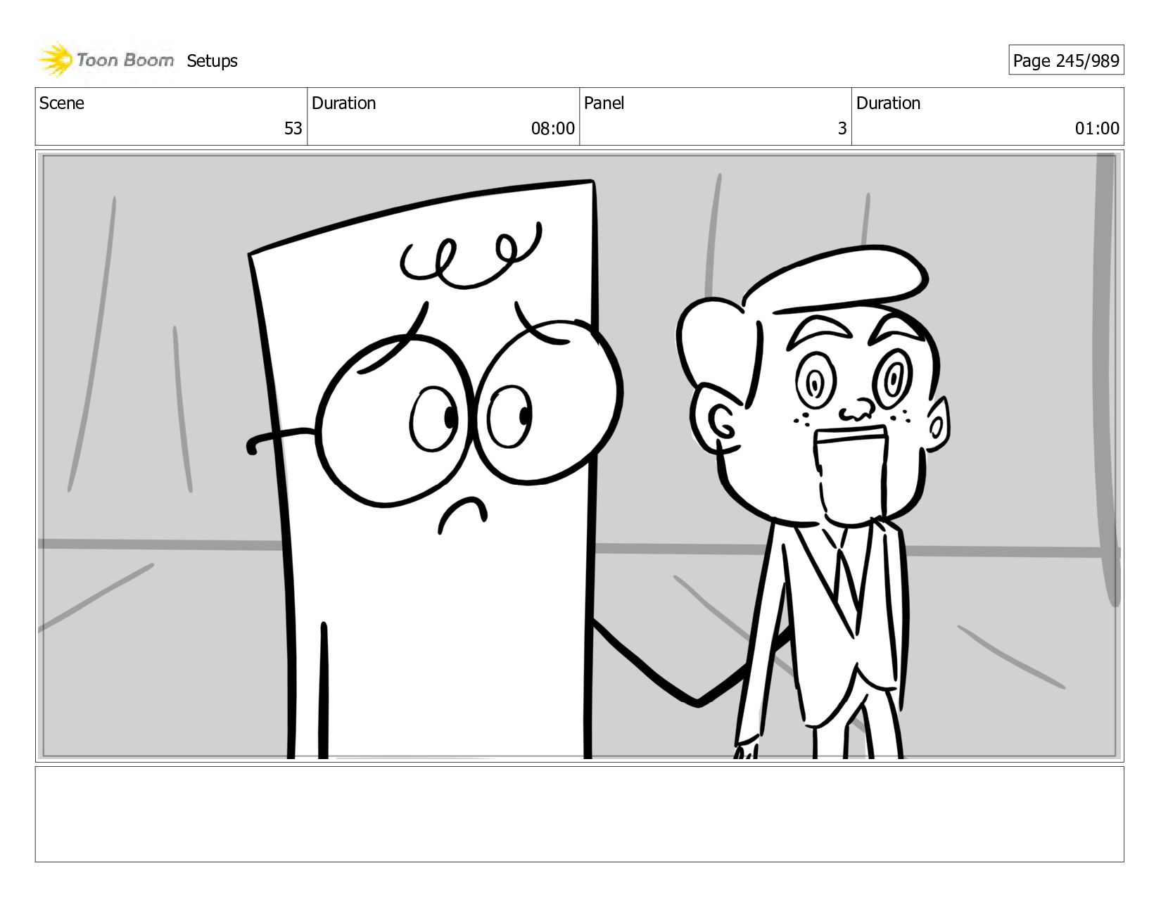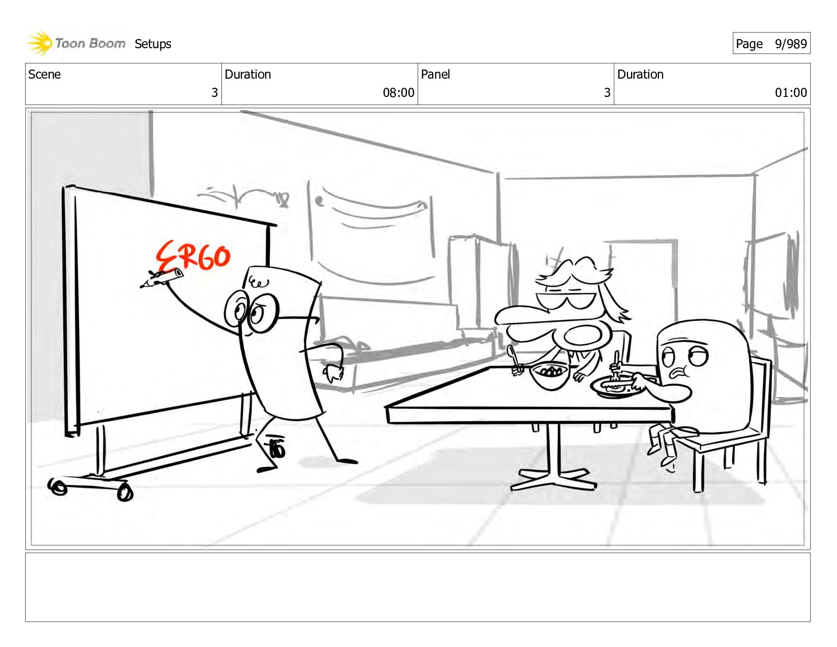 Scene 3 Duration 08:00 Panel 3 Duration 01:00 Setups Page