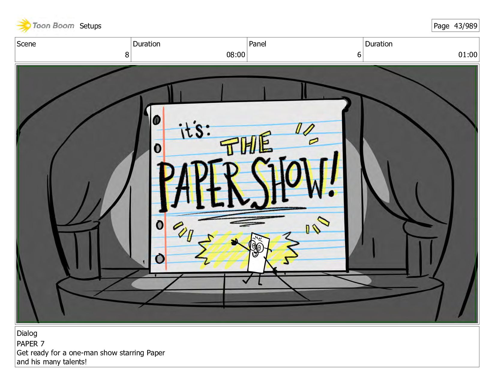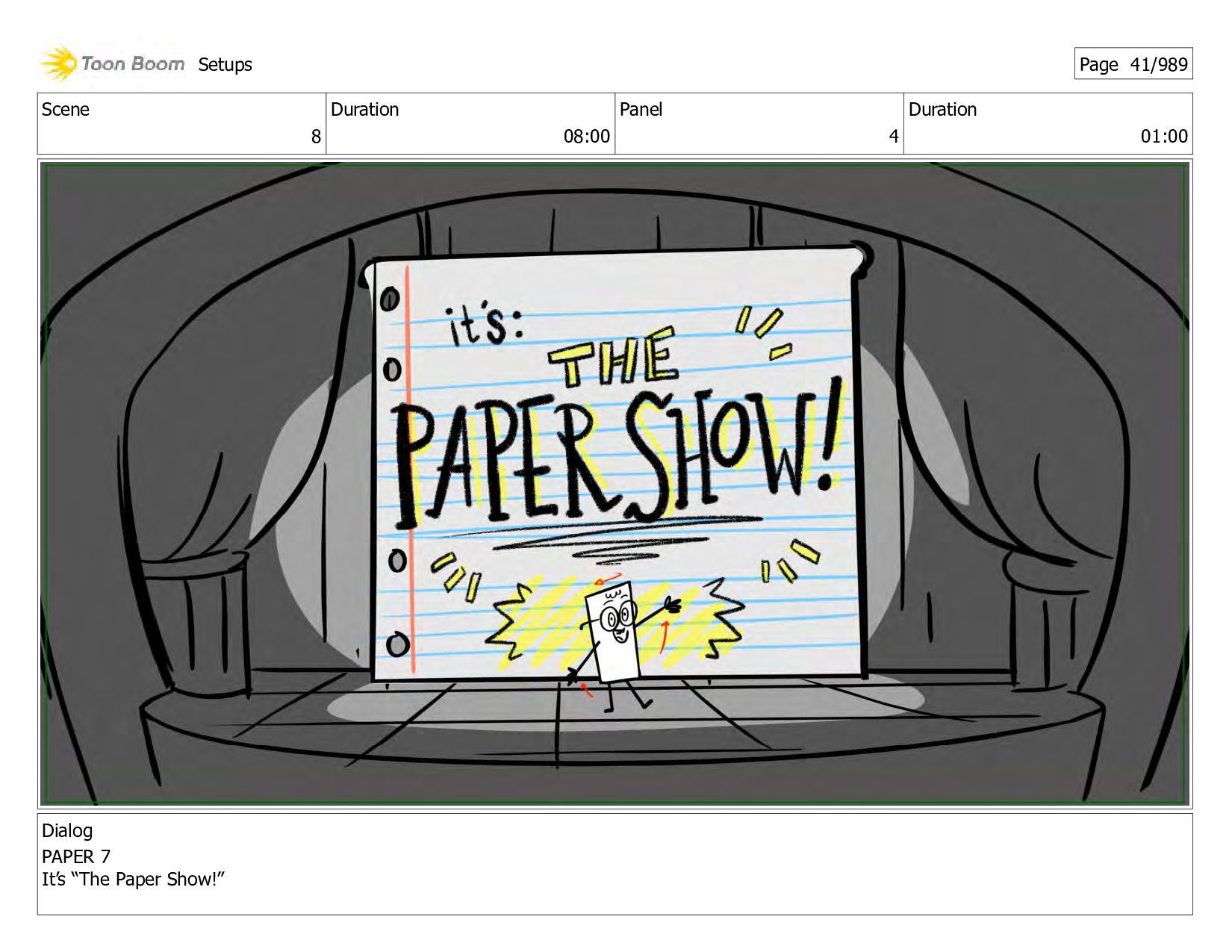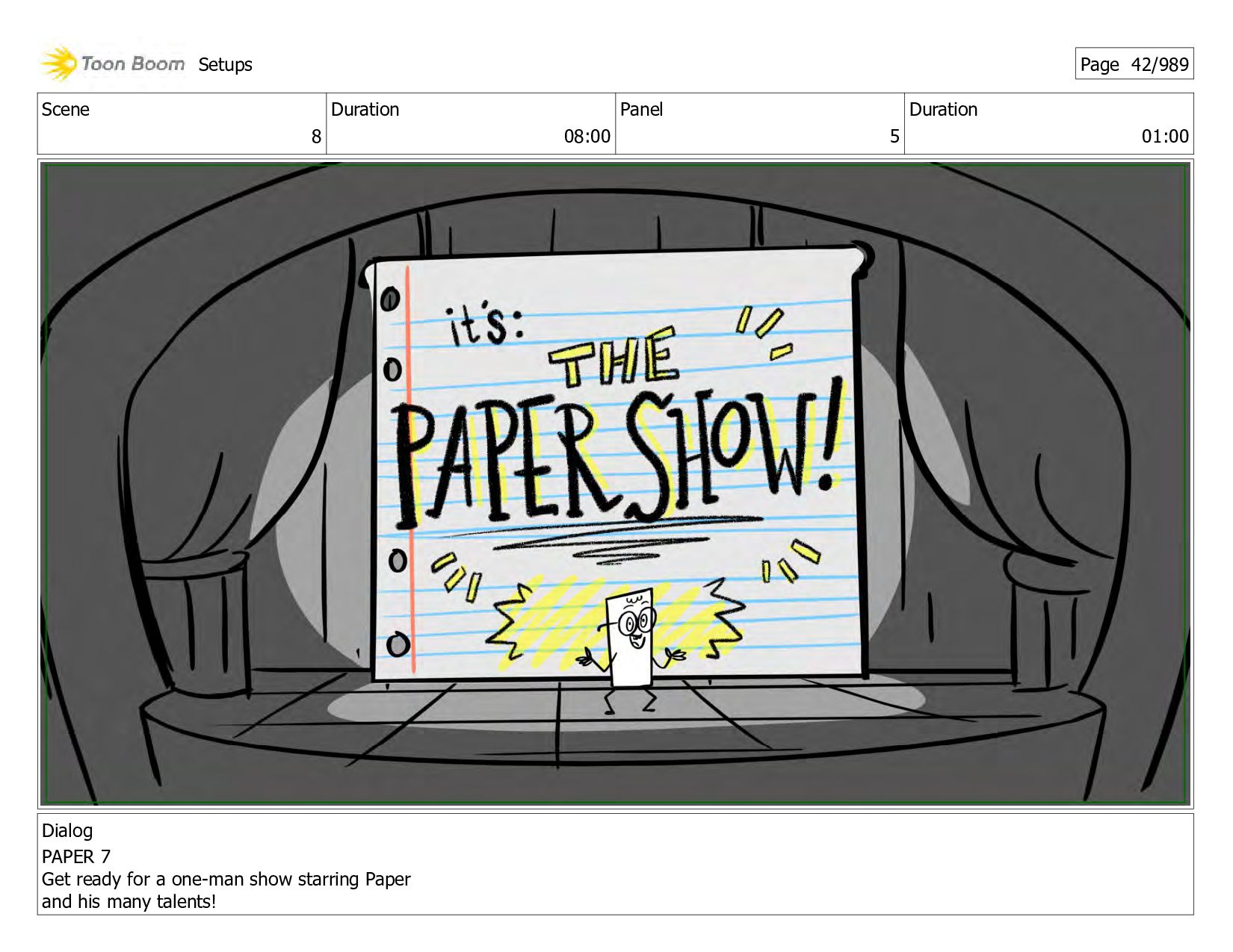 Scene 5 Duration 08:00 Panel 1 Duration 01:00 Dialog PAPER