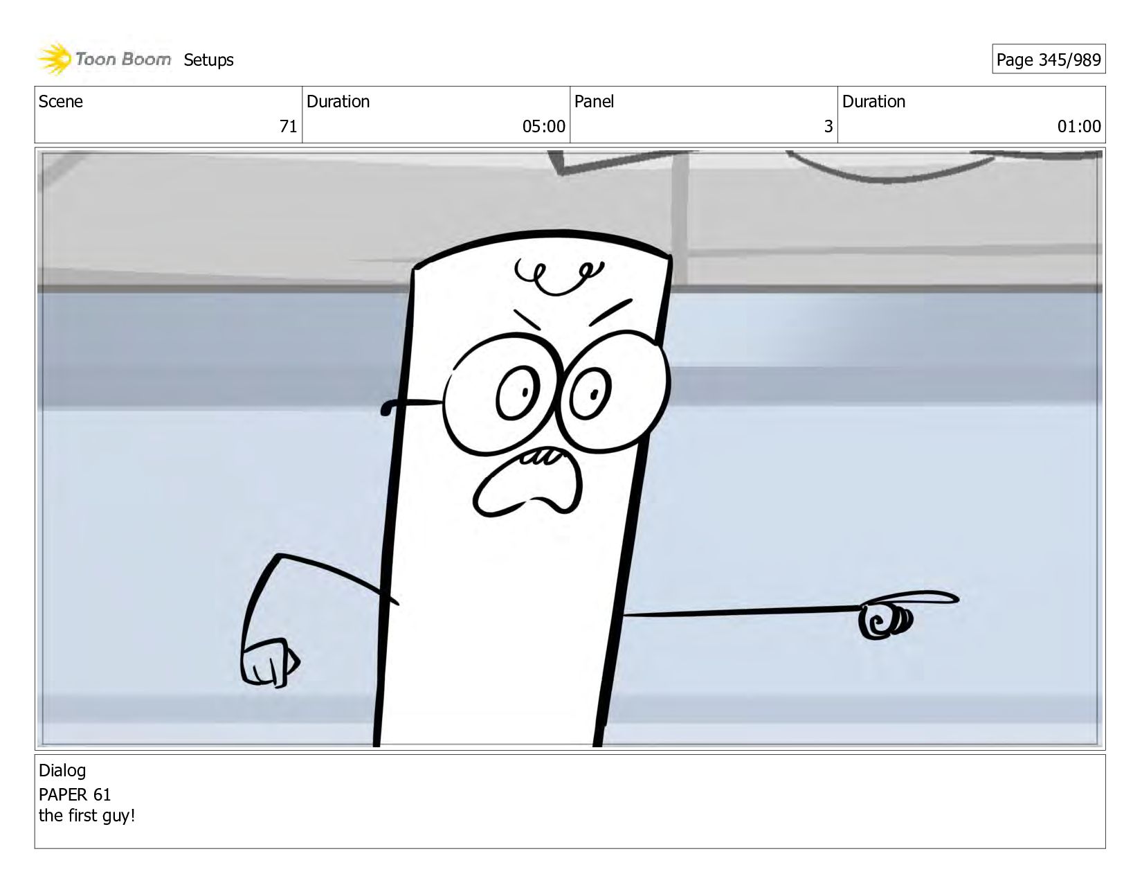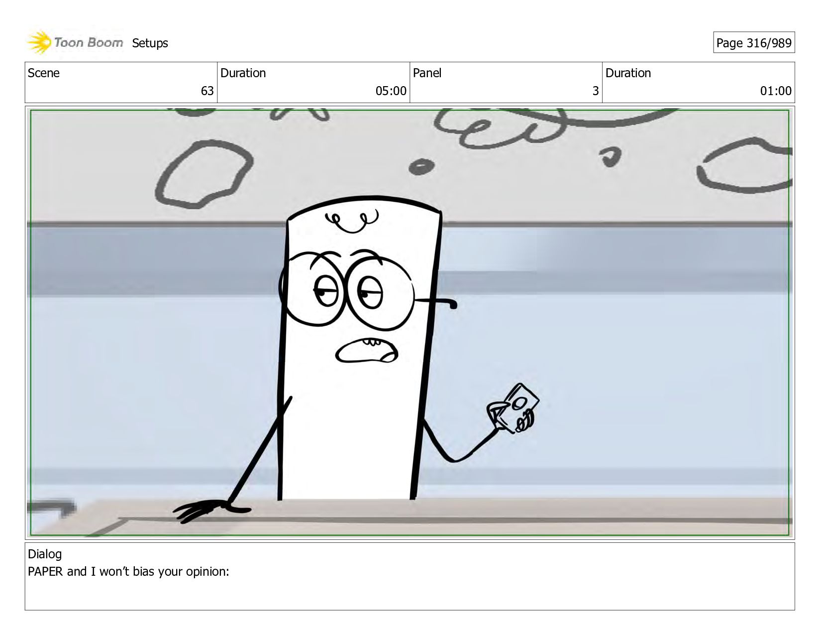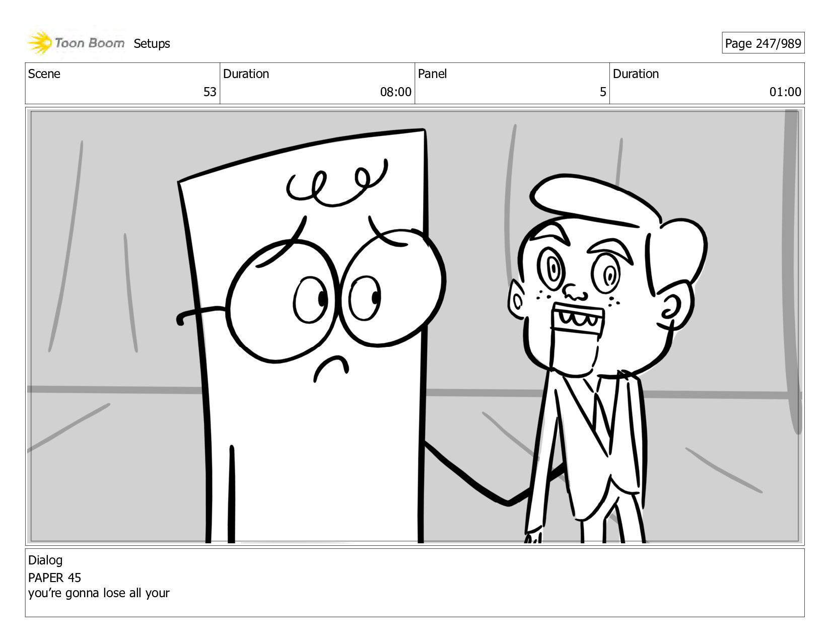 Scene 5 Duration 08:00 Panel 1 Duration 01:00 Dialog PAPER