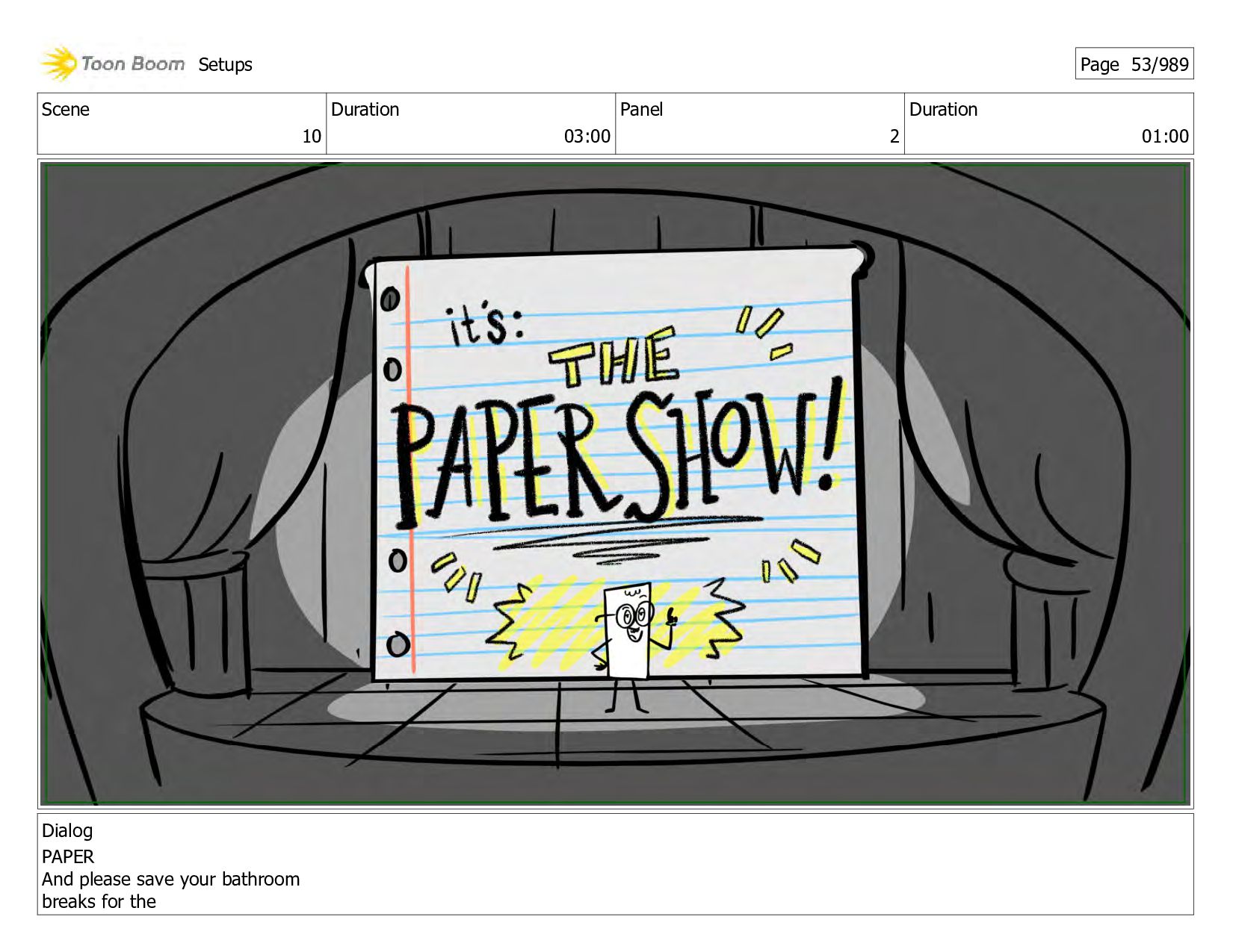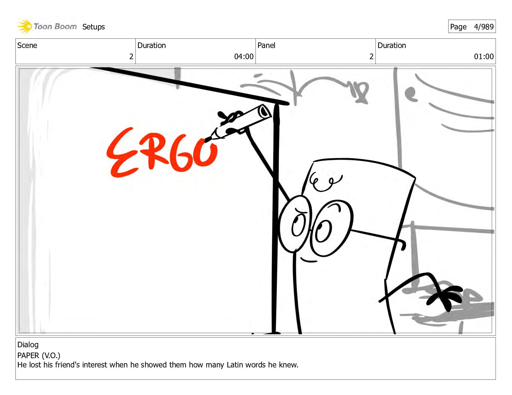 Scene 2 Duration 04:00 Panel 2 Duration 01:00 Dialog PAPER