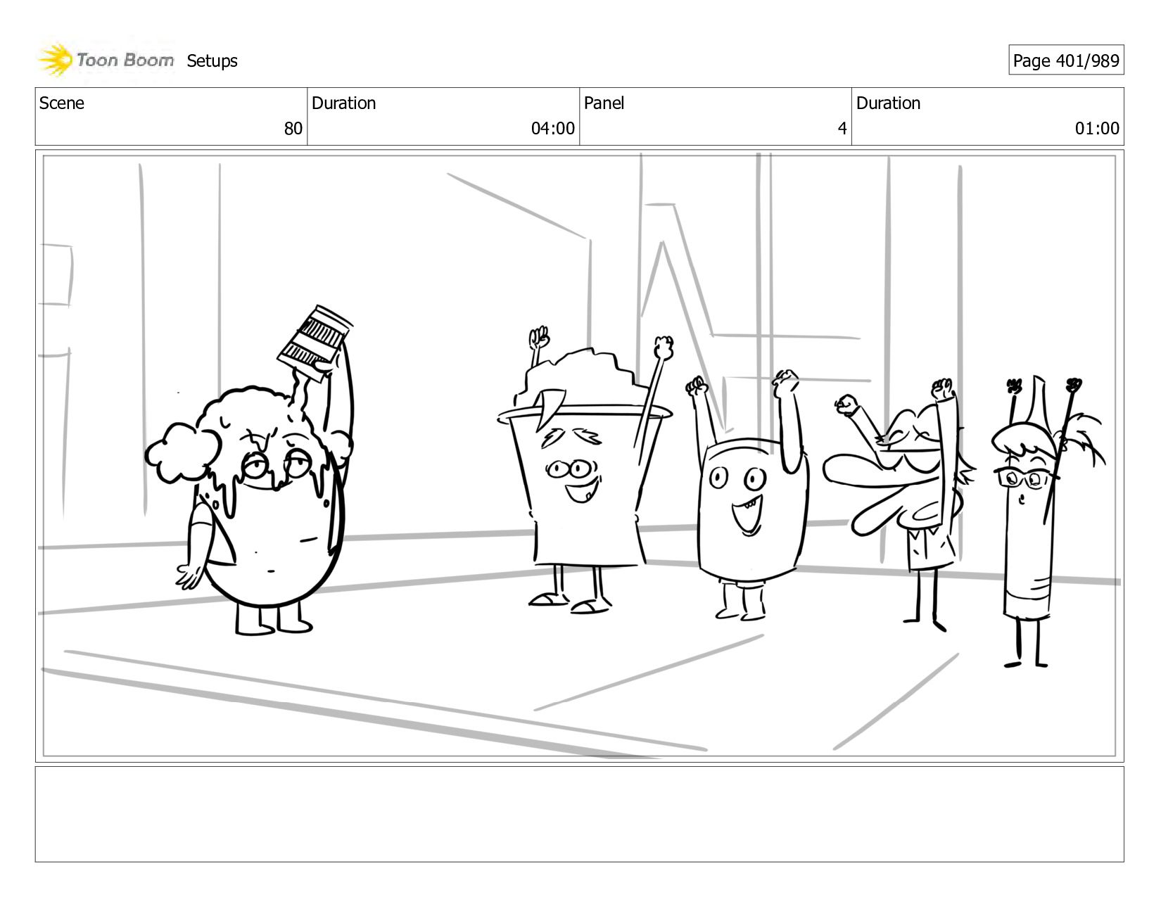 Scene 3 Duration 08:00 Panel 4 Duration 01:00 Setups Page