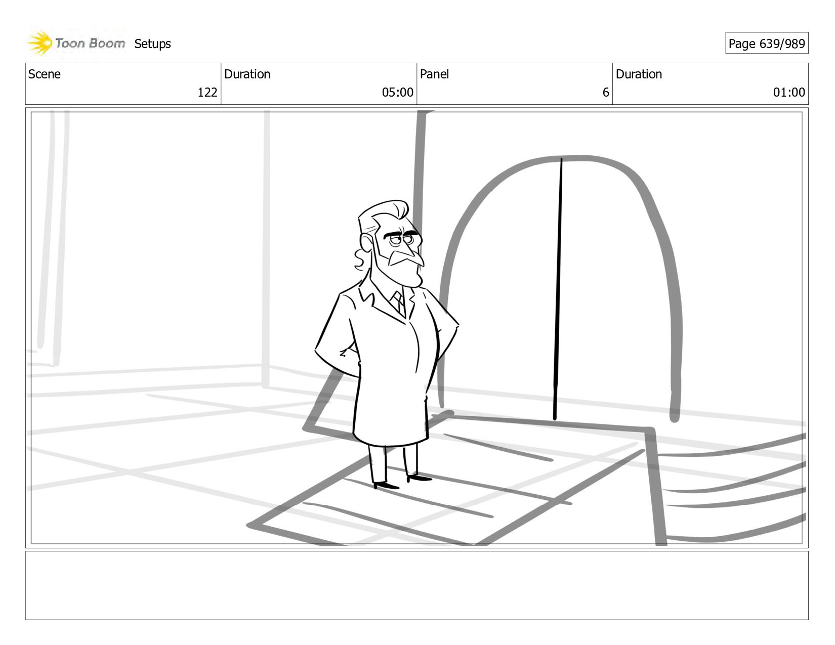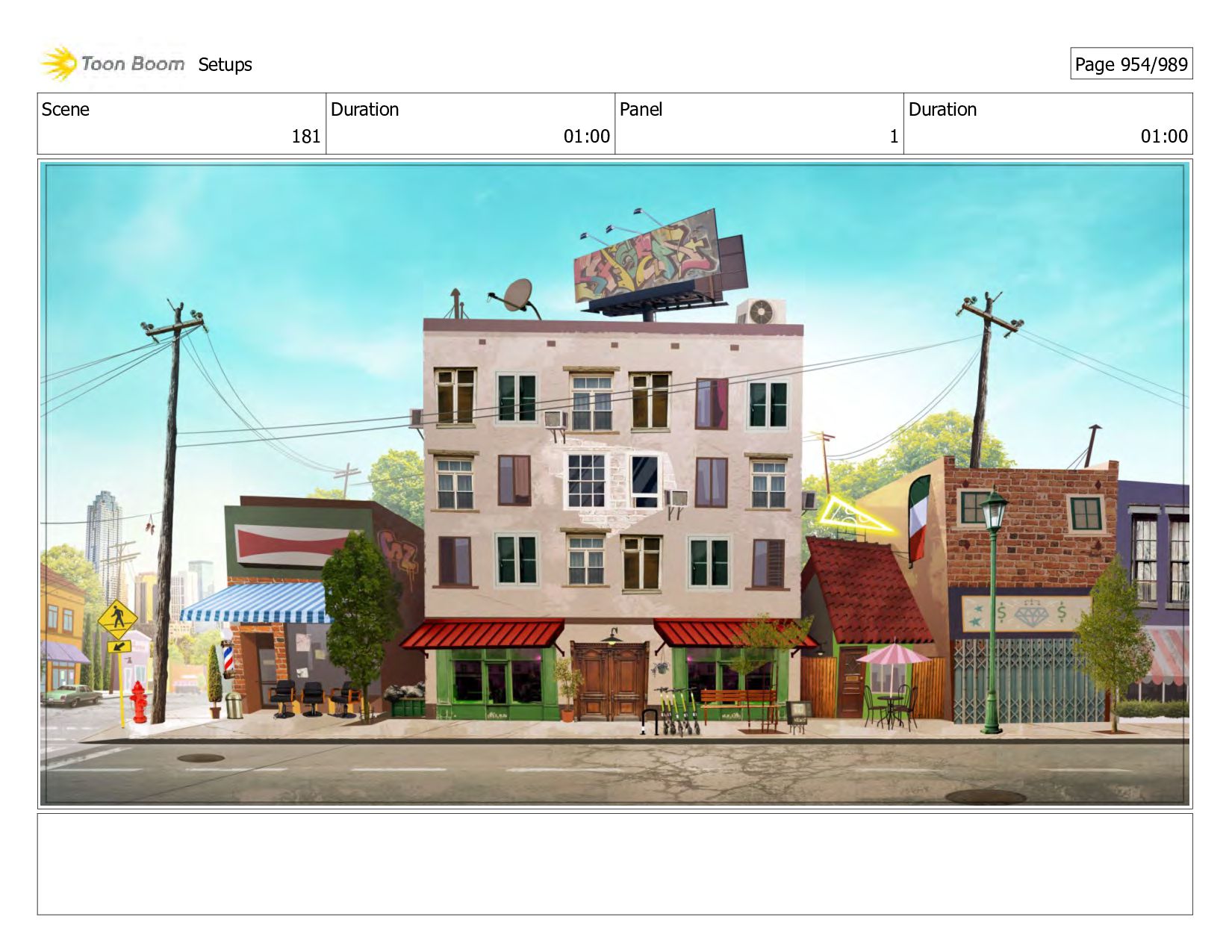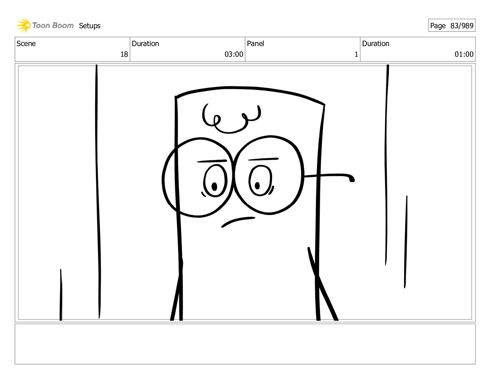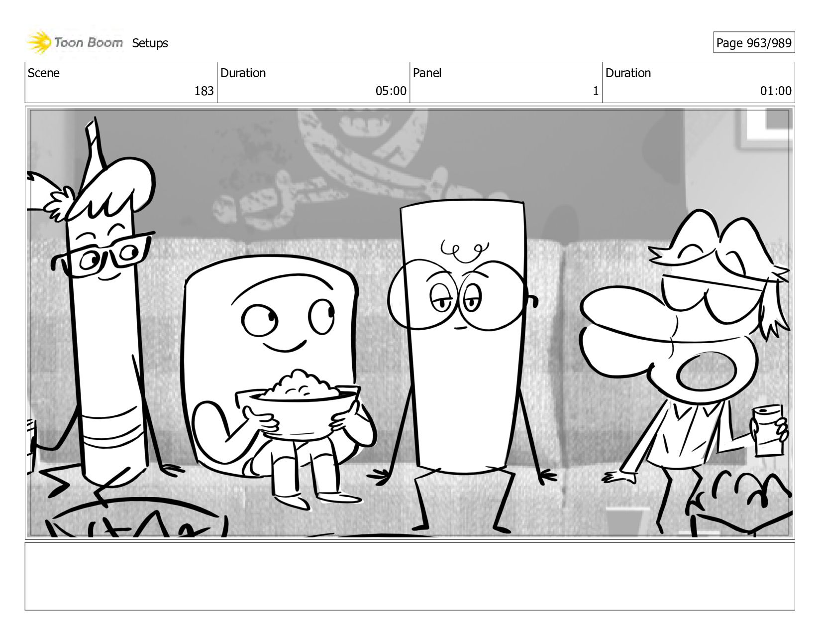 Scene 183 Duration 05:00 Panel 1 Duration 01:00 Setups Page