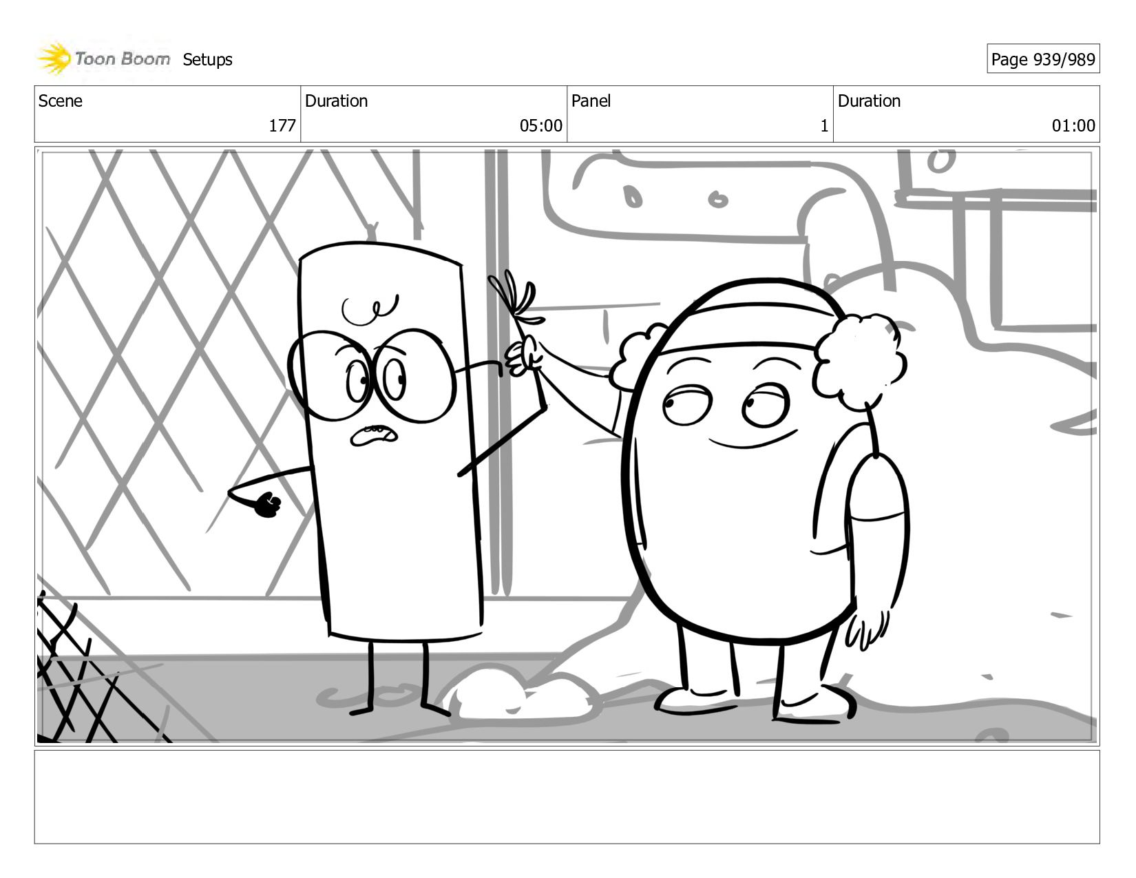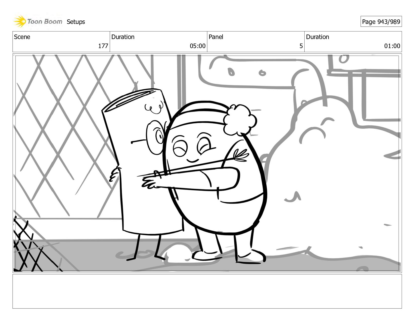 Scene 177 Duration 05:00 Panel 5 Duration 01:00 Setups Page