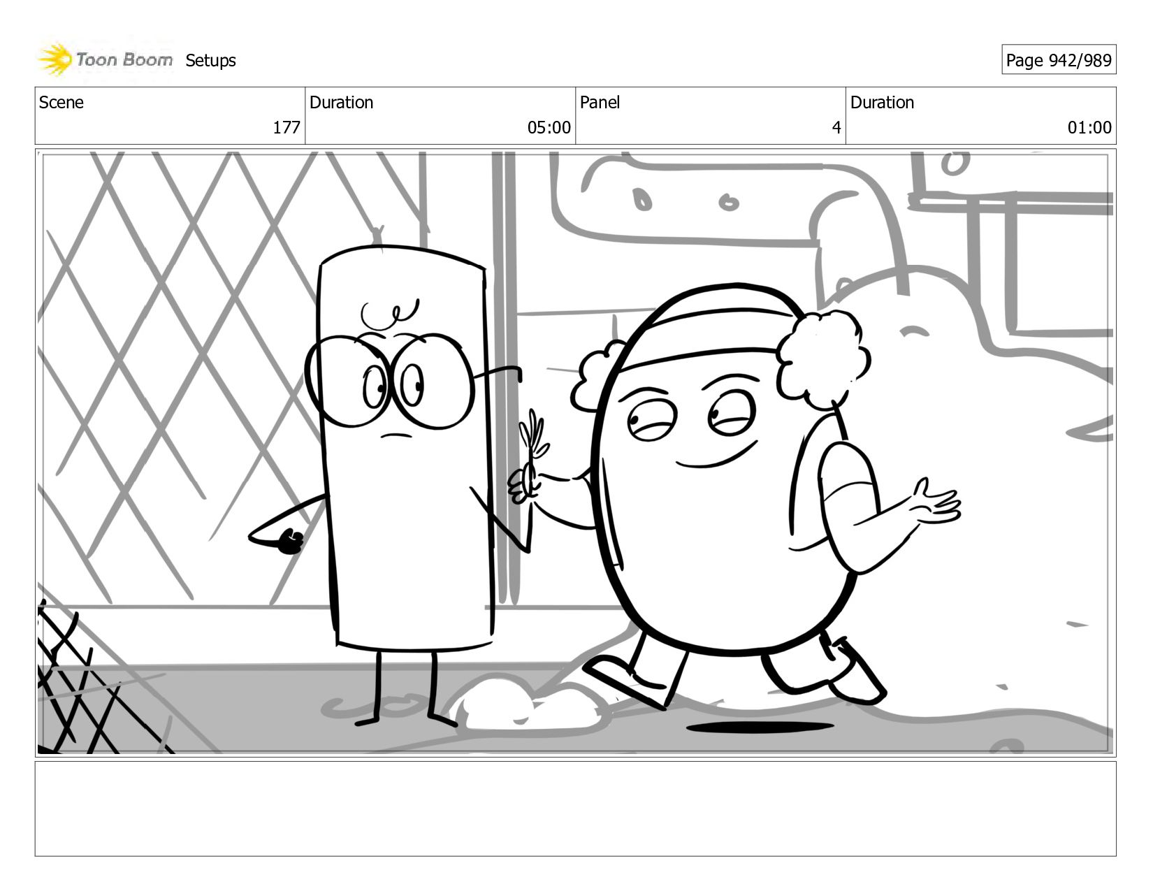 Scene 177 Duration 05:00 Panel 4 Duration 01:00 Setups Page
