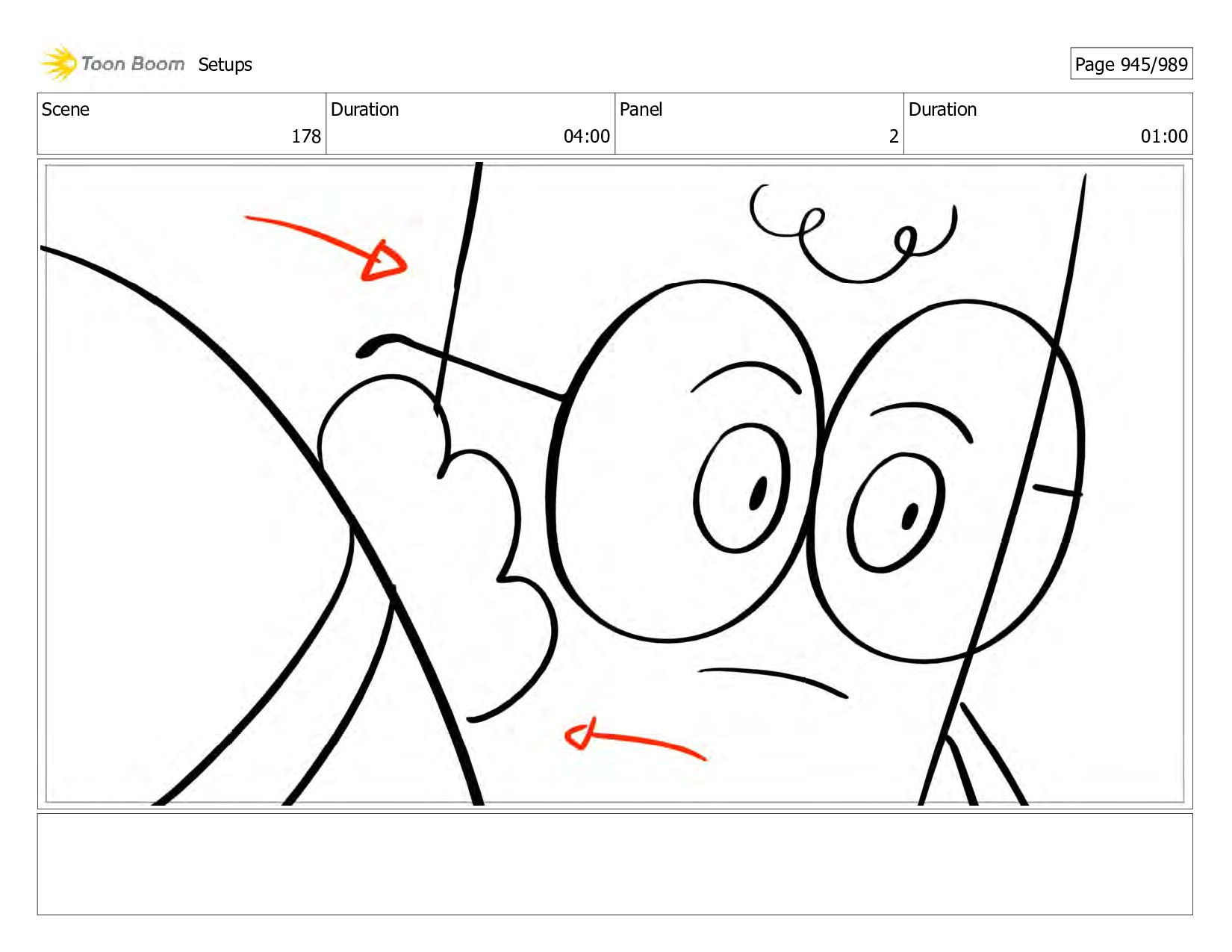 Scene 178 Duration 04:00 Panel 2 Duration 01:00 Setups Page
