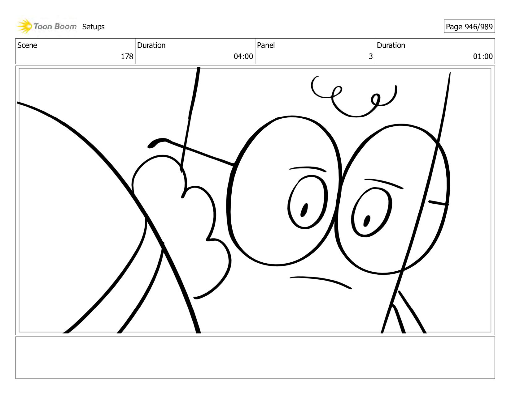 Scene 178 Duration 04:00 Panel 3 Duration 01:00 Setups Page