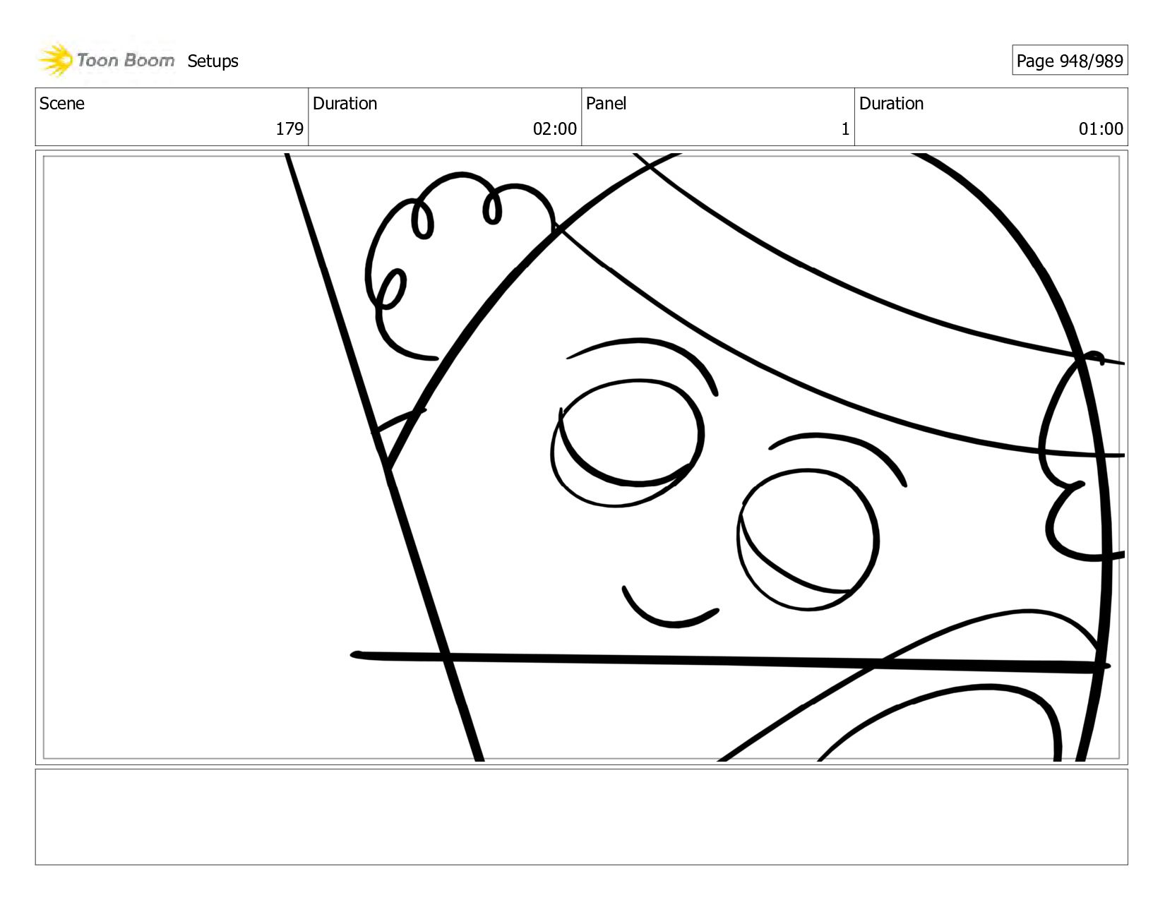 Scene 179 Duration 02:00 Panel 1 Duration 01:00 Setups Page