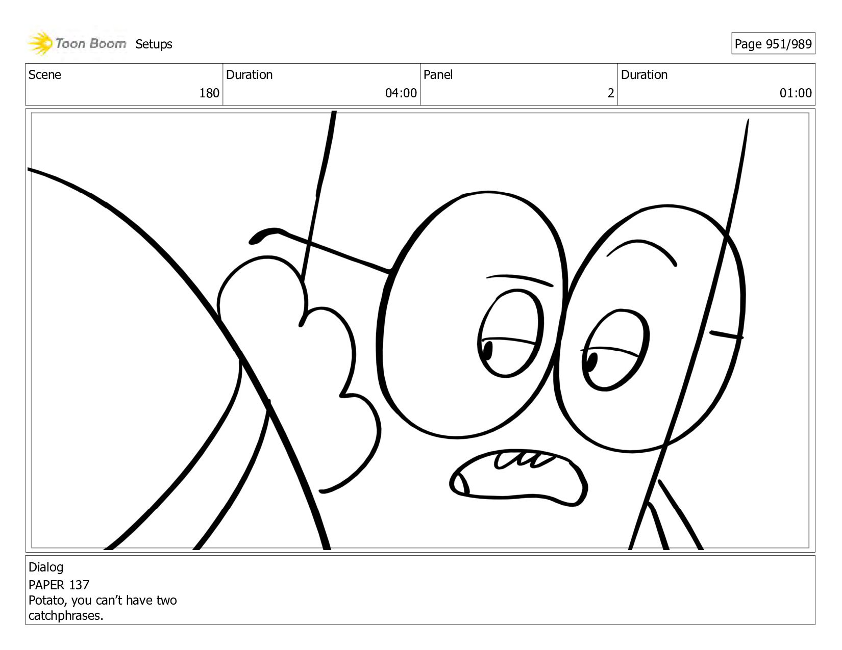 Scene 180 Duration 04:00 Panel 2 Duration 01:00 Dialog PAPER