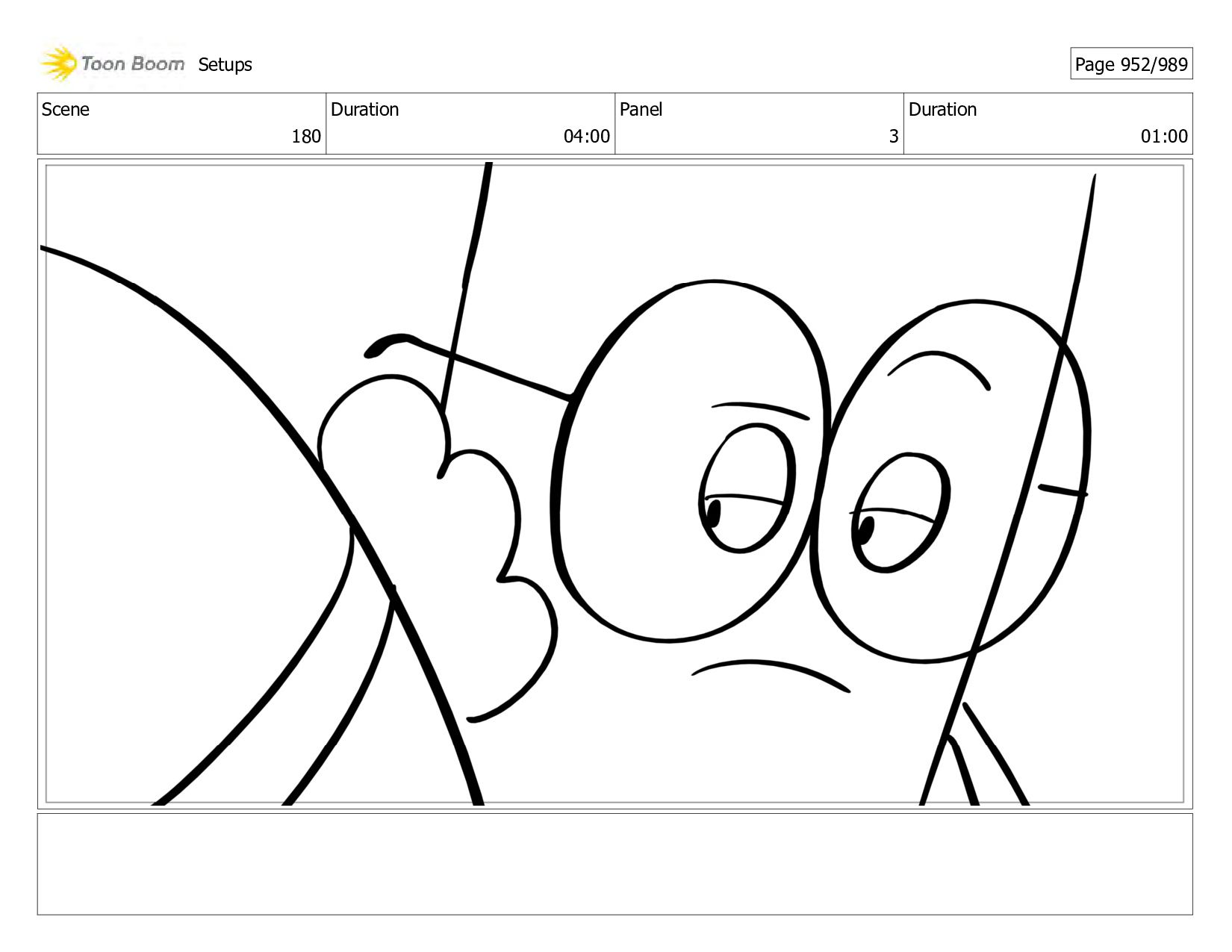 Scene 180 Duration 04:00 Panel 4 Duration 01:00 Setups Page
