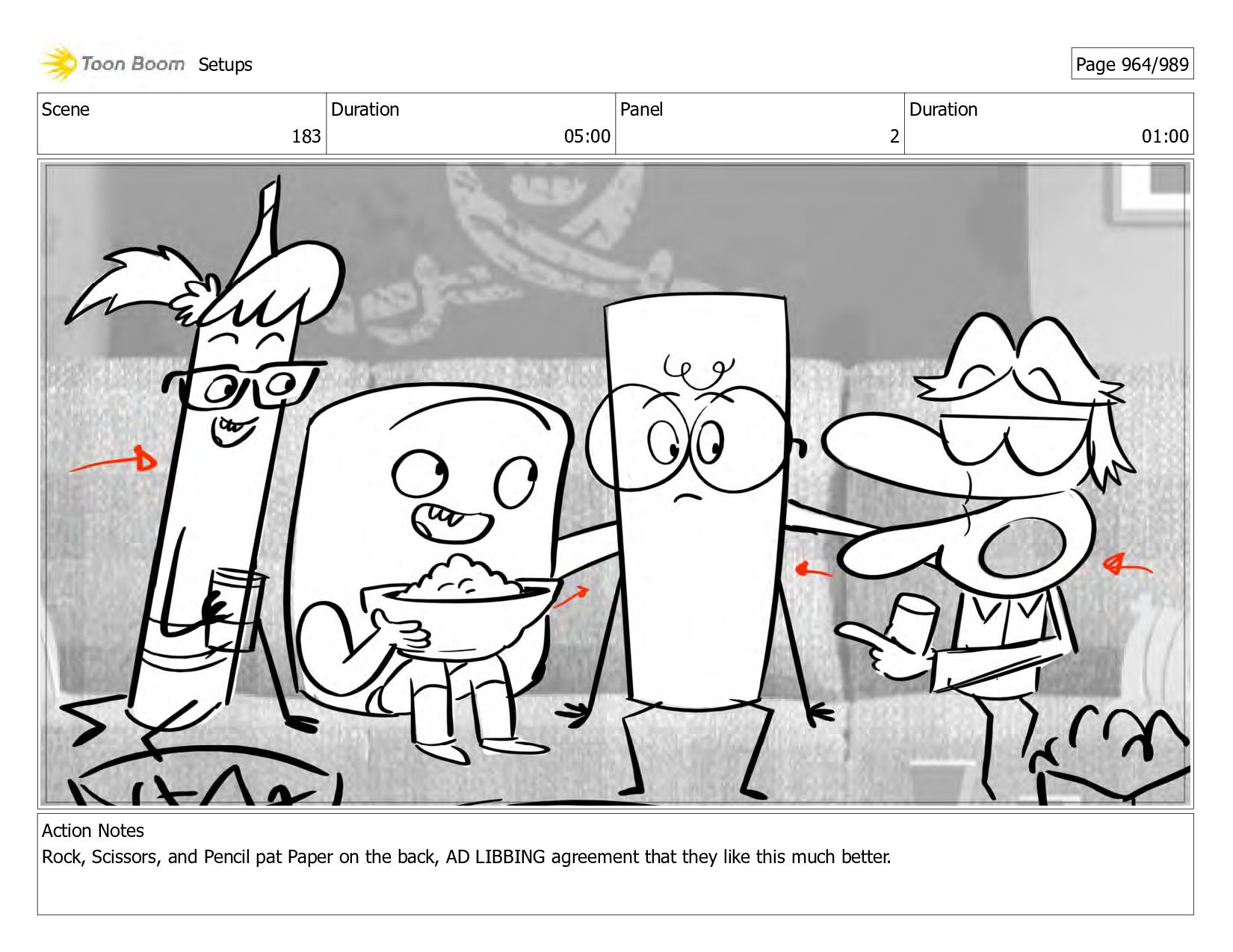 Rock, Scissors, and Pencil pat Paper on the back, AD LIBBING agreement that they like this much better. Setups Page 966/989