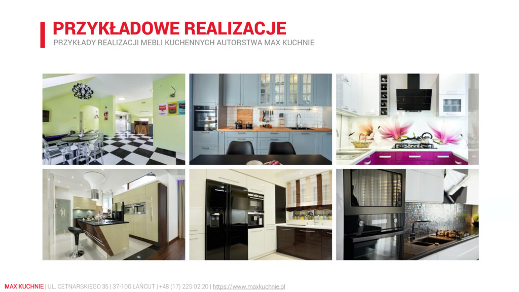 Powyższa prezentacja odnosi się do oferty Max Kuchnie. To sieć salonów mebli kuchennych i sprzętu AGD, która powstała z myślą o klientach. Max Kuchnie wraz z projektantami mebli oraz producentami sprzętu AGD opracowali nową jakość usług, wychodząc na przeciw oczekiwaniom wszystkich osób, marzących o komfortowej, przytulnej i funkcjonalnej kuchni. Więcej informacji znajduje się pod adresem https://www.maxkuchnie.pl