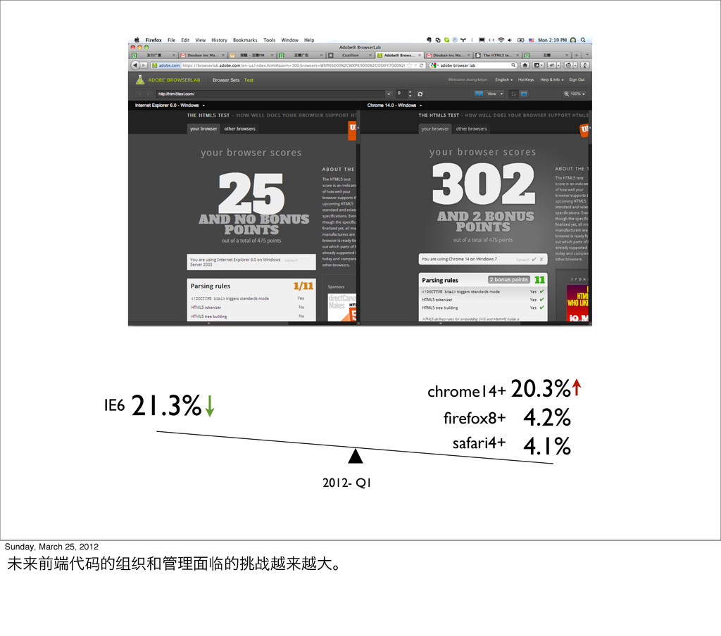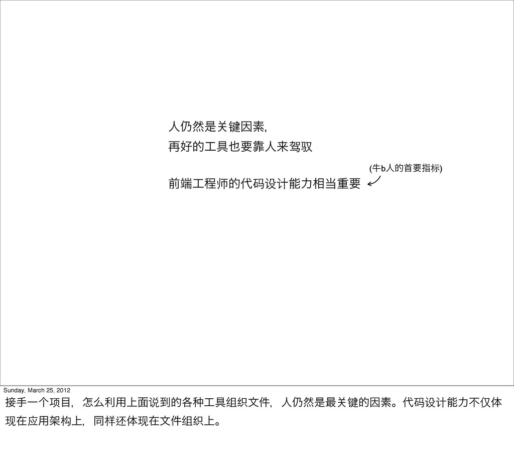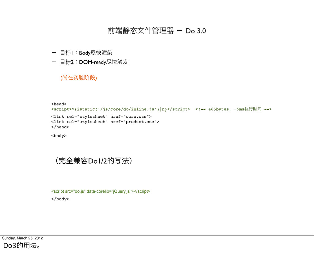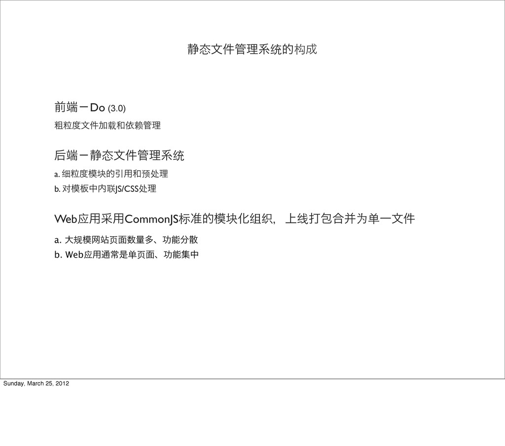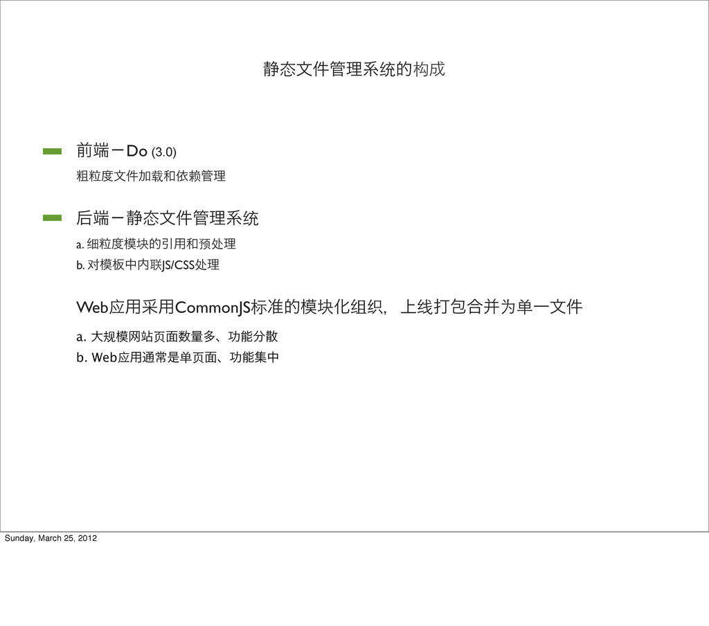 • Keyword arguments • Mixins: @mixin, @include • Functions: @function, @return • Inheritance: @extend • Conditions: @if, @else if, @else • Loops: @for, @each • Variables: $, @variables, @vars • Sprites: sprite-map(), sprite(), sprite-position(), sprite-url(), ... • Images: image-url(), image-width(), image-height(), ... • Embedded (inline) images: inline-image() • Colors handling: adjust-color(), scale-color(), opacify()/transparentize(), lighten()/darken(), mix(), ... • Math functions: sin(), cos(), tan(), round(), ceil(), floor(), pi(), ... • CSS Compression: @option compress:yes; Sunday, March 25, 2012