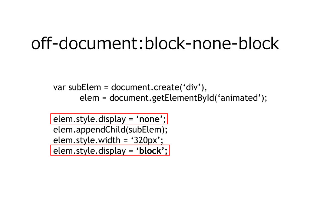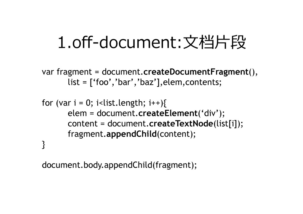 [‘foo’,’bar’,’baz’],elem,contents; clone.setAttribute(‘width’,’50%’); for(var i = 0; i<list.length; i++){ elem = document.createElement(‘div’); content = document.createTextNode(list[i]); clone.appendChild(elem); } original.parentNode.replaceChild(clone,original);
