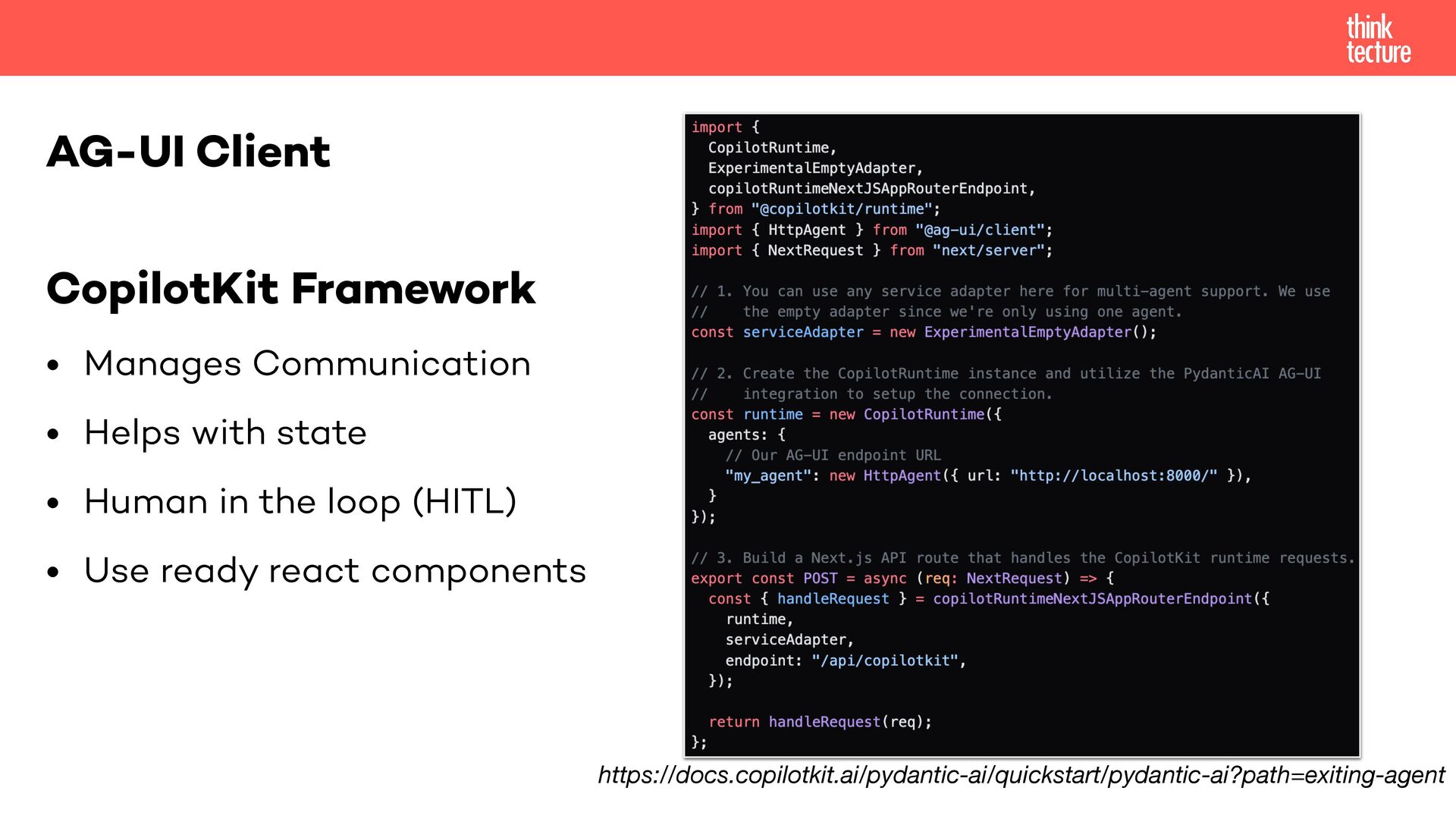 MCP's enable dynamic context hydration and semantic grounding, allowing agents to operate on structured and unstructured inputs tailored to specific tasks. AG-UI specifies how agents exchange intents, updates, and feedback with the user interface in real time. Together, they provide a consistent way to connect agents with UI components across frameworks like Angular, React, Vue, or vanilla JavaScript.