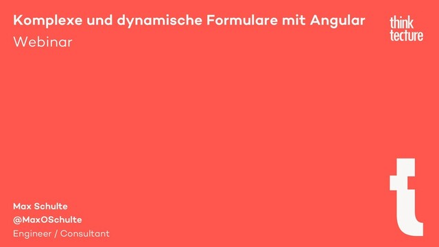 In diesem Webinar zeigt Max Schulte wie Angular es ermöglicht, komplexe und dynamische Formulare zu erstellen. Sehen Sie welche Abstraktionsebenen Angular’s Form Controls System bietet und wie der Router sowie die Dependency Injection (DI) genutzt werden können, um hoch komplexe Forms zu zerlegen und zu vereinfachen.