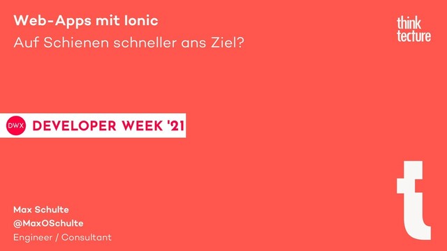 Webanwendungen können mitunter komplex werden. Täglich gibt es neue Anforderungen und am besten soll die App auch noch Cross-Platform verfügbar sein. Und natürlich darf die Entwicklung nicht zu lange dauern. Ionic Framework versucht als opinionated Framework dieses Problem zu adressieren. In seinem Vortrag zeigt Max Schulte, was mit dem Ionic Framework und Angular möglich ist und wie es dank seiner Tools, Production-Ready-Komponenten und APIs das Entwicklerleben für gewisse Anwendungsszenarien erleichtern kann.