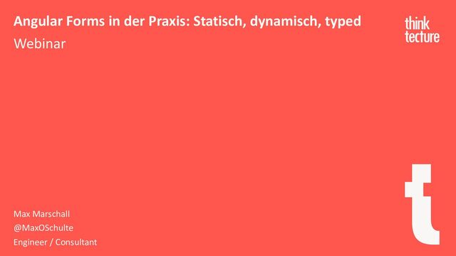 In diesem Webinar zeigt Max Schulte, wie Angular es ermöglicht, komplexe und dynamische Formulare zu erstellen. Es werden die Vor- und Nachteile der neuen Typed-API diskutiert und bewertet. Sehen Sie, welche Abstraktionsebenen Angular’s Form Controls System bietet und wie der Router sowie die Dependency Injection (DI) genutzt werden können, um hochkomplexe Forms zu zerlegen und zu vereinfachen