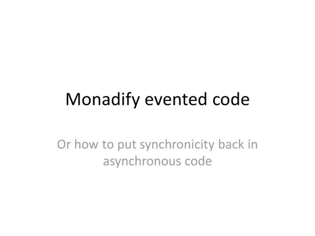 Monadify evented code OR: how to put synchronicity back in asynchronous code.