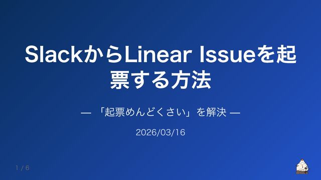SlackからLinear Issueを起 票する方法 — 「起票めんどくさい」を解決 — 2026/03/16 1 / 6